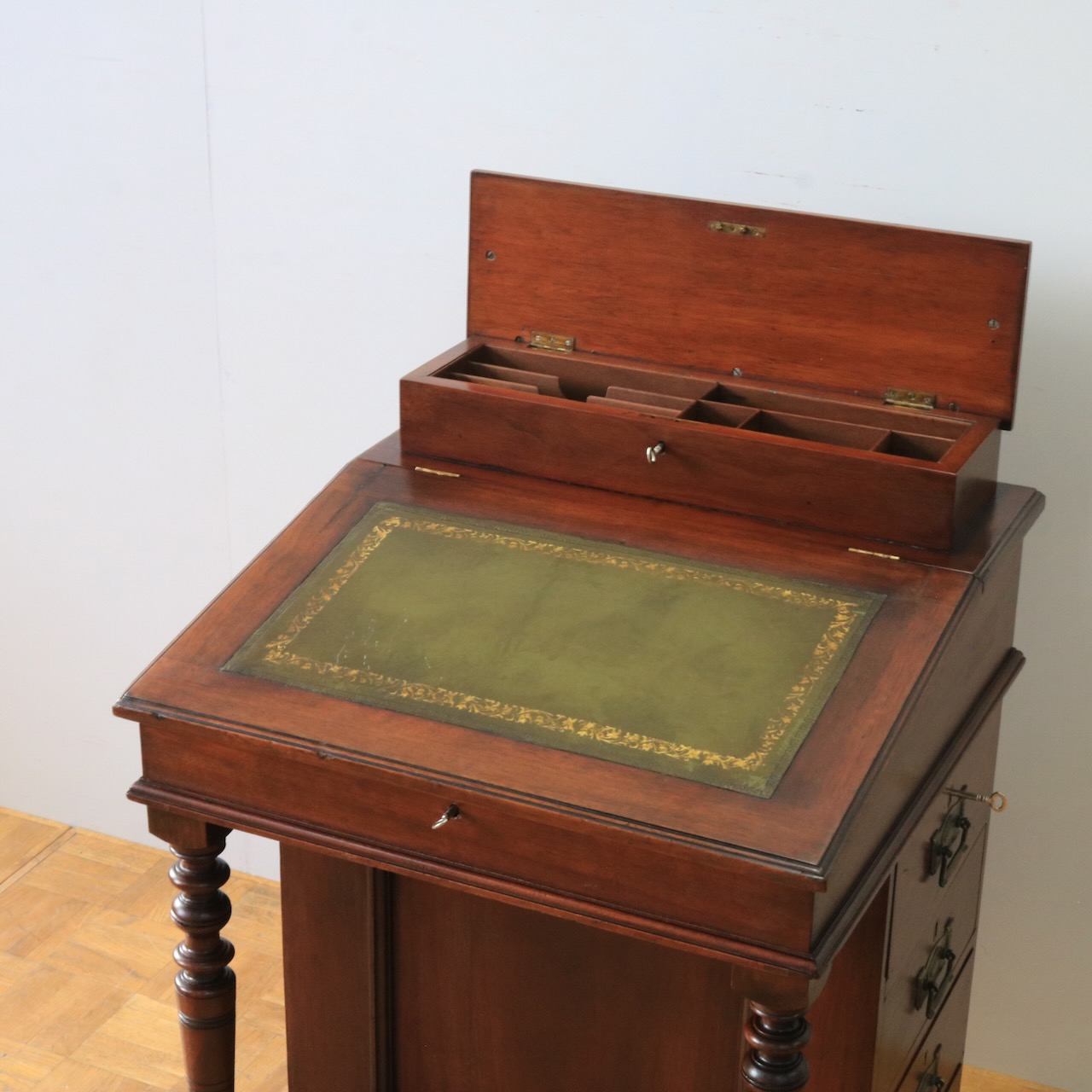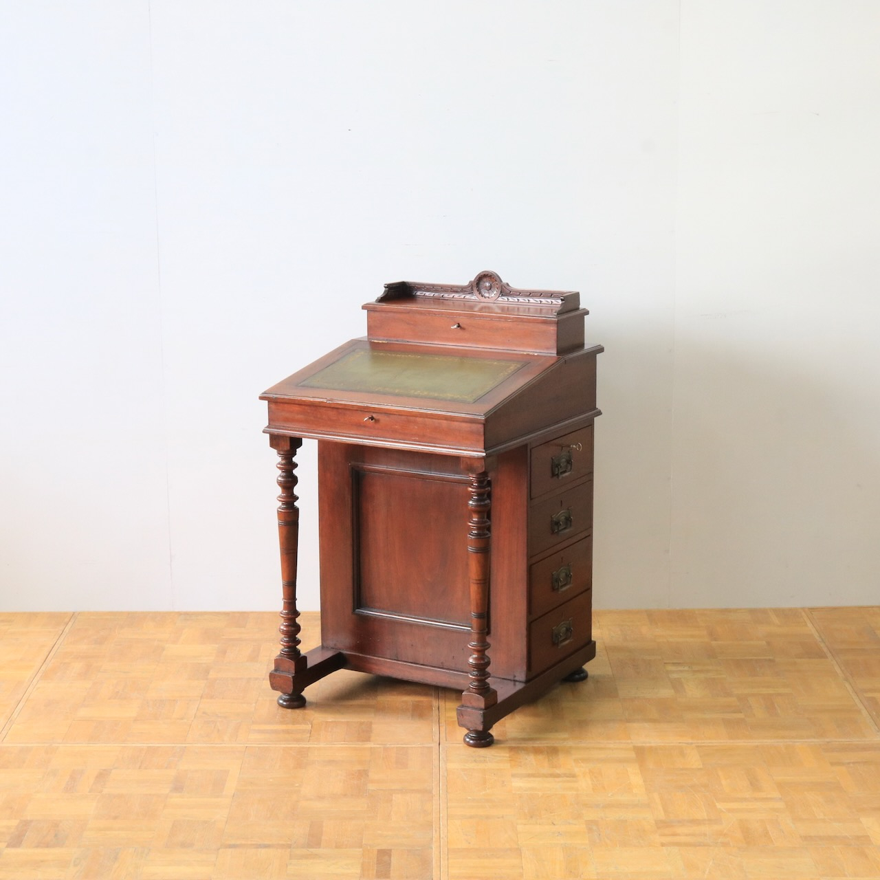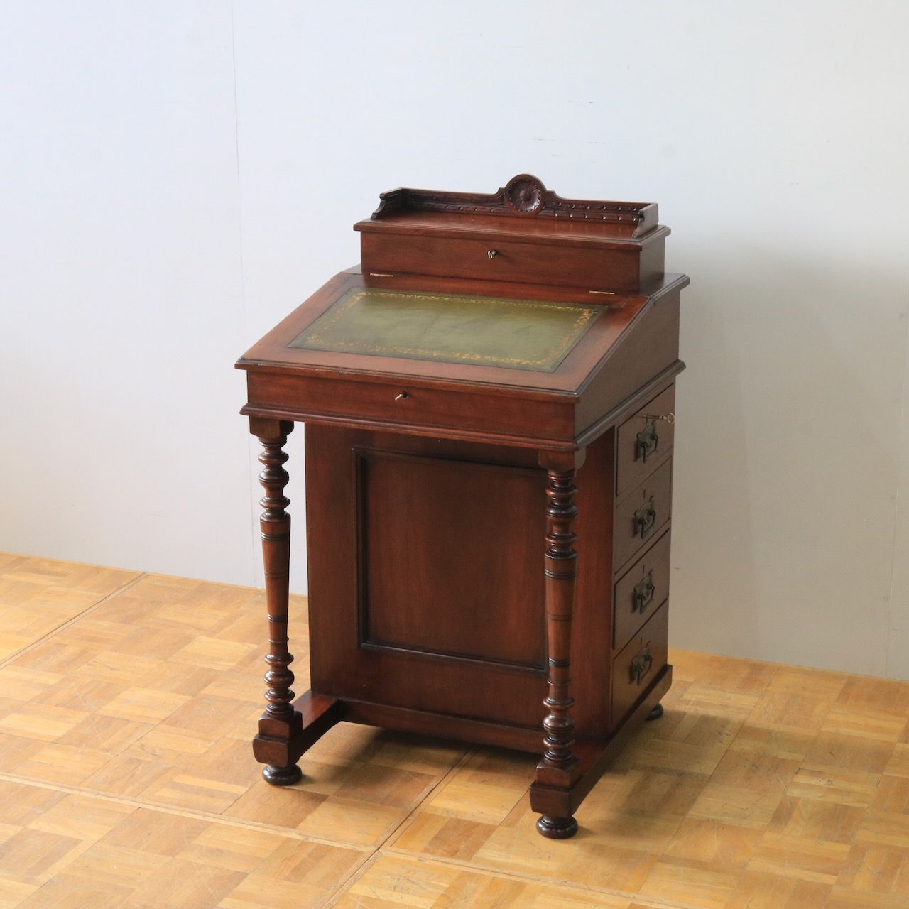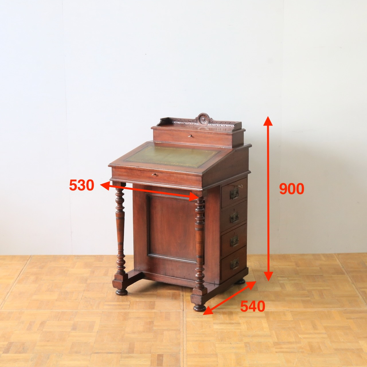 配送料の目安 ▶︎1890年代ヴィクトリアン、マホガニーのダベンポートデスク。その昔、ダベンポート大尉が造らせたと言われる、船に持ち込むのに適した作りをしているコンパクトなデスク。ライティング部分は斜めに、サイドには引き出し収納が付いています。