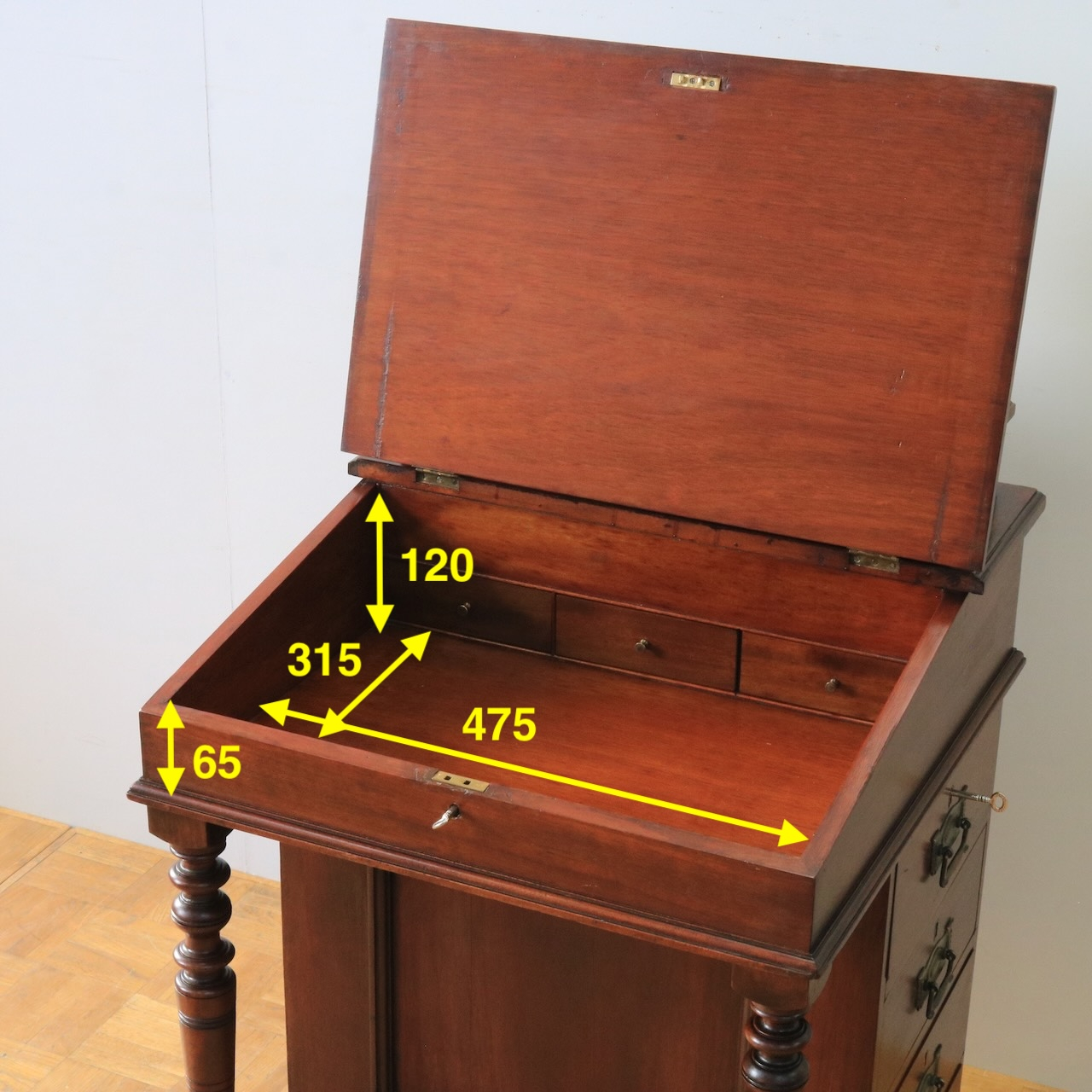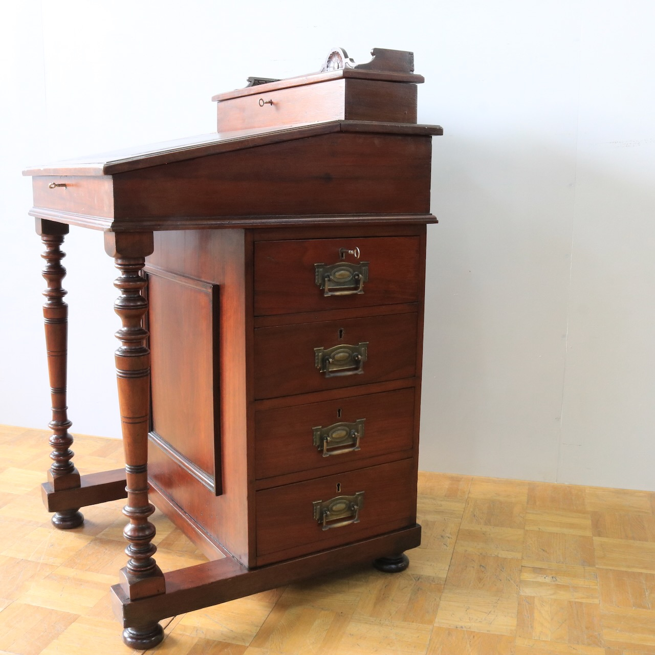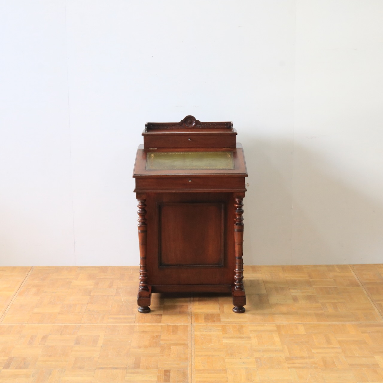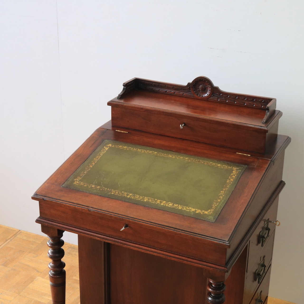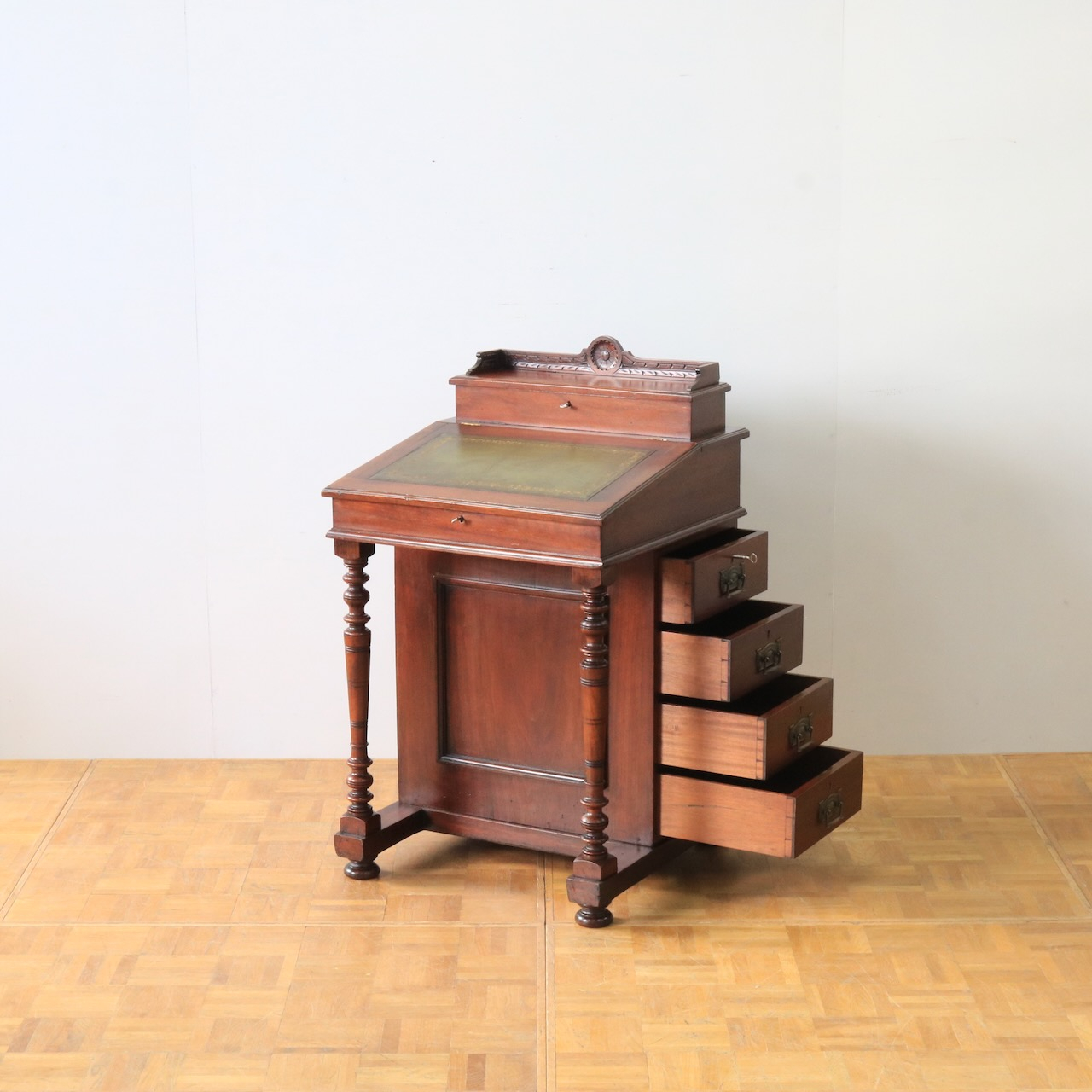 配送料の目安 ▶︎1890年代ヴィクトリアン、マホガニーのダベンポートデスク。その昔、ダベンポート大尉が造らせたと言われる、船に持ち込むのに適した作りをしているコンパクトなデスク。ライティング部分は斜めに、サイドには引き出し収納が付いています。