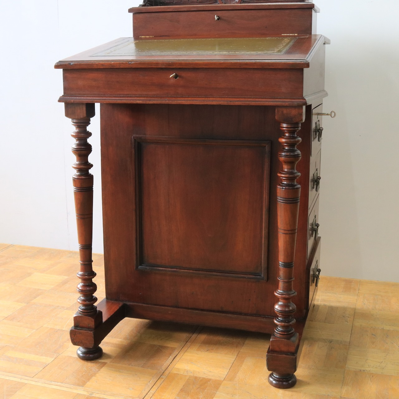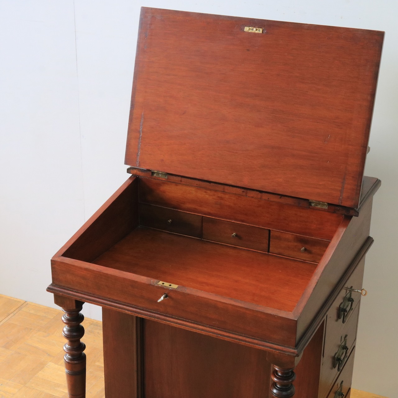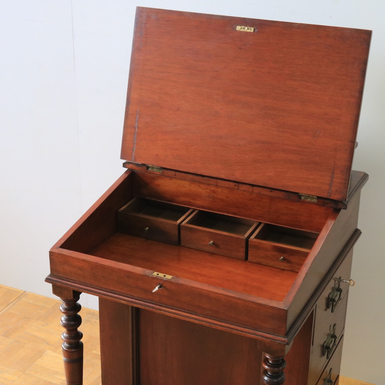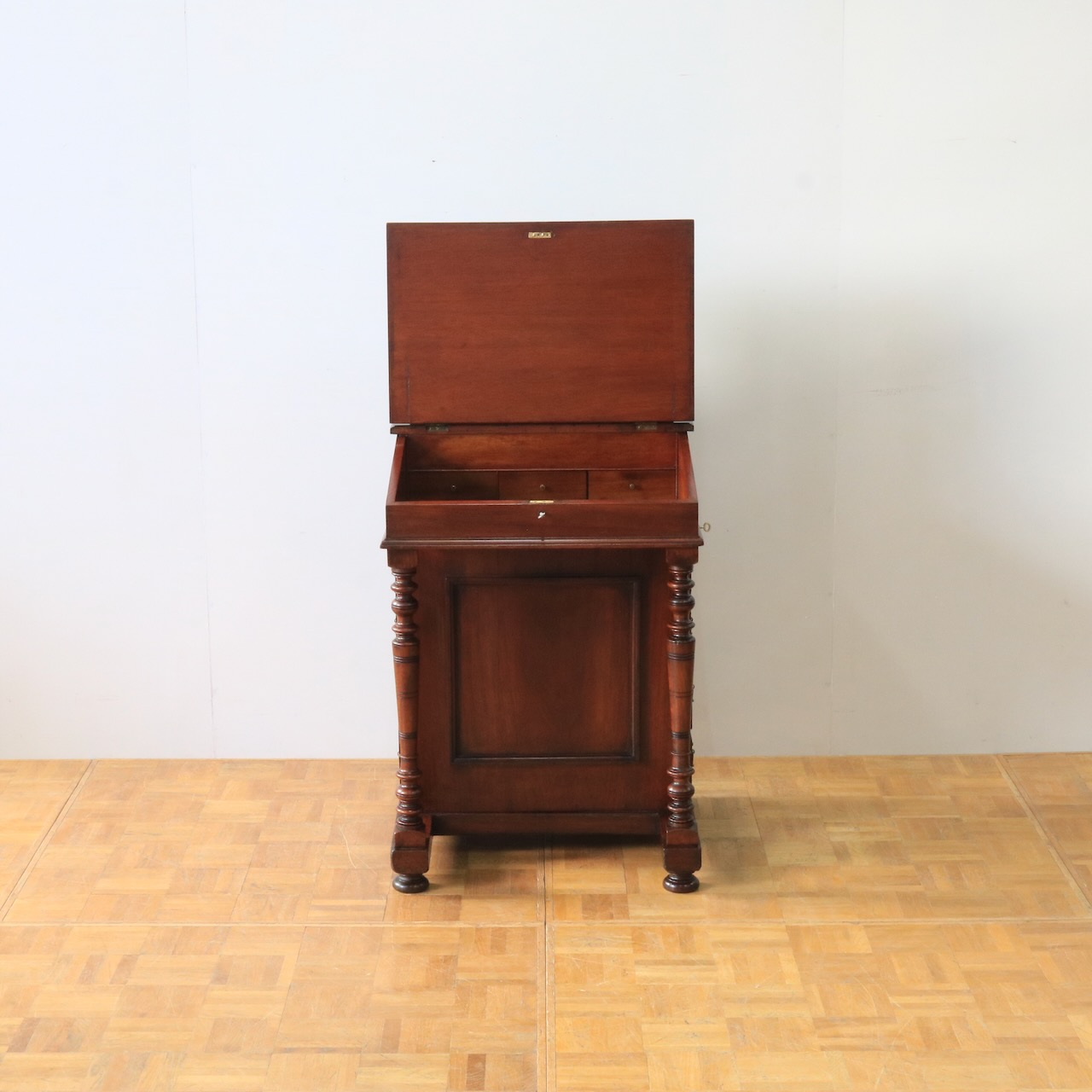 配送料の目安 ▶︎1890年代ヴィクトリアン、マホガニーのダベンポートデスク。その昔、ダベンポート大尉が造らせたと言われる、船に持ち込むのに適した作りをしているコンパクトなデスク。ライティング部分は斜めに、サイドには引き出し収納が付いています。