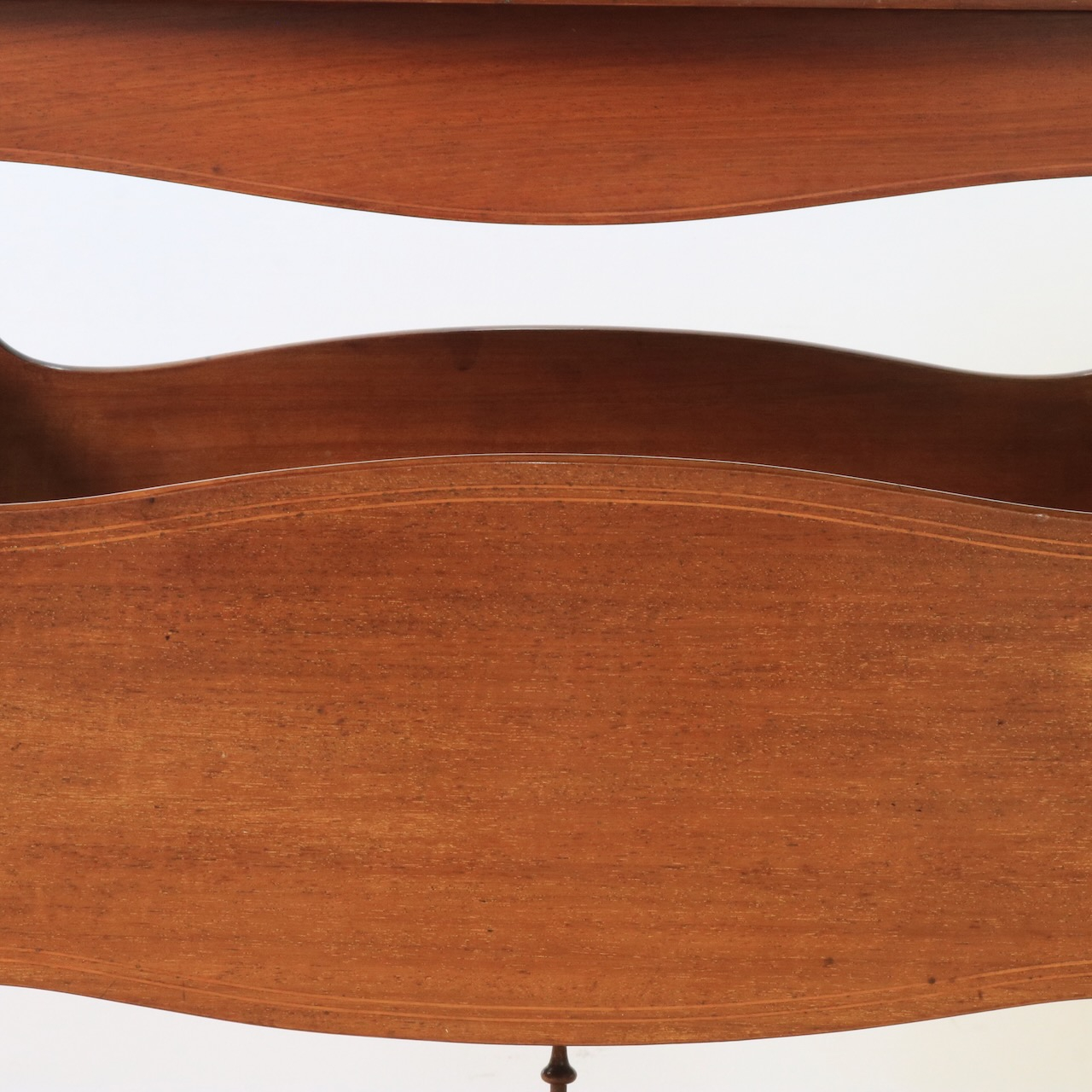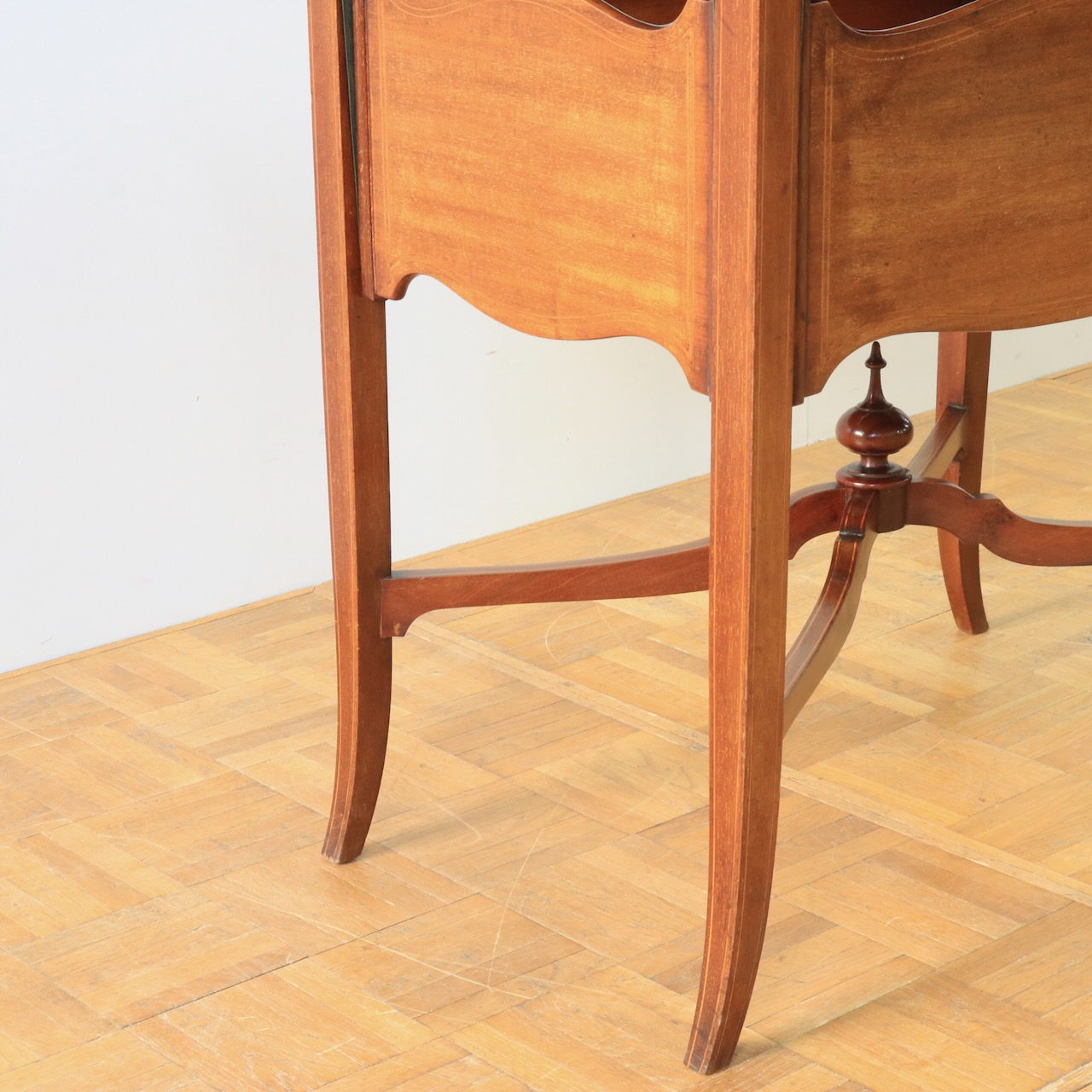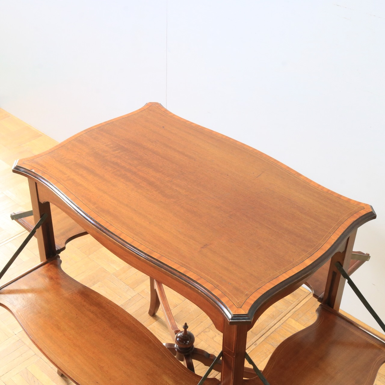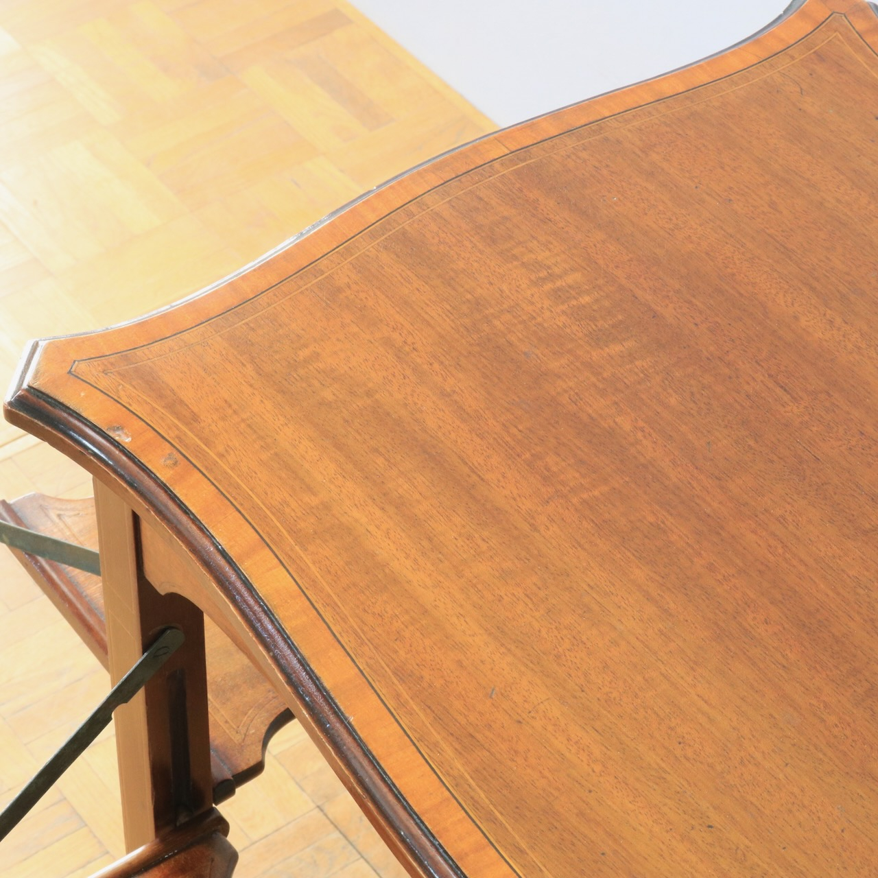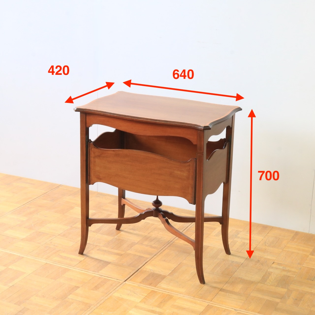 天板はマホガニーらしい赤みがかった上品な風合い。緩やかな曲線を描く縁もアンティークらしい優美な佇まいです。