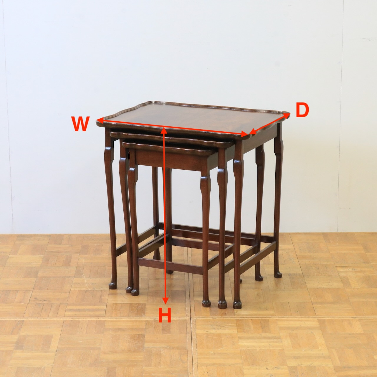 配送料の目安 ▶︎1930年代、マホガニー材のネストテーブル。サイズ違いの3つのテーブルがワンセットになった、使い勝手の良いスモールテーブルセットです。来客時にも活躍する人気のアイテム。