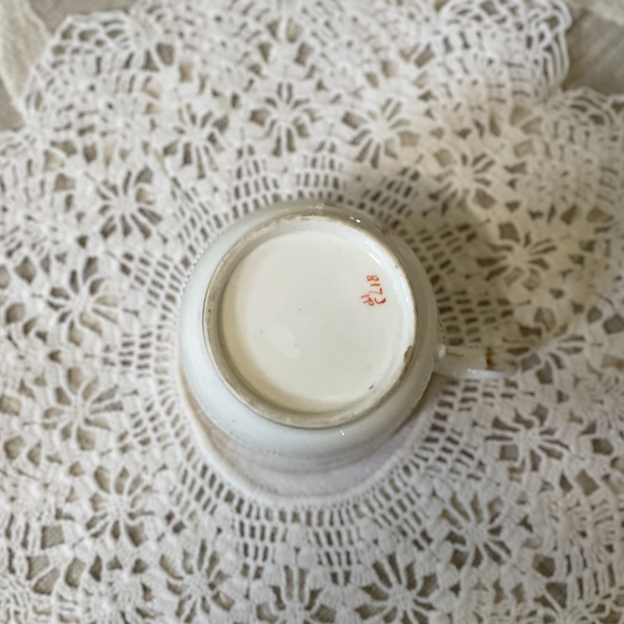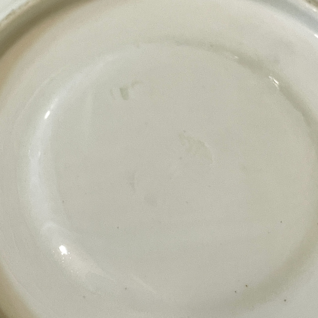 ソーサーの裏面。よくみるとロイヤルウースターのマークがエンボスで押されています。
