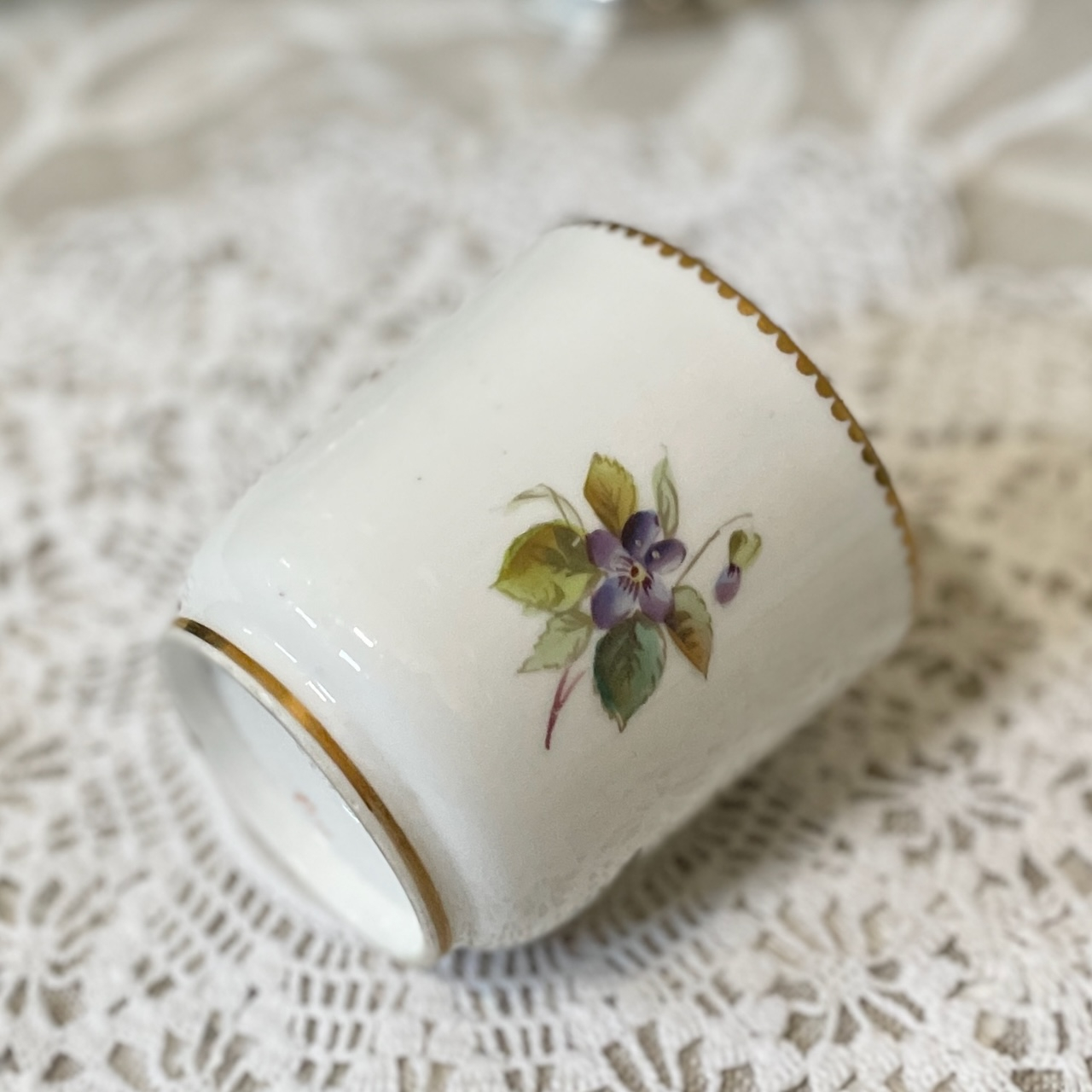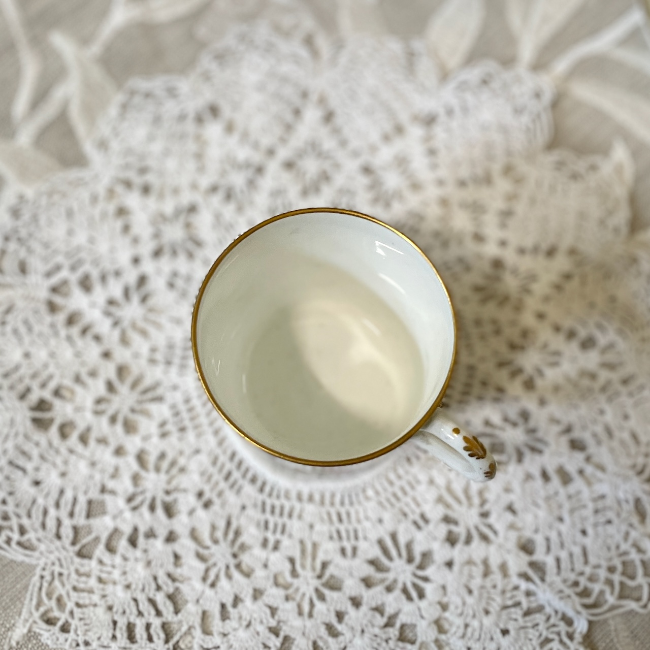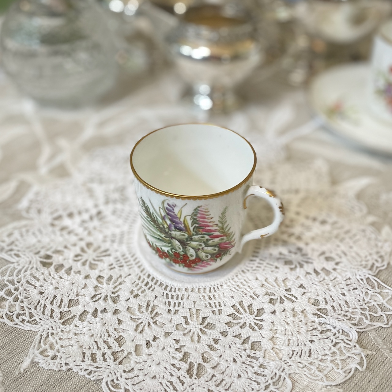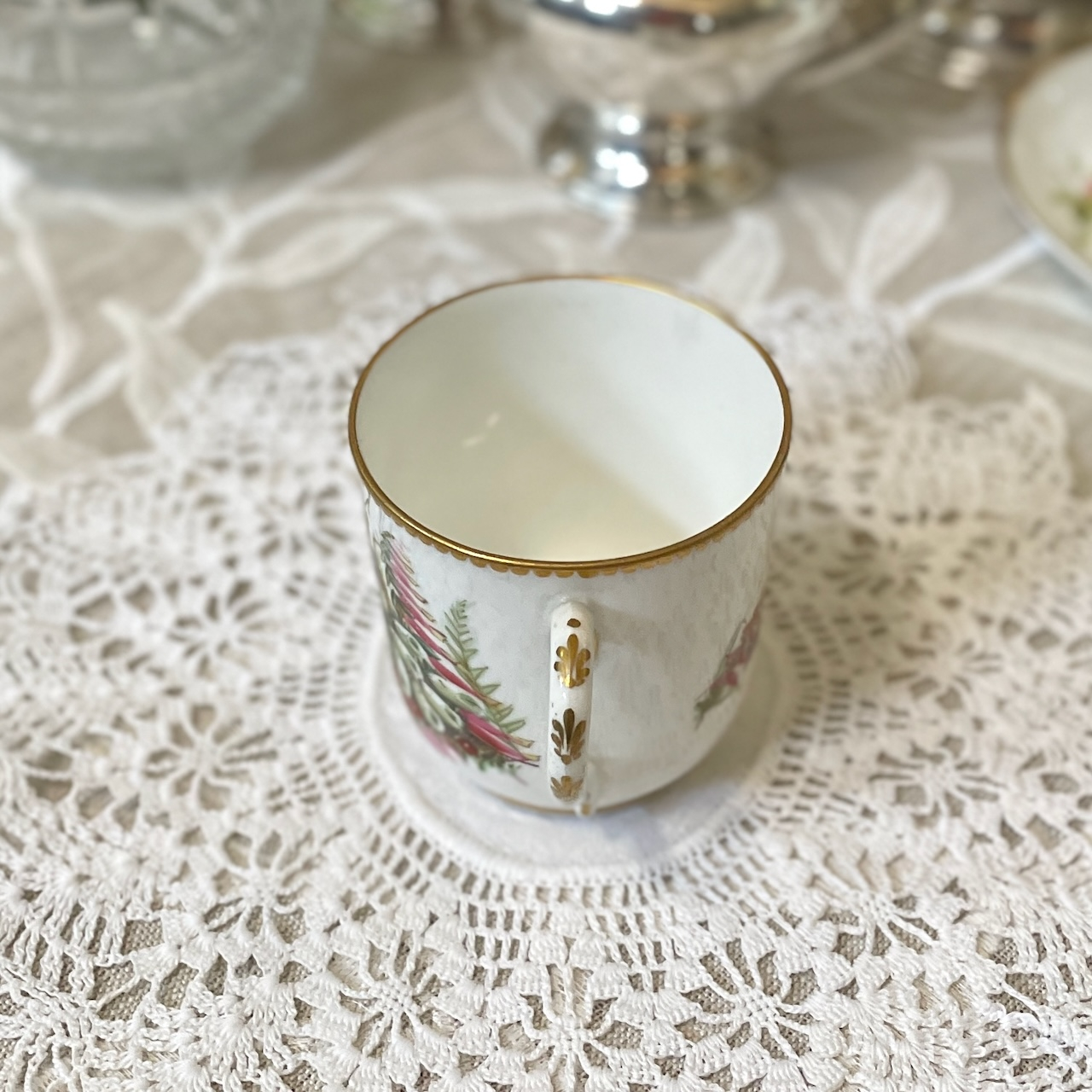 配送料の目安 ▶︎英国の名窯Royal Worcester、1875年頃のコーヒーカップ。野に咲く花々を束ねたような瑞々しさを感じさせるお花柄がデザインされています。縁の金彩飾りも可愛らしく上品な印象です。(402-R-0014カップアンドソーサーと絵柄違いです。)