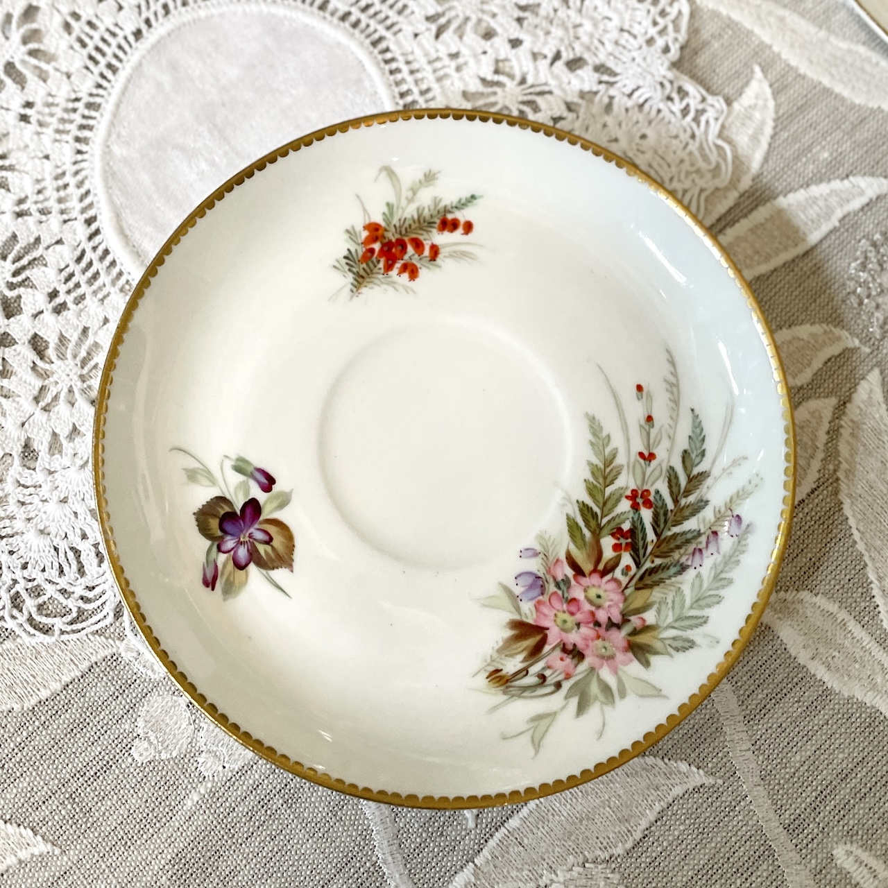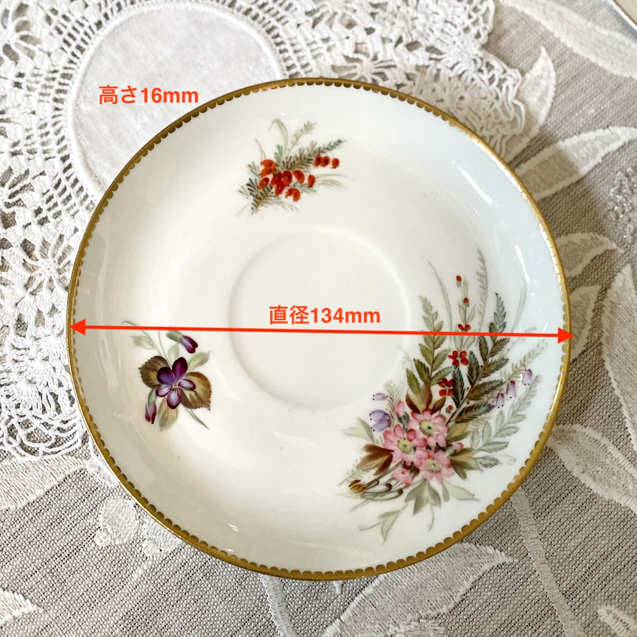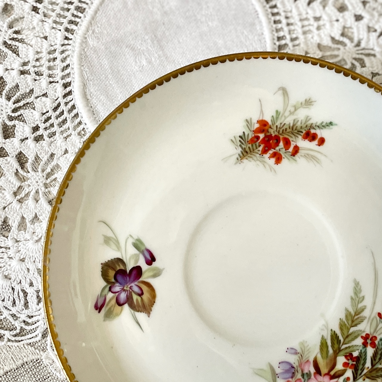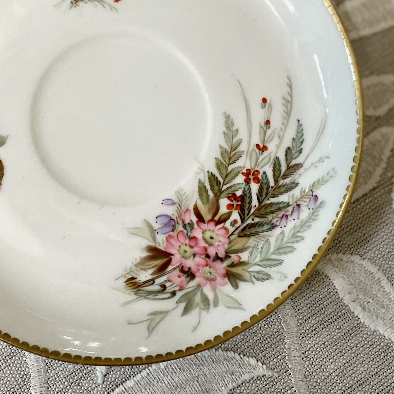 カップの縁にも底にも、ソーサー縁にも金彩が入っています。お花の絵柄はすべてハンドペイントです。