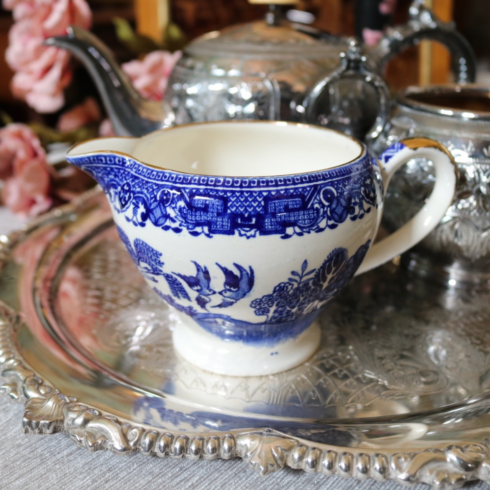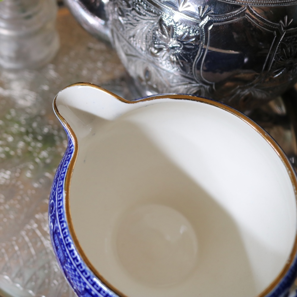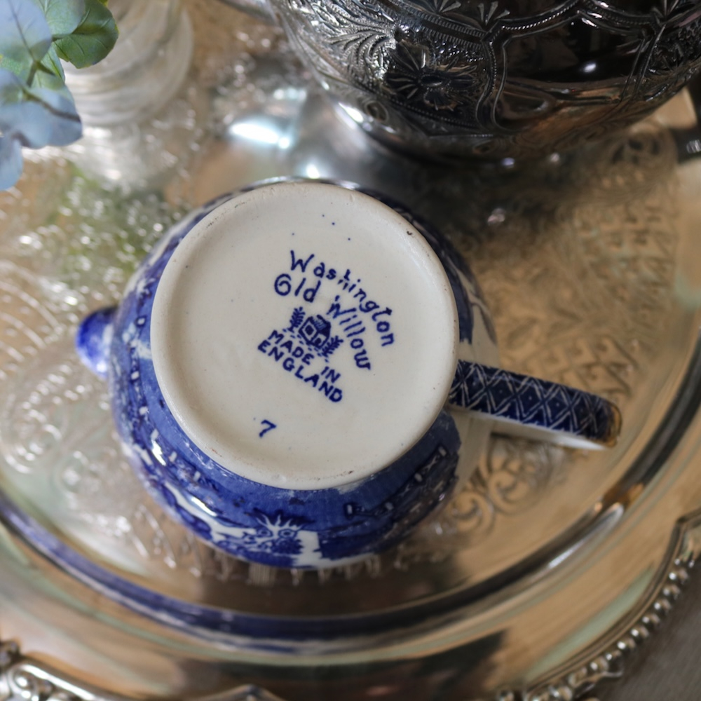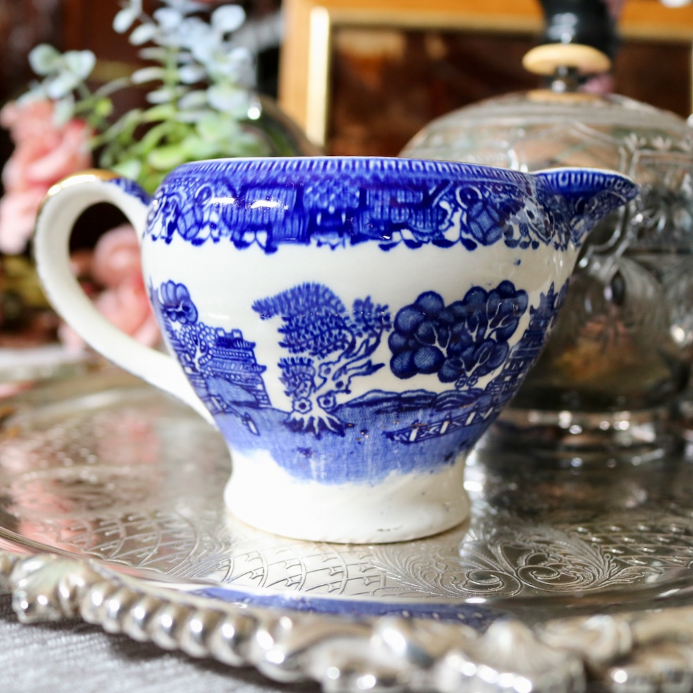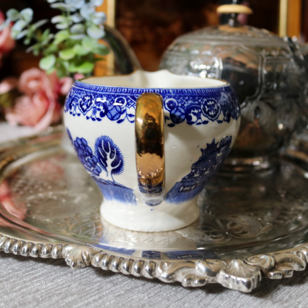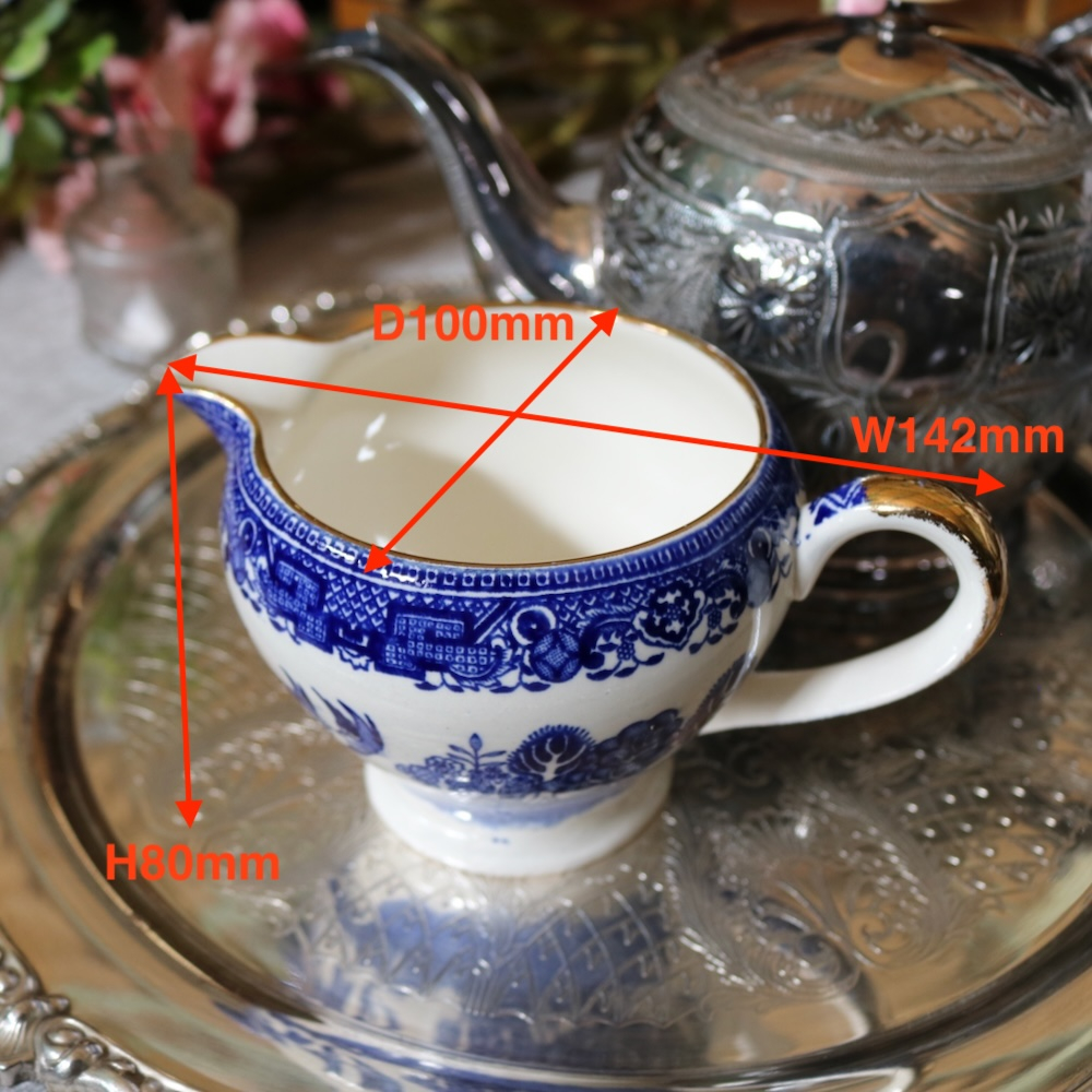 配送料の目安 ▶︎1950~60年代、陶磁器の街ストーク・オン・トレントにあったWashington Potteryのジャグ。定番のウィローパターンがぐるりと描かれ、縁と持ち手には金彩のアクセントも入っています。