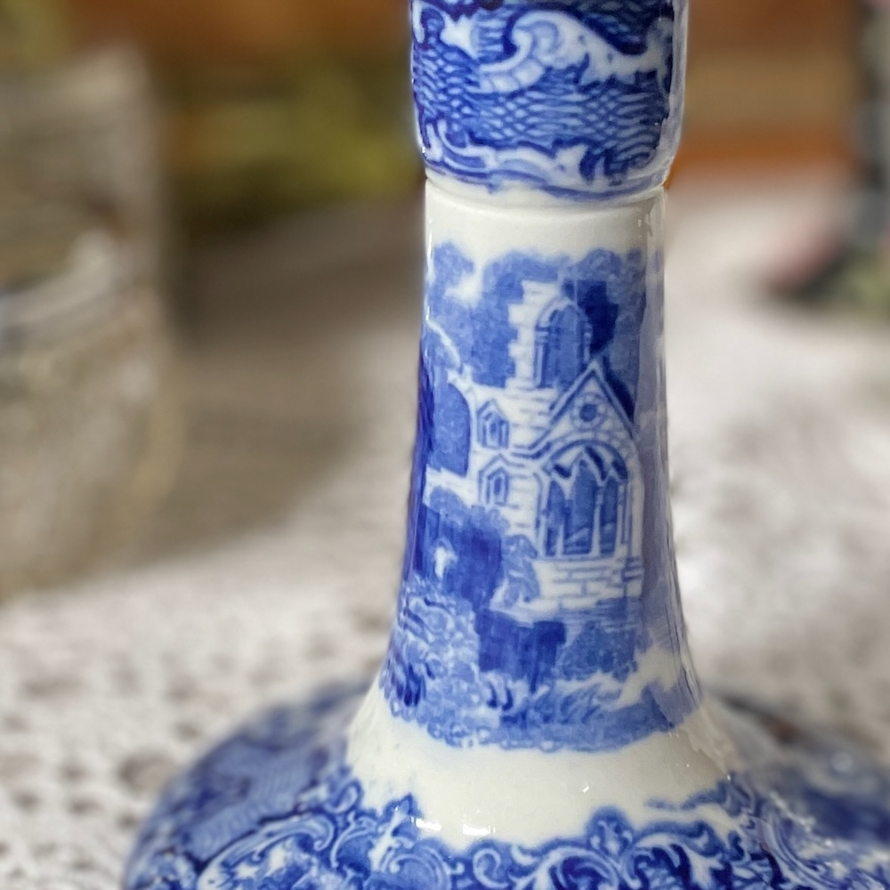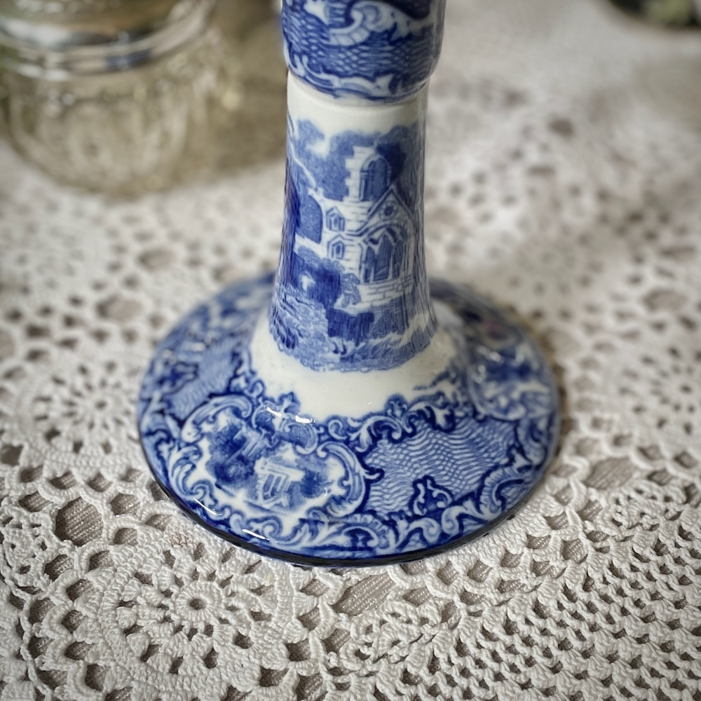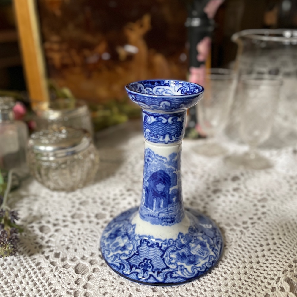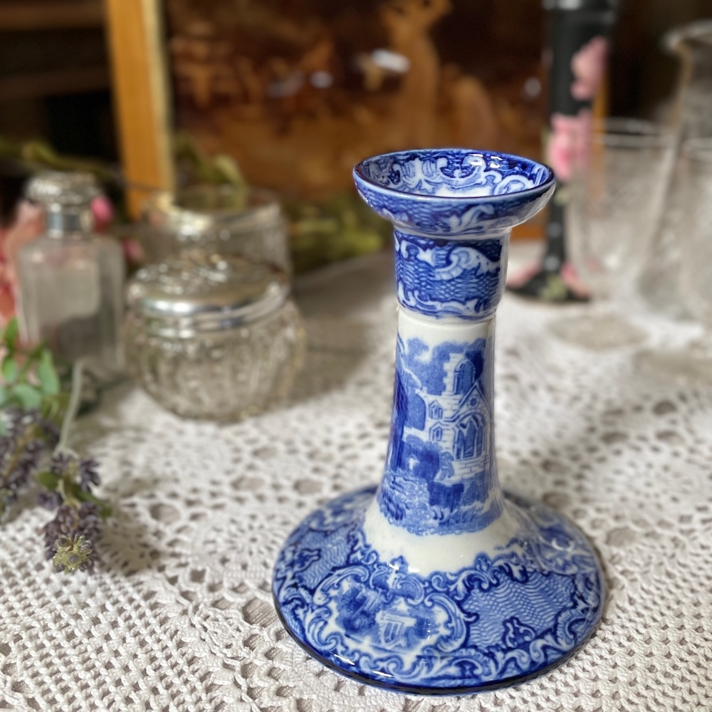 配送料の目安 ▶︎1920~30年代、George Jones & Sonsのキャンドルスタンド。”ABBEY"というブルーアンドホワイトのシリーズで、修道院のある風景が描かれています。
