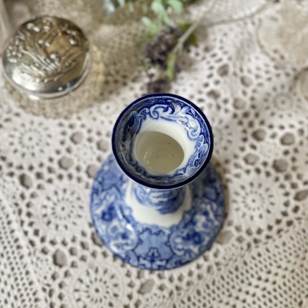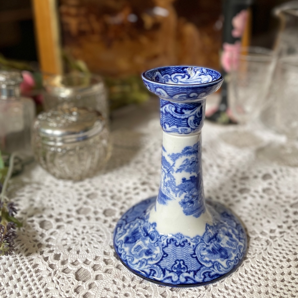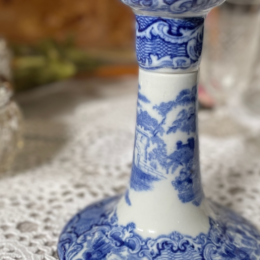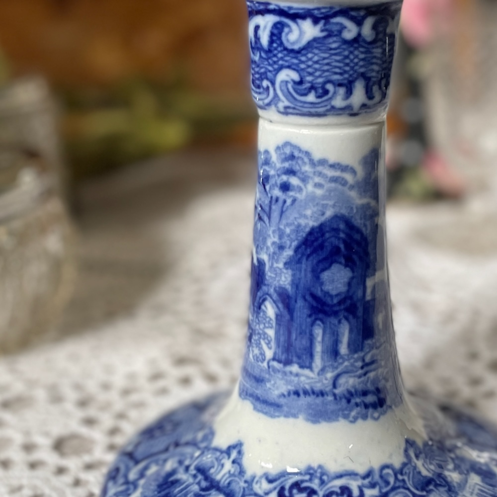 配送料の目安 ▶︎1920~30年代、George Jones & Sonsのキャンドルスタンド。”ABBEY"というブルーアンドホワイトのシリーズで、修道院のある風景が描かれています。