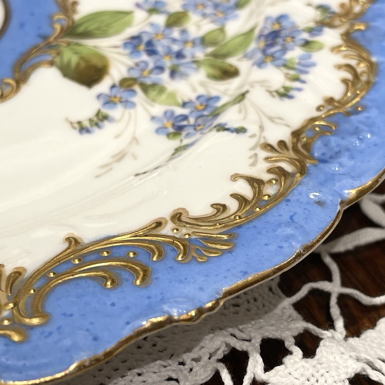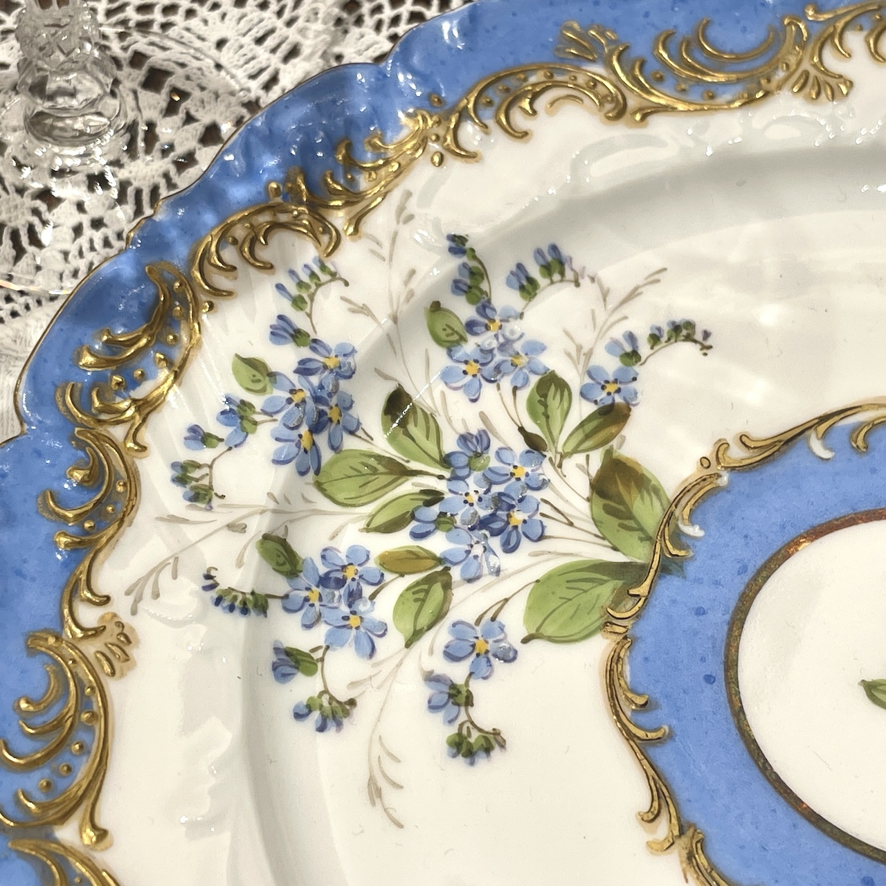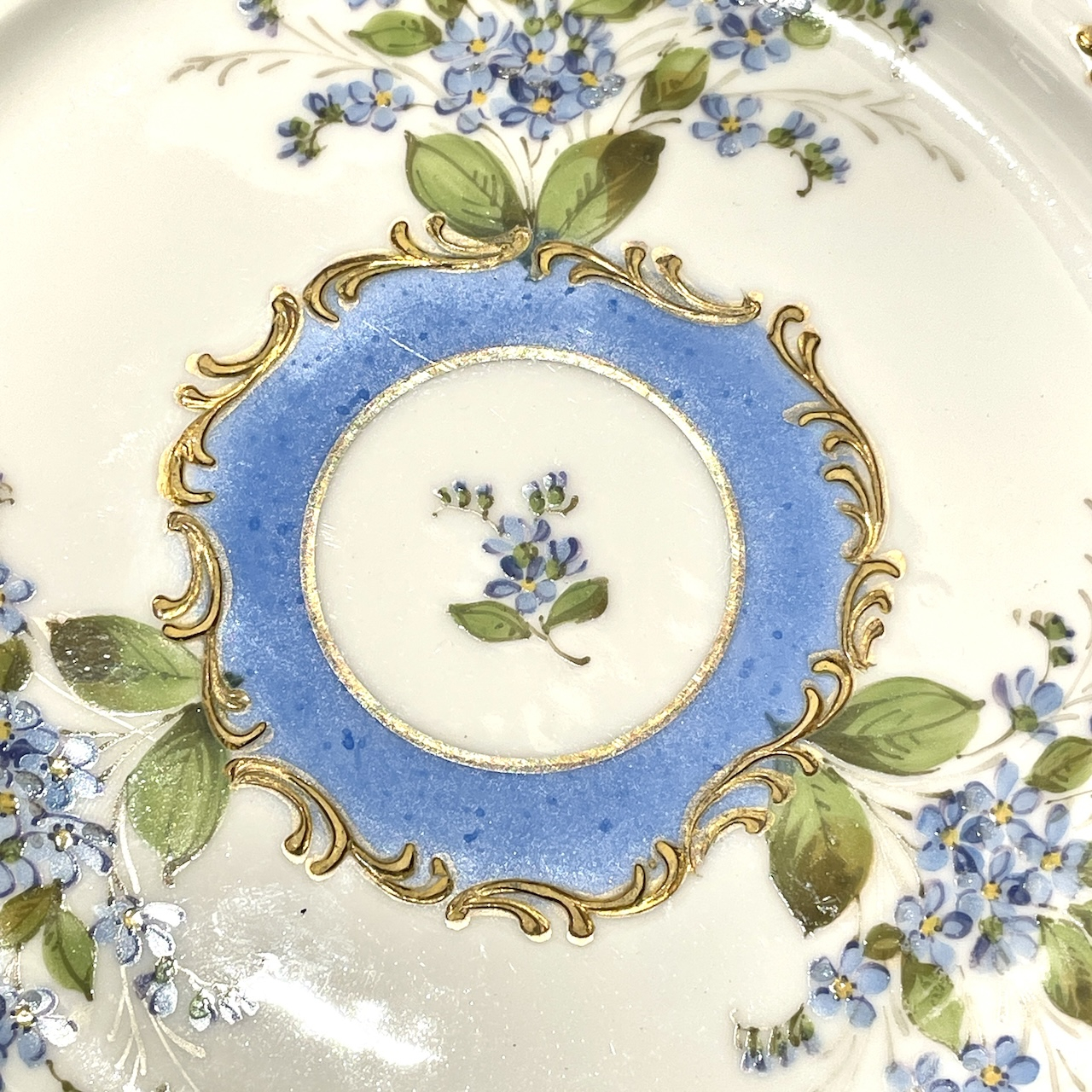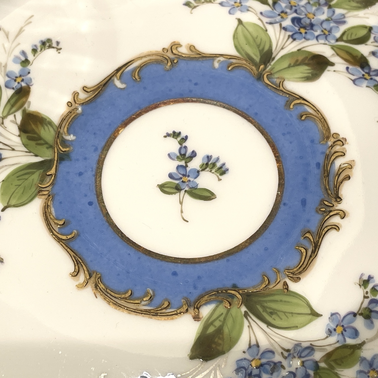 水色と金彩の組み合わせはまさにフランス陶磁器らしい華やかで可憐な佇まいです。