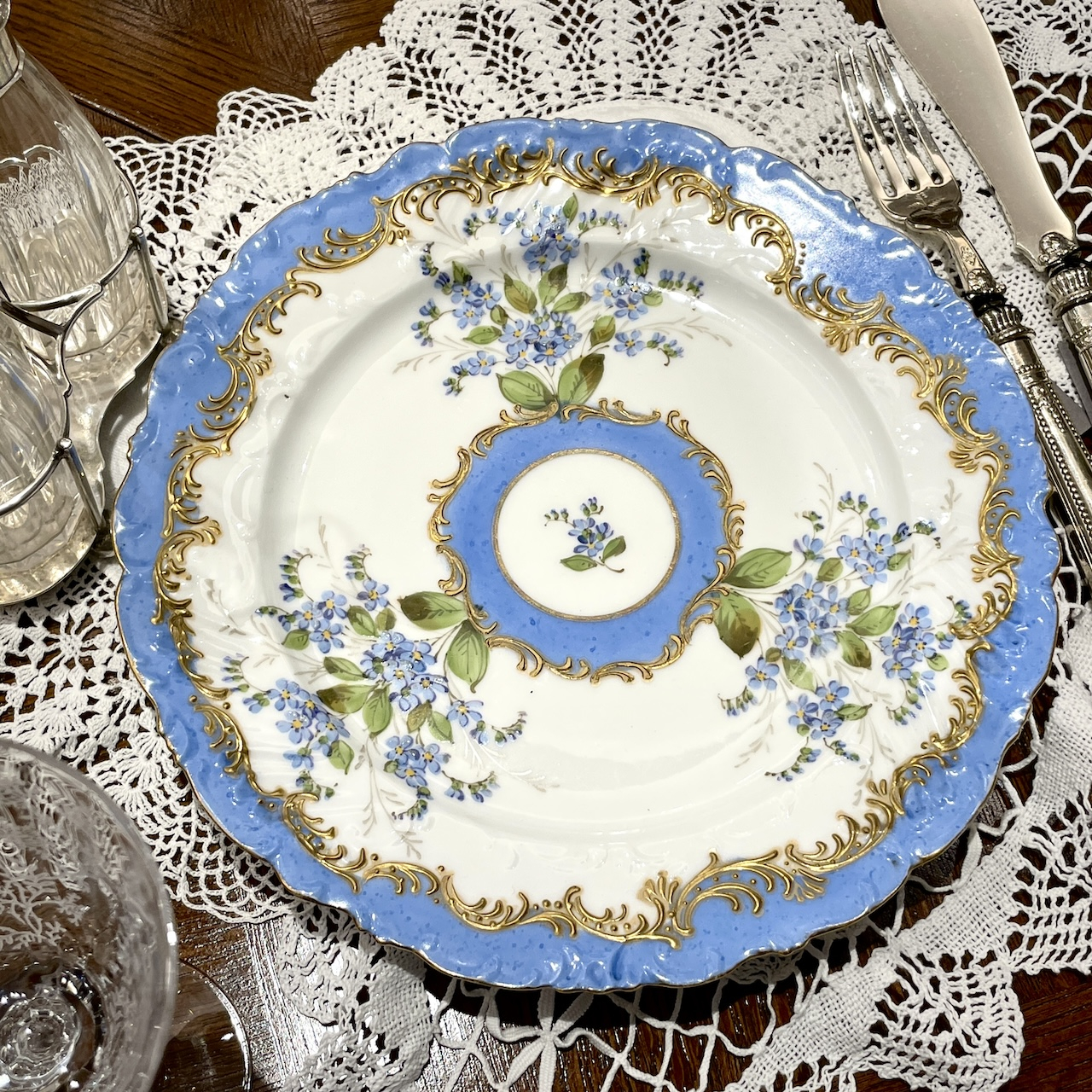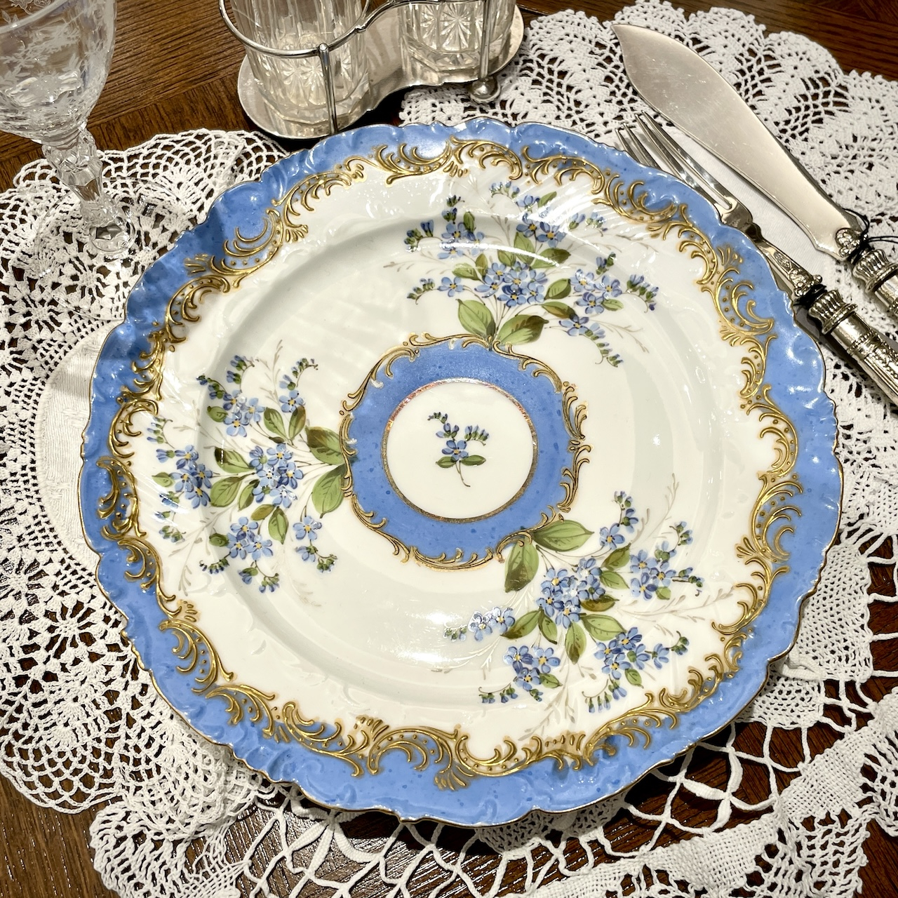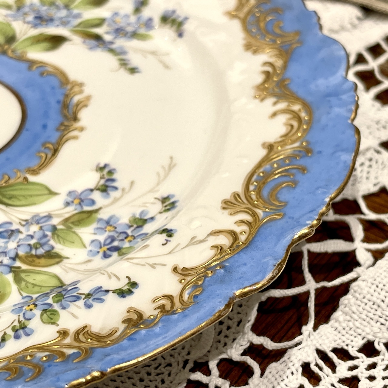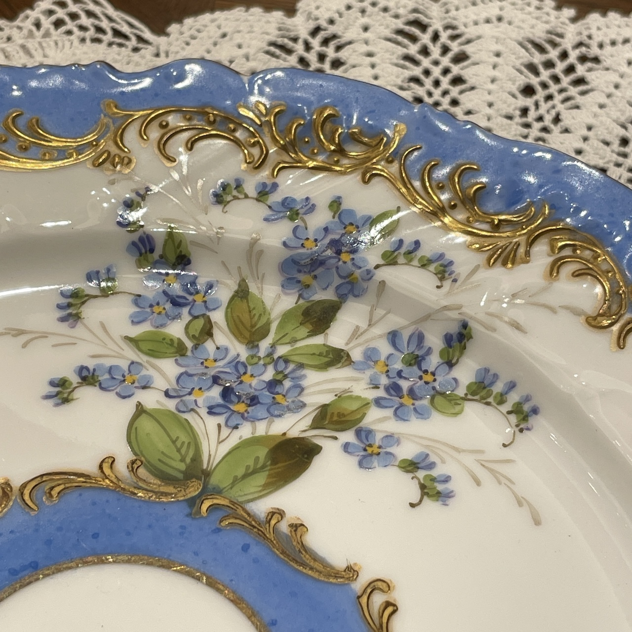 水色と金彩の組み合わせはまさにフランス陶磁器らしい華やかで可憐な佇まいです。