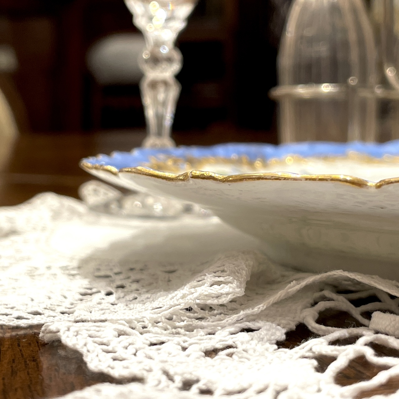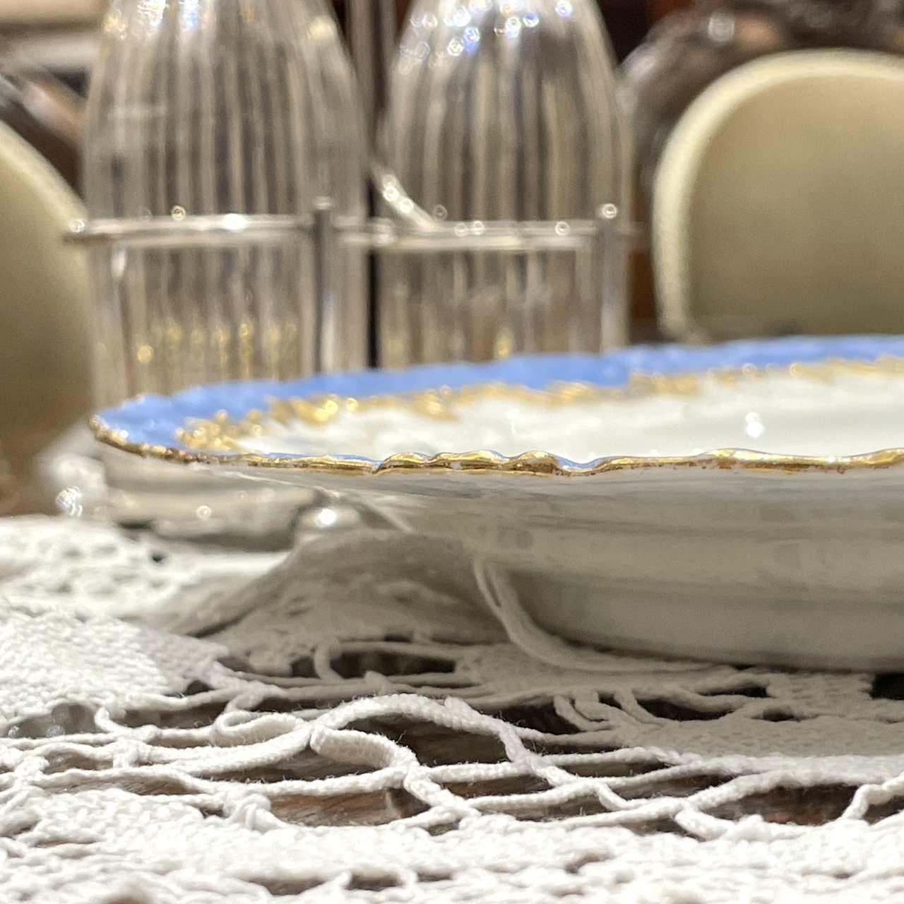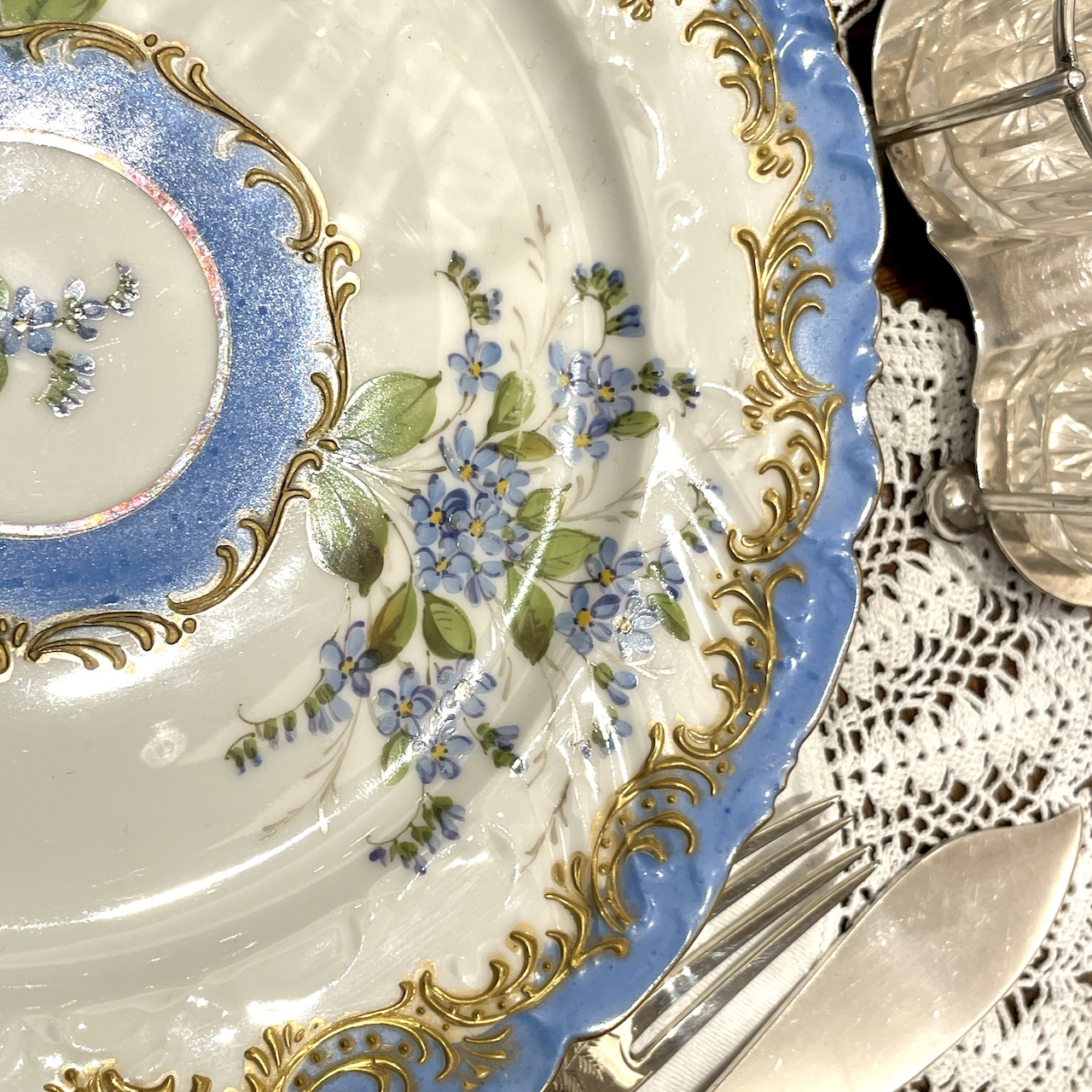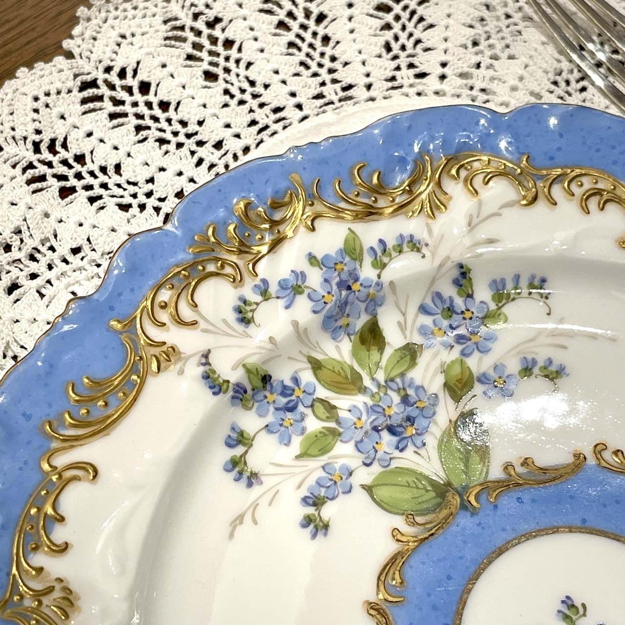 水色と金彩の組み合わせはまさにフランス陶磁器らしい華やかで可憐な佇まいです。