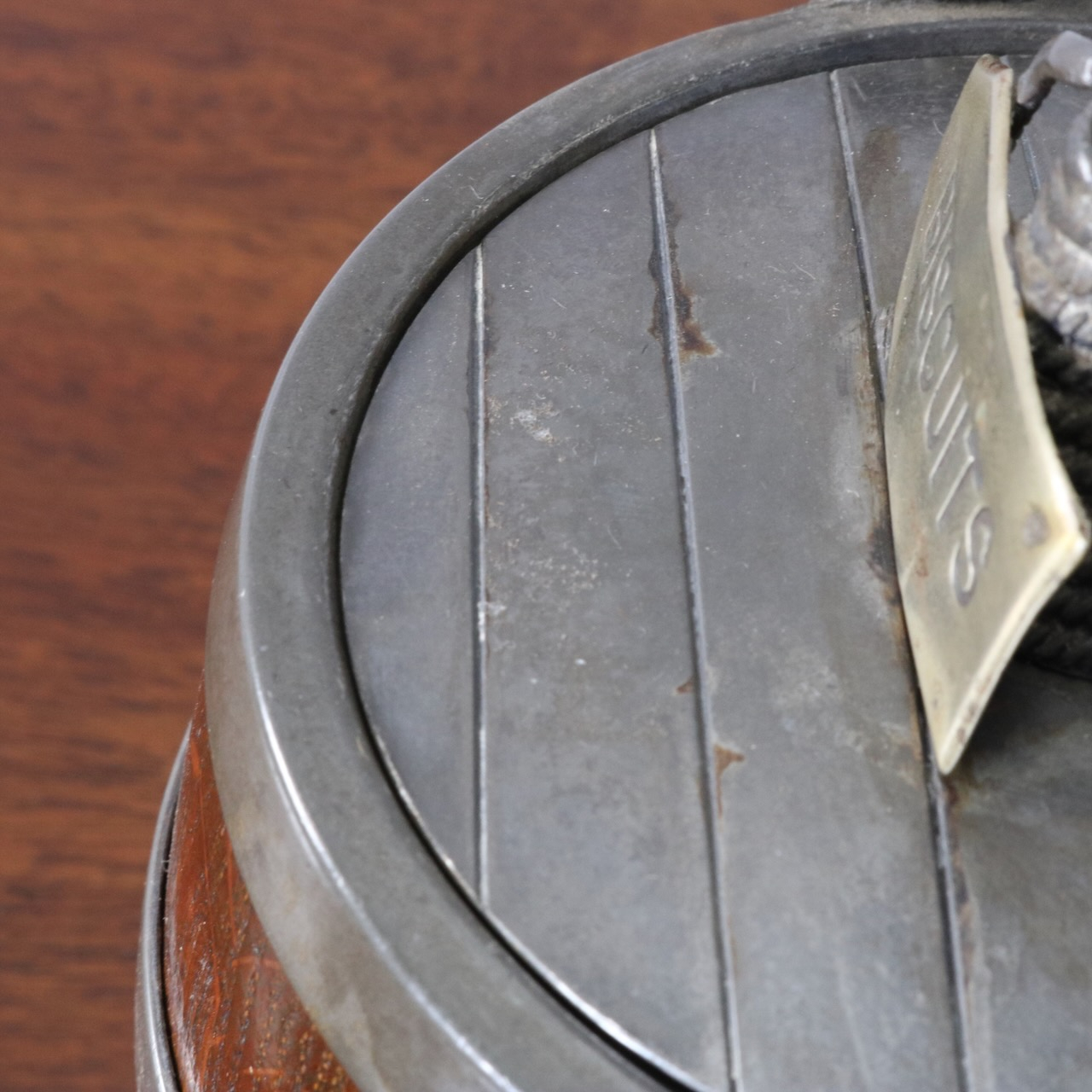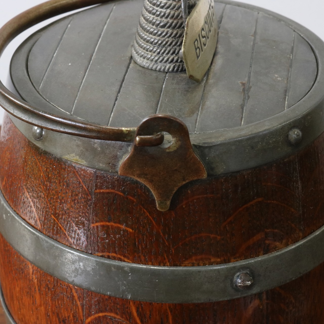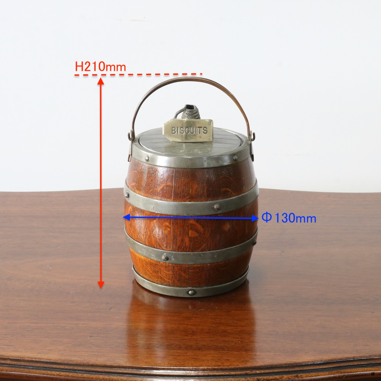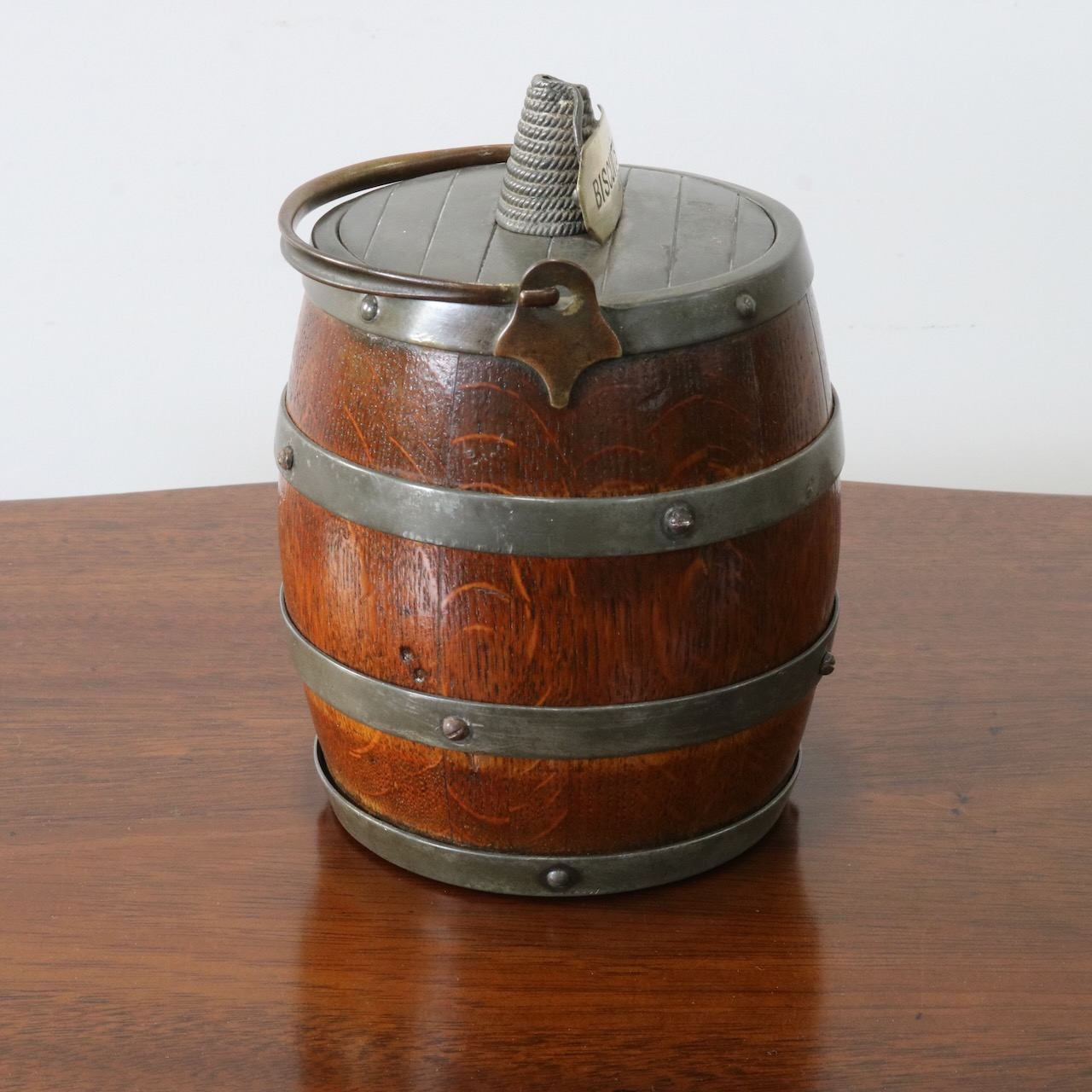 「BISCUITS」と書かれたピューターのフタがポイント。木と金属の組み合わせも良い雰囲気です。