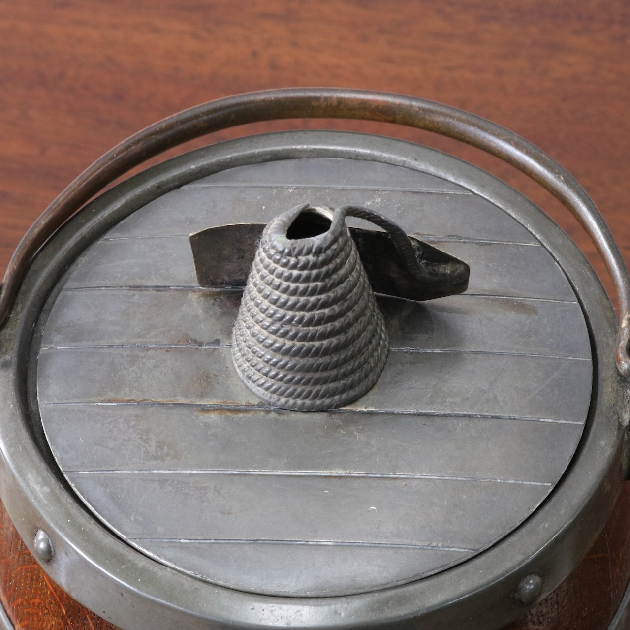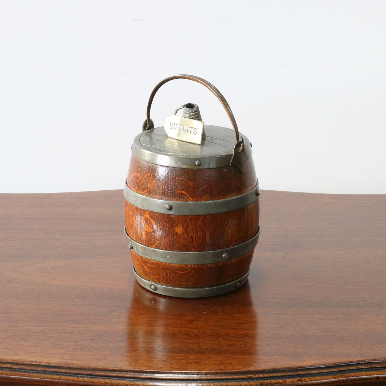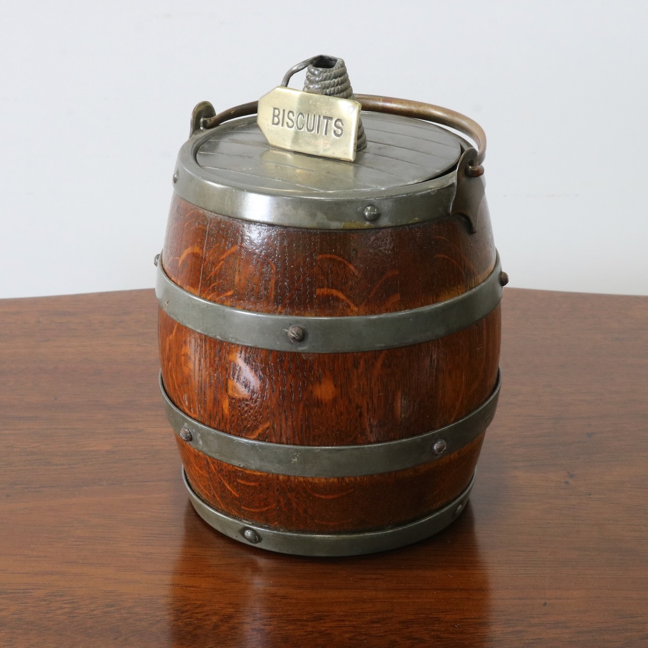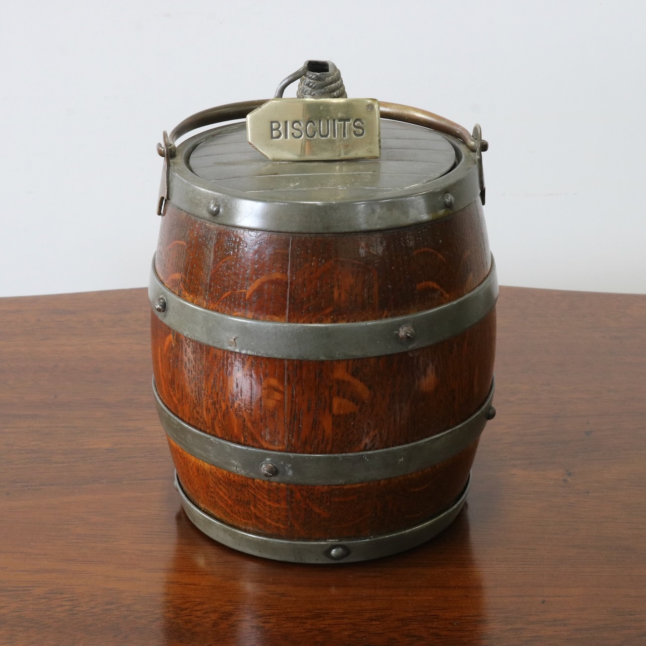 「BISCUITS」と書かれたピューターのフタがポイント。木と金属の組み合わせも良い雰囲気です。