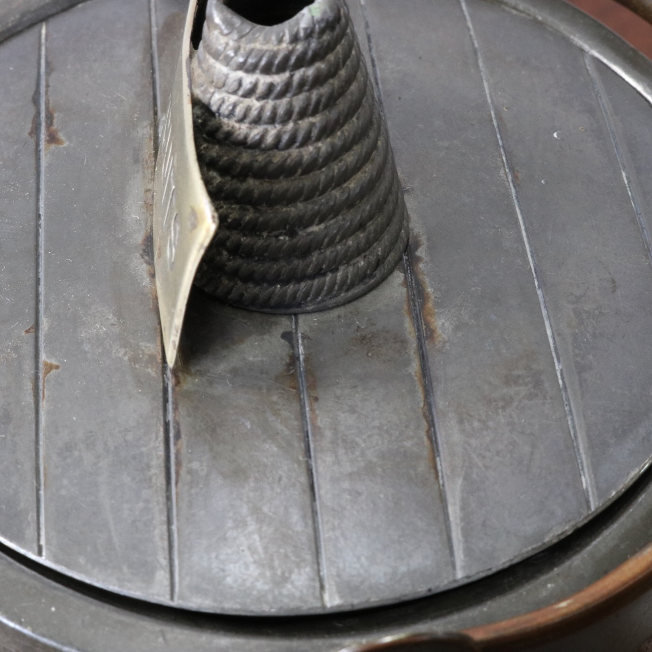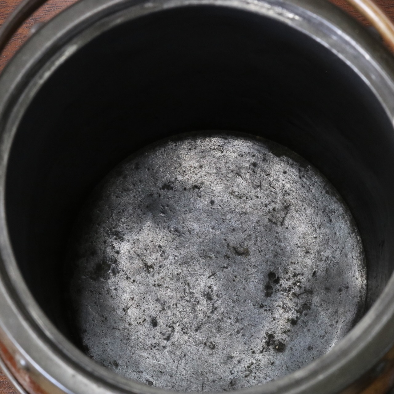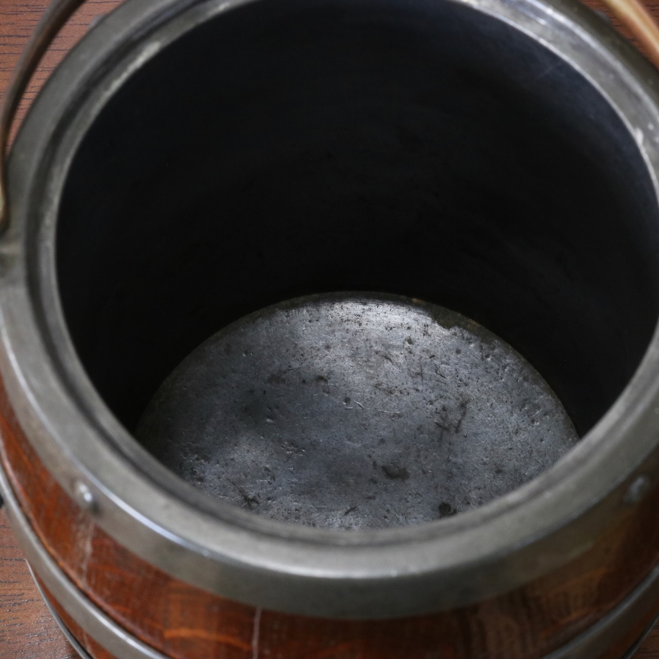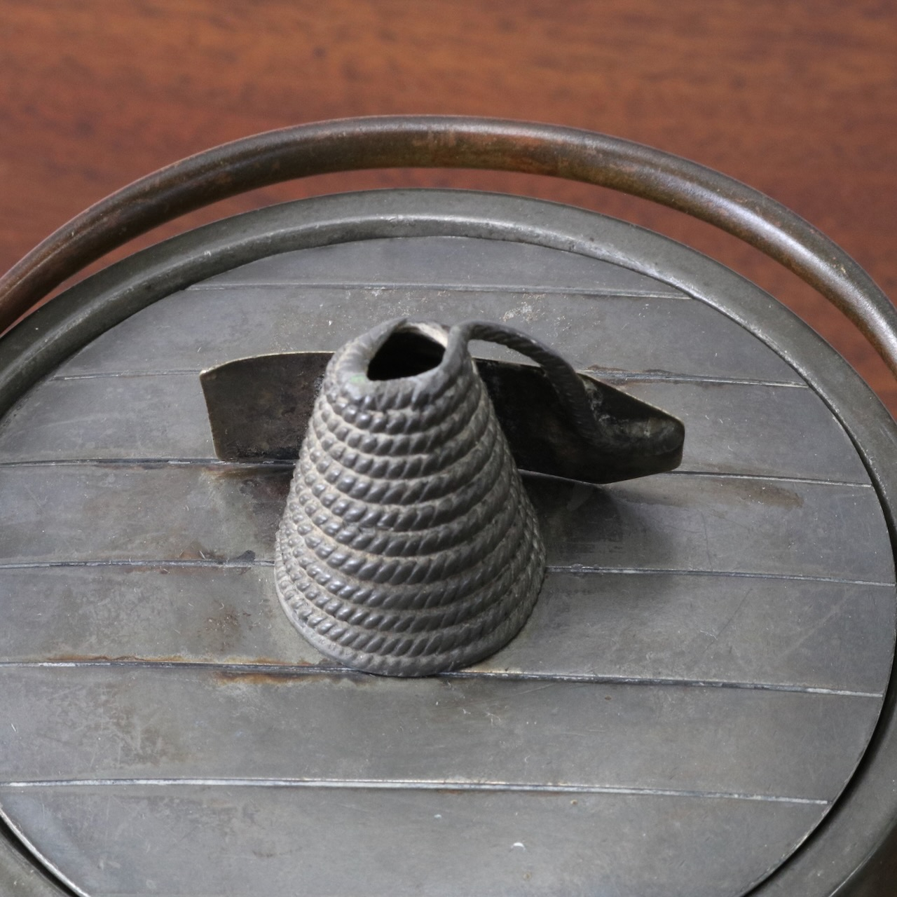 「BISCUITS」と書かれたピューターのフタがポイント。木と金属の組み合わせも良い雰囲気です。