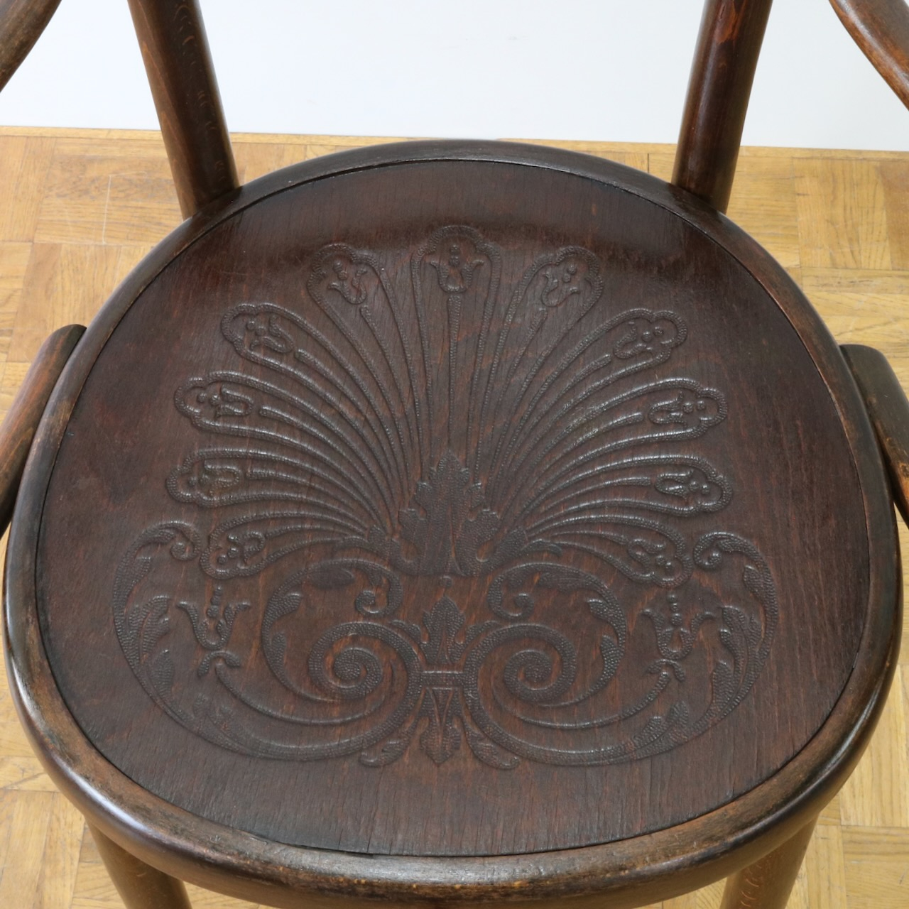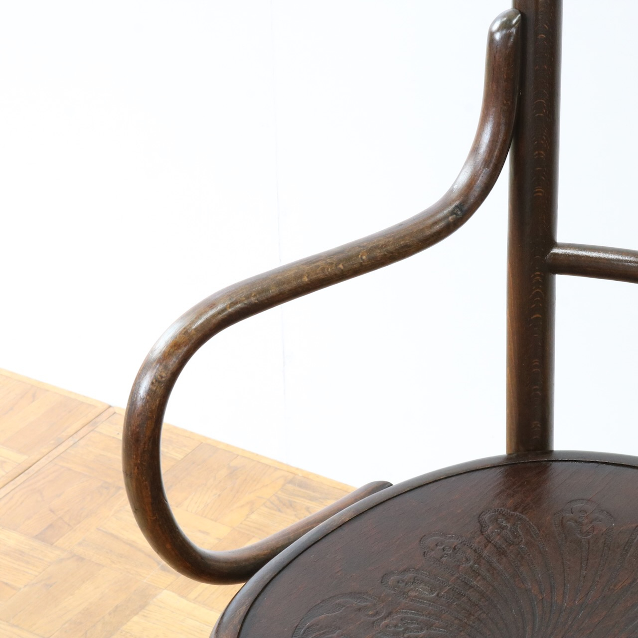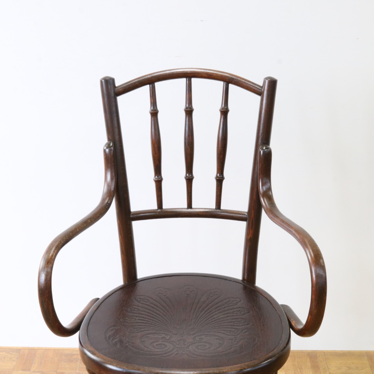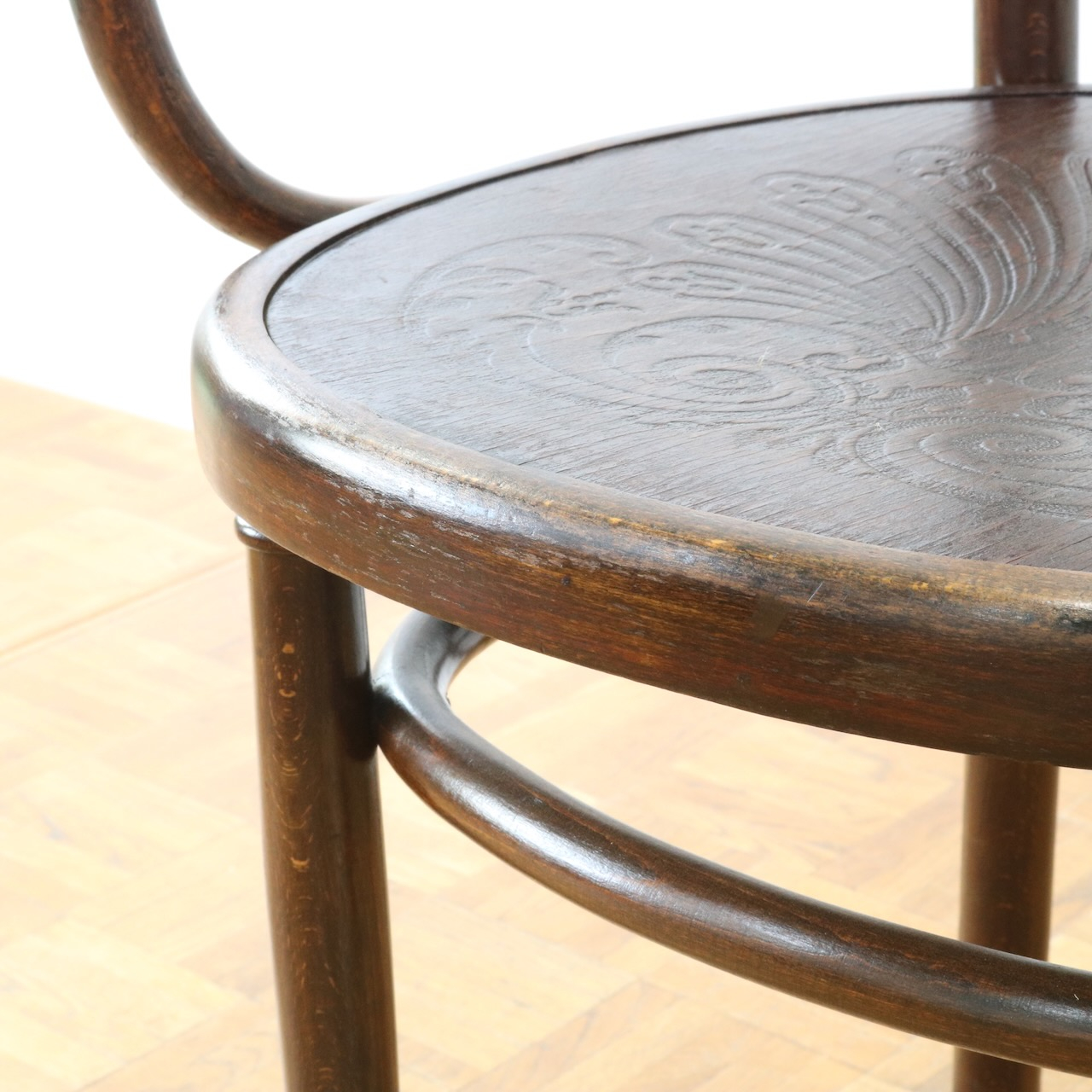 アンティークの曲木椅子でしか見られない、経年変化による座面のエンボスは良い風合いを醸し出しています。