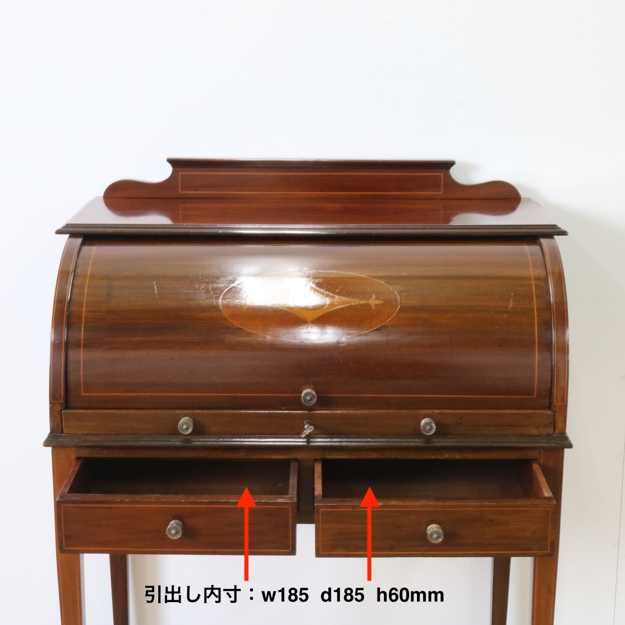 繊細なインレイが施されたロールトップを開くとライティングスペースが現れます。エドワーディアンの洗練された佇まいも美しいお品です。