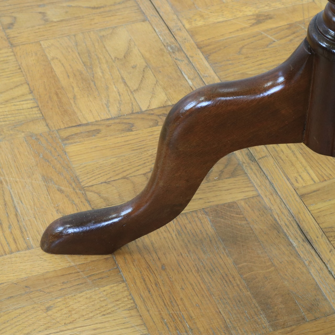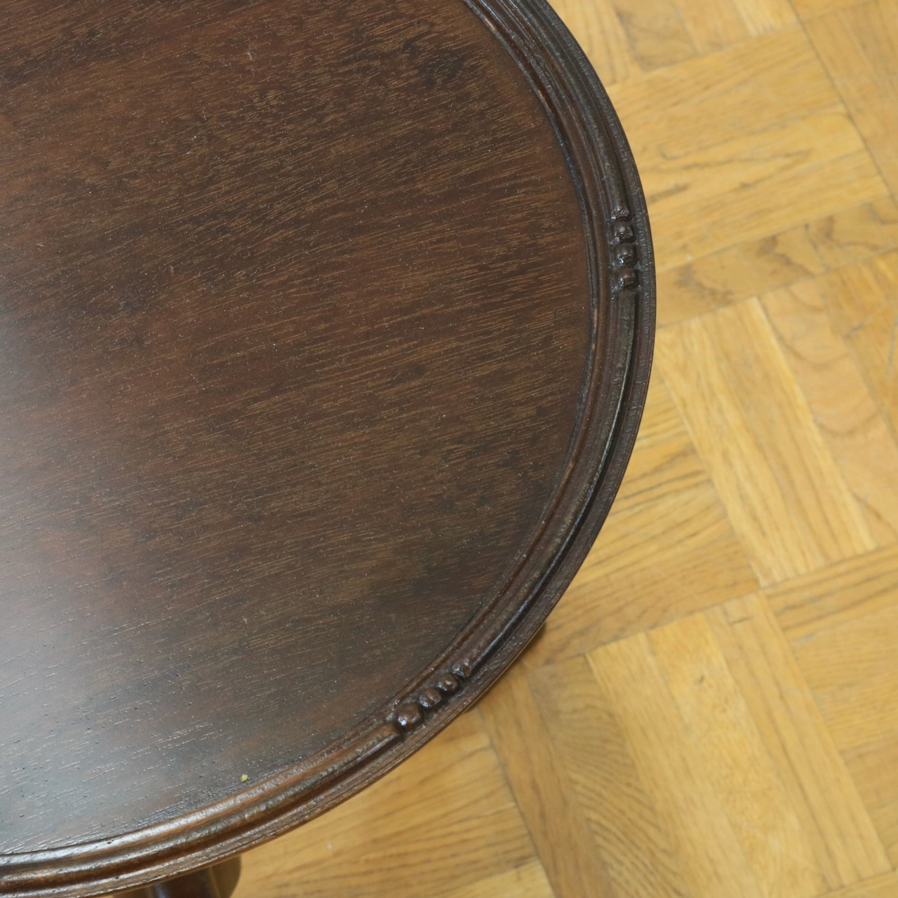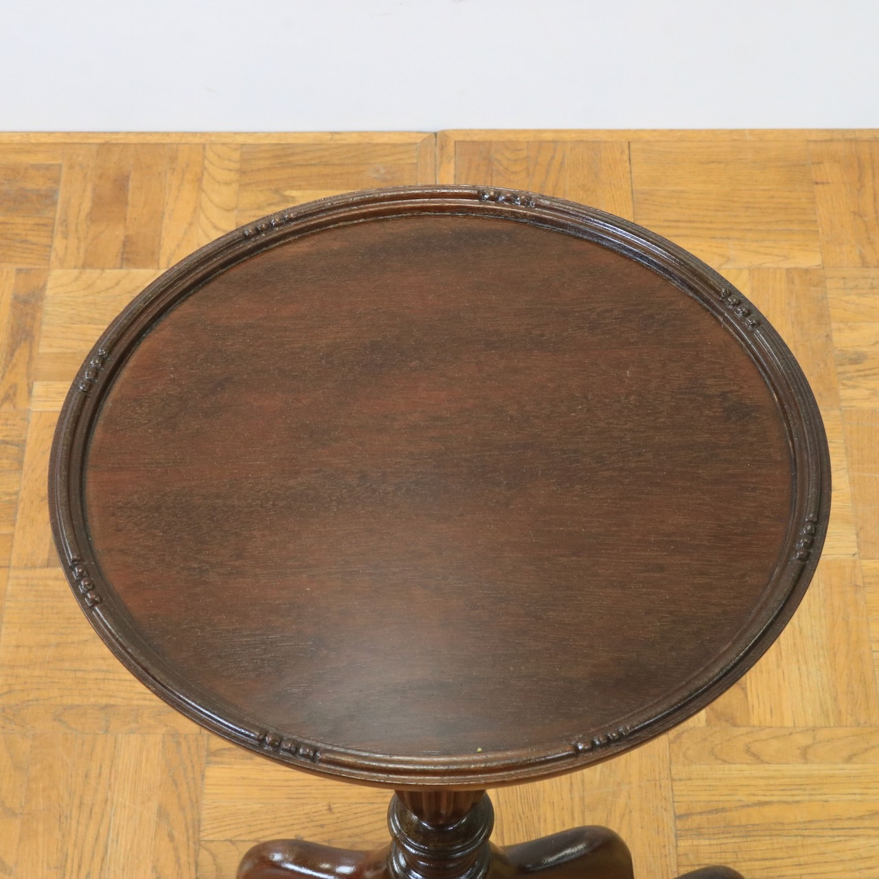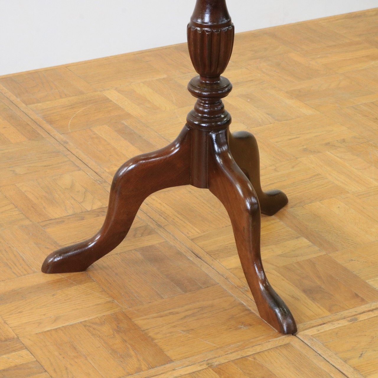 配送料の目安 ▶︎マホガニー材のワインテーブル。シンプルでどんなシーンにも合わせやすい小さなテーブルですが、天板の縁やトライポッドの脚の付け根のデザインに個性が光ります。