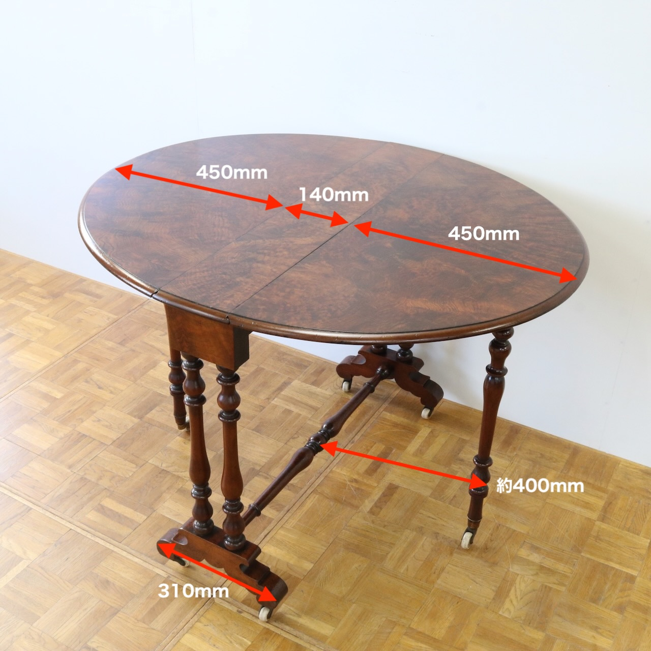 配送料の目安 ▶︎1890年代、ウォールナット材のドロップリーフテーブル。