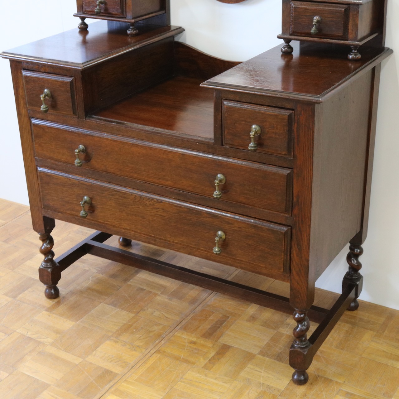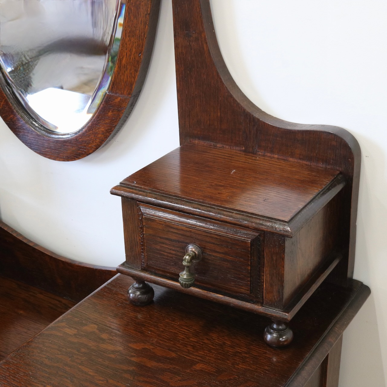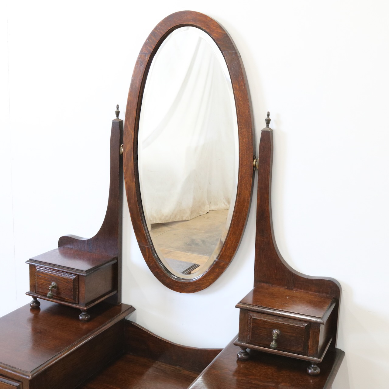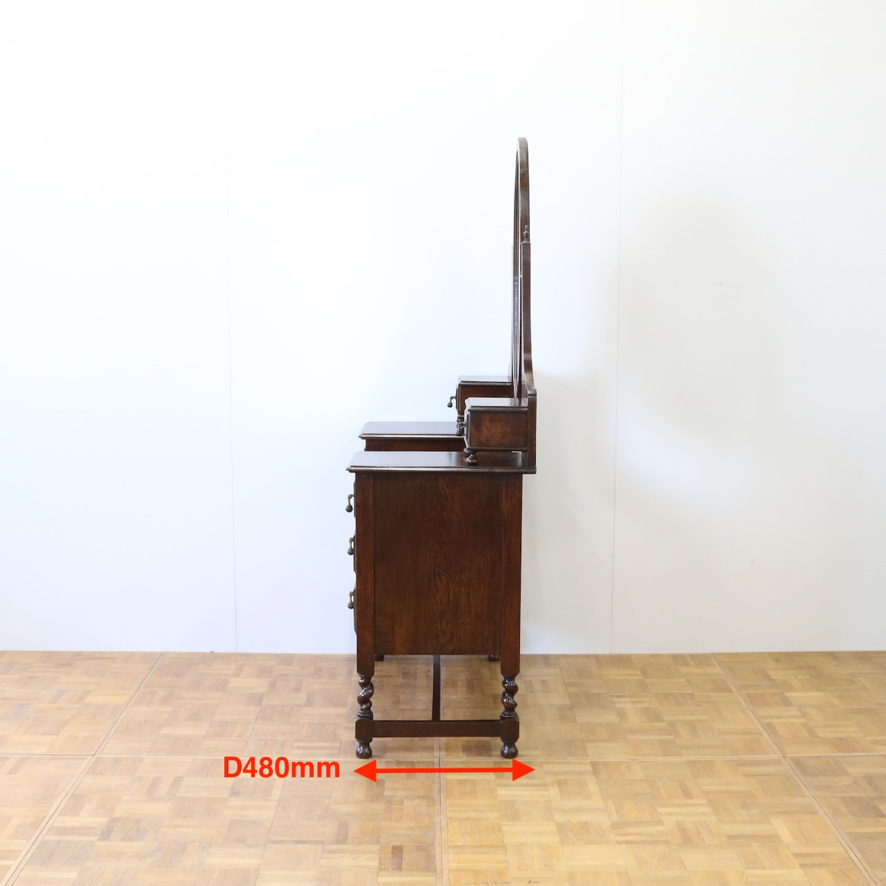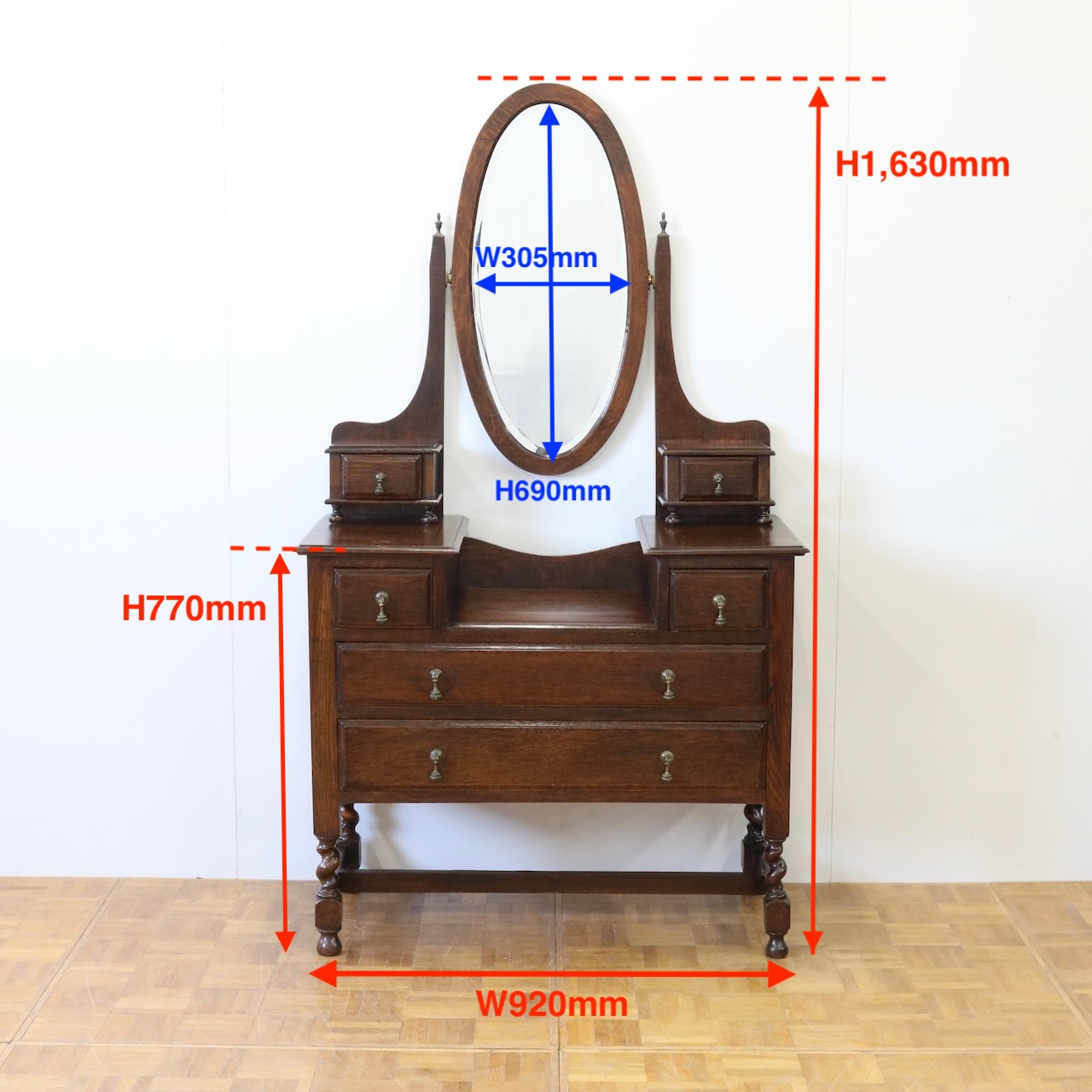 配送料の目安 ▶︎1930年代、オーク材のドレッシングチェスト。左右に分けられた収納と、楕円型のミラーが特徴的です。お化粧台としてだけでなく、収納力にも優れた便利な家具です。