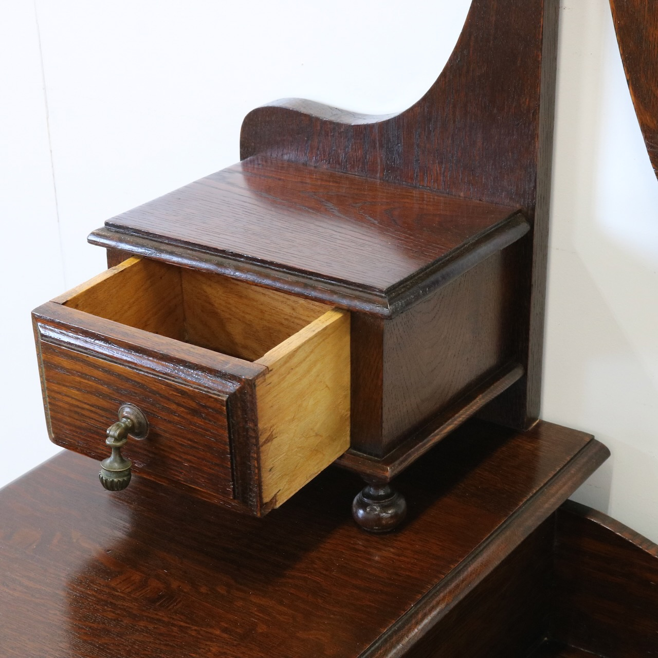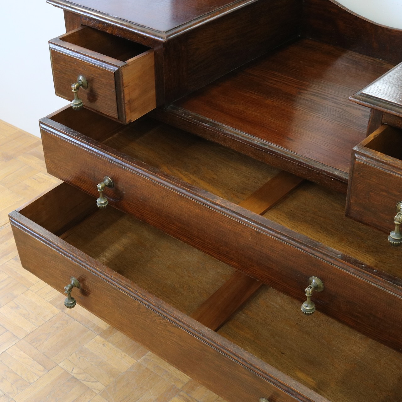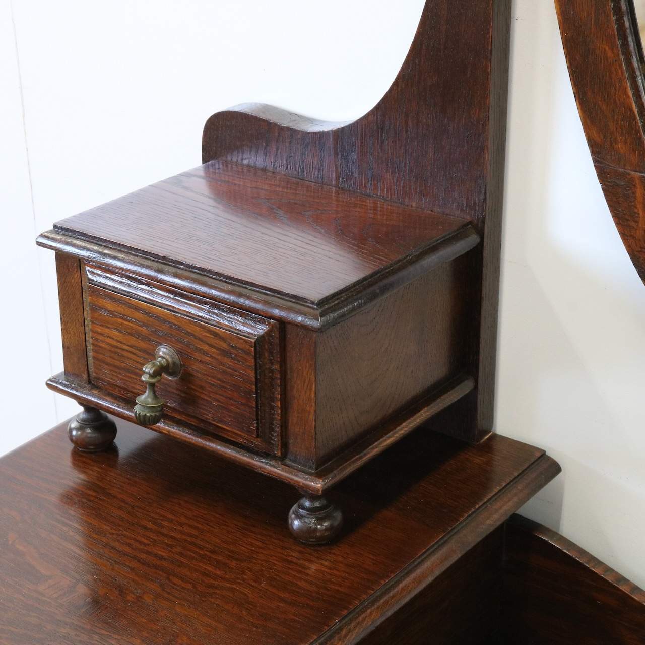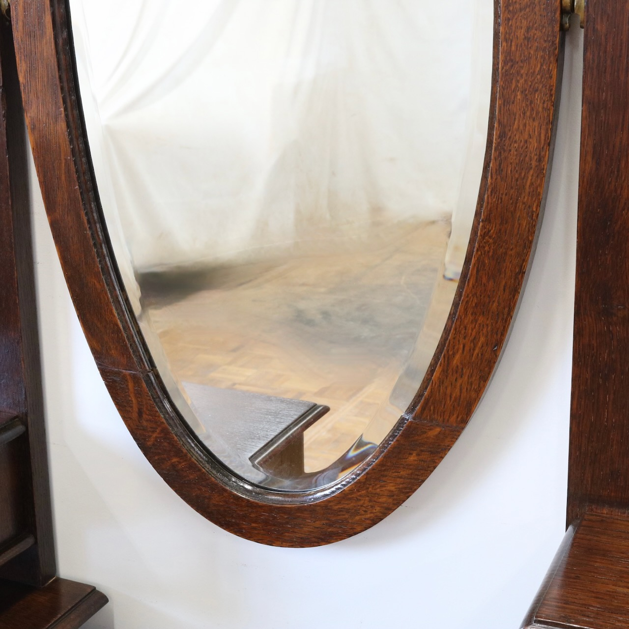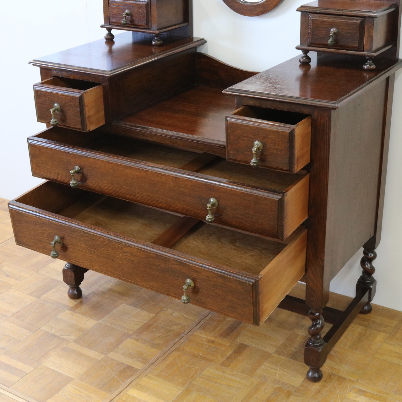 配送料の目安 ▶︎1930年代、オーク材のドレッシングチェスト。左右に分けられた収納と、楕円型のミラーが特徴的です。お化粧台としてだけでなく、収納力にも優れた便利な家具です。