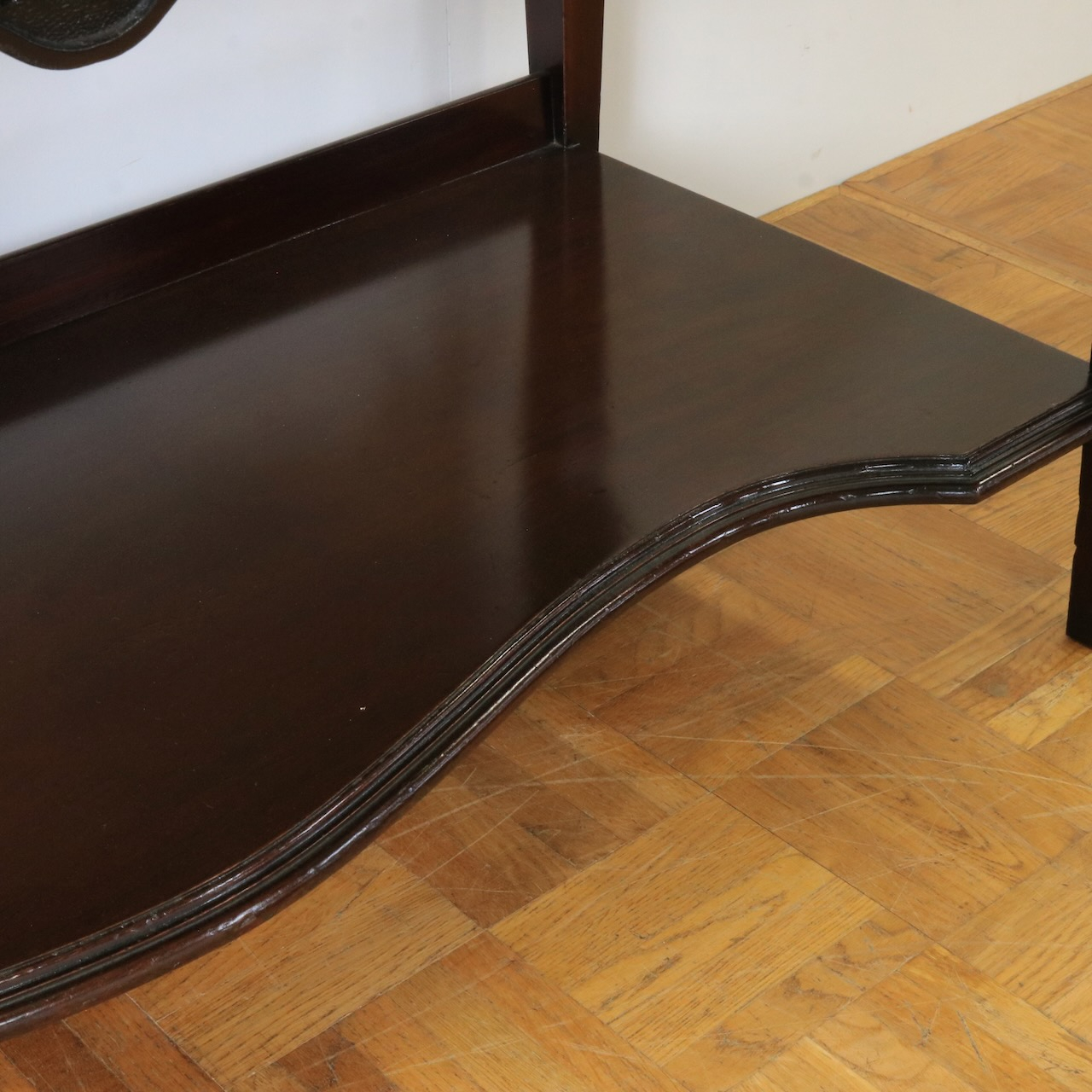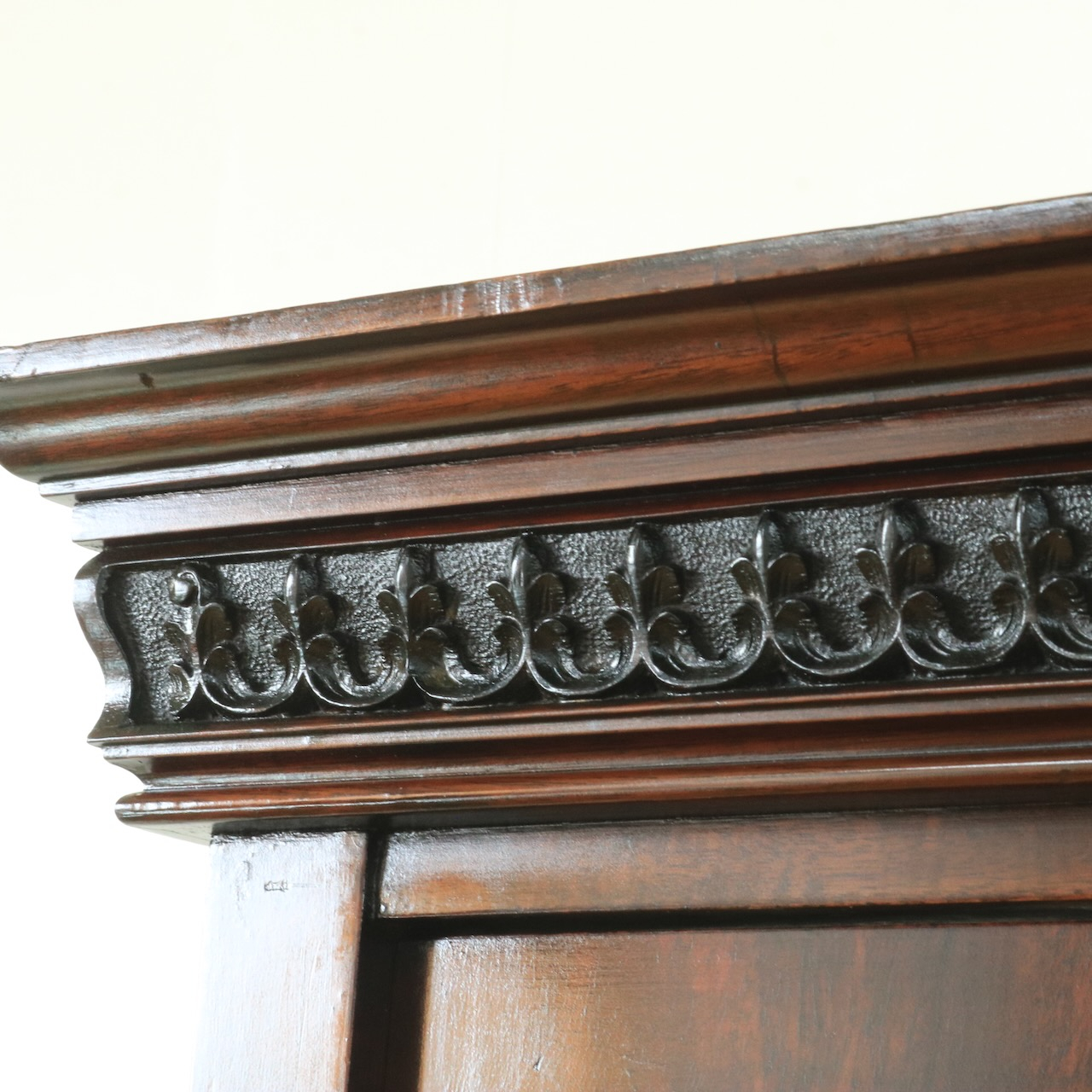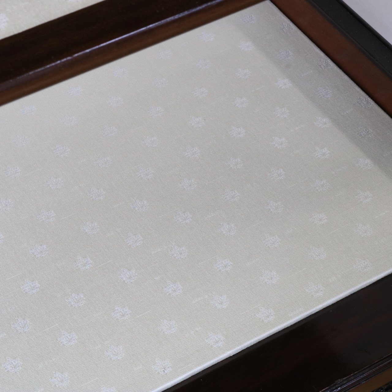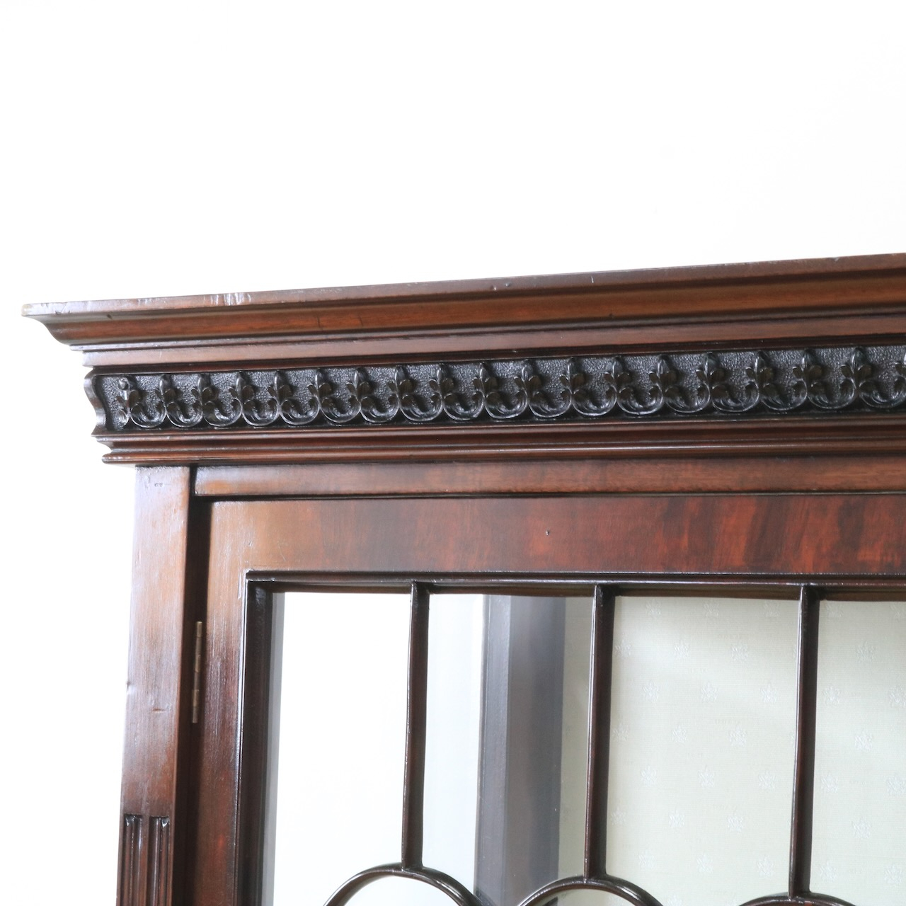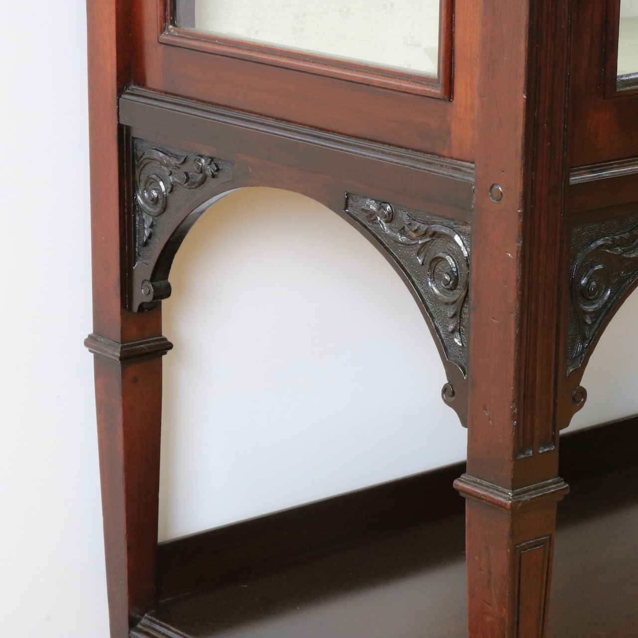 配送料の目安 ▶︎1920年代、マホガニーのグラスキャビネット。扉のオーバルとダイヤ柄を組み合わせた木の飾り縁がクラシックとモダンを融合させた素敵なデザインとなっています。4段で収納出来る内部も実用的なグラスキャビネットです。
