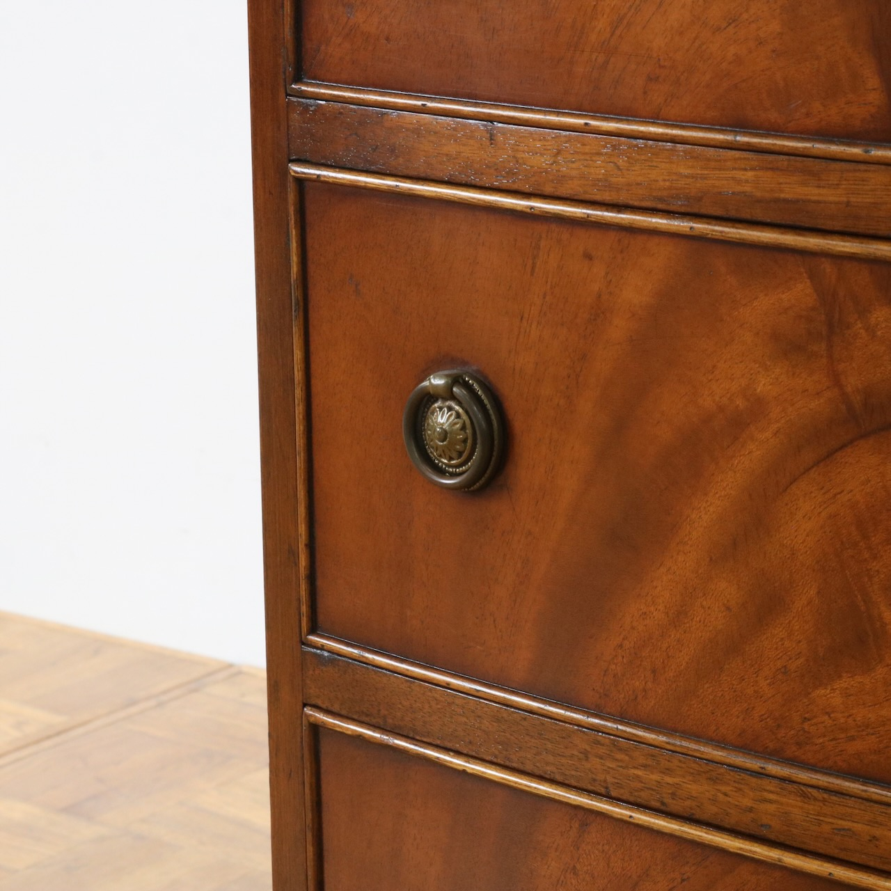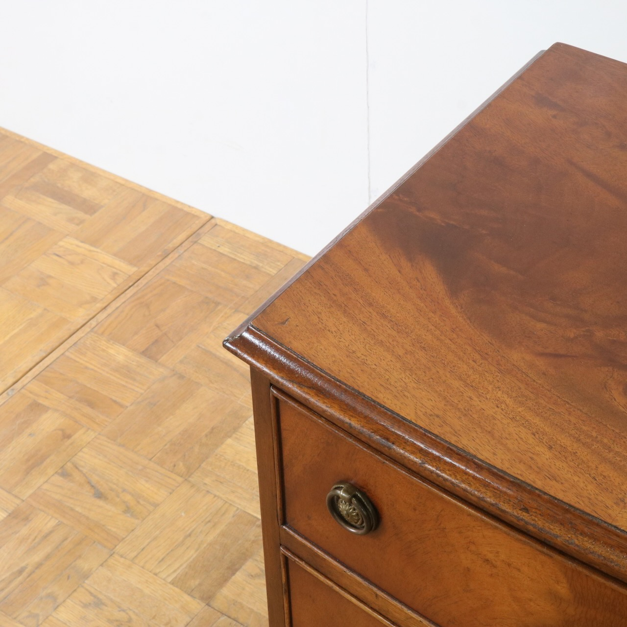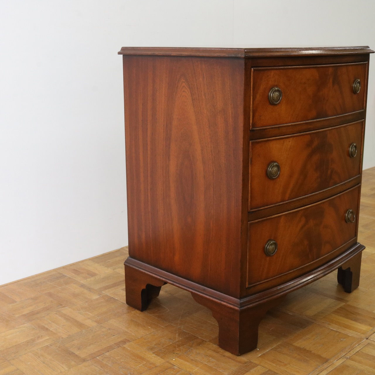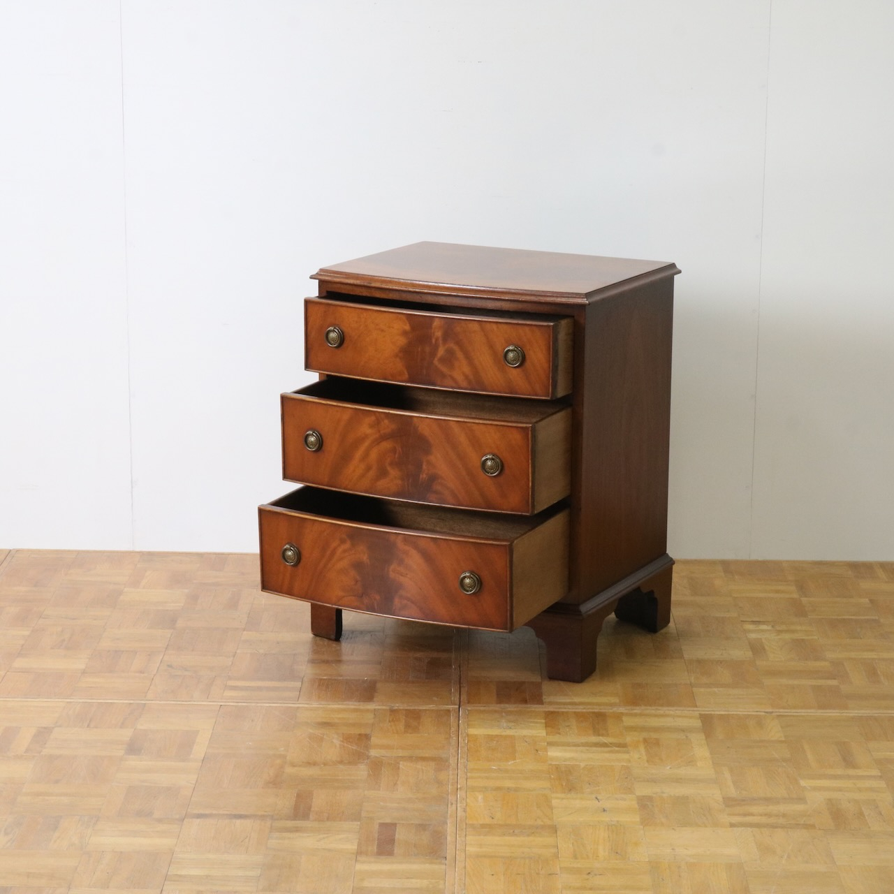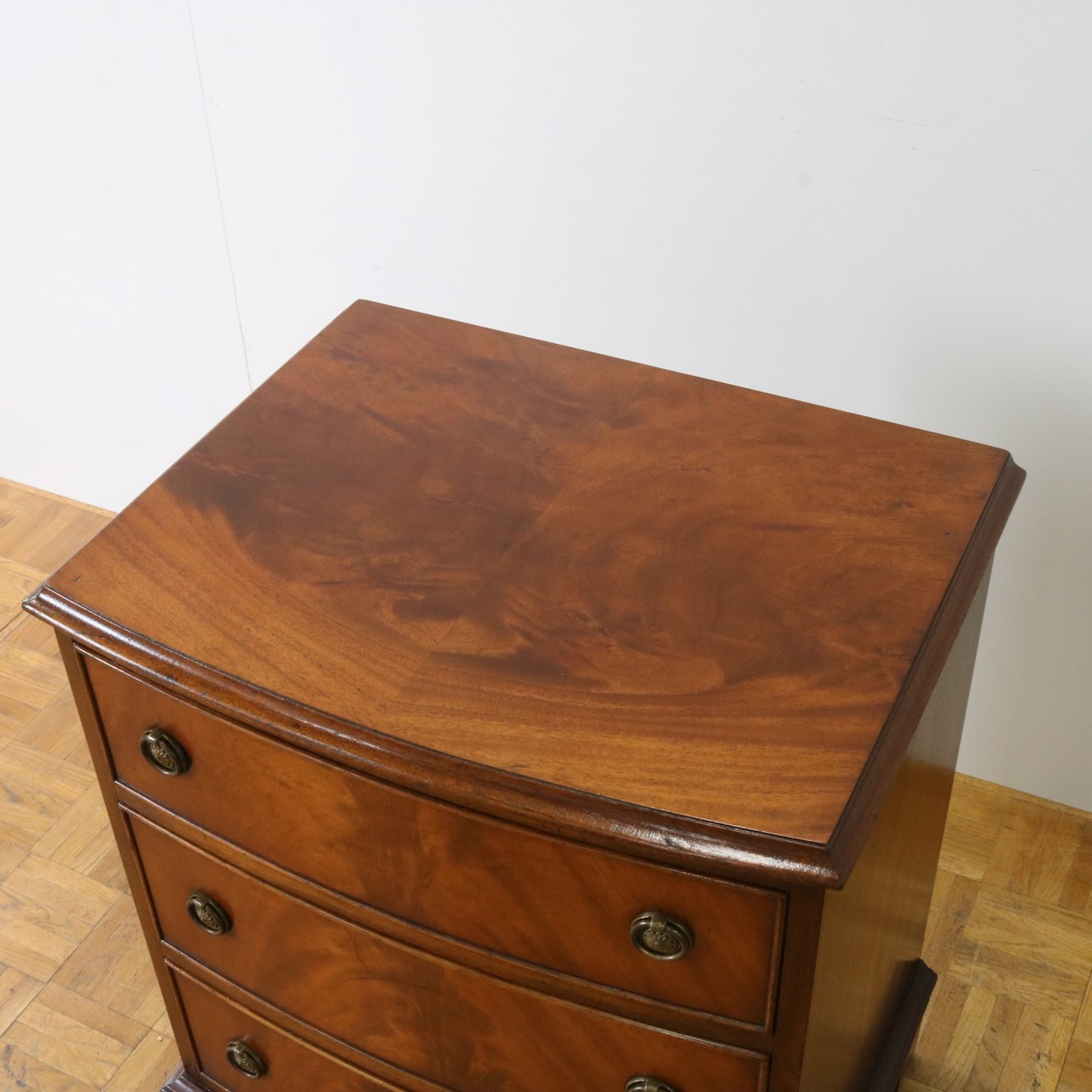 小ぶりなマホガニーのチェスト。緩やかに弧を描くトップや金具の装飾など、