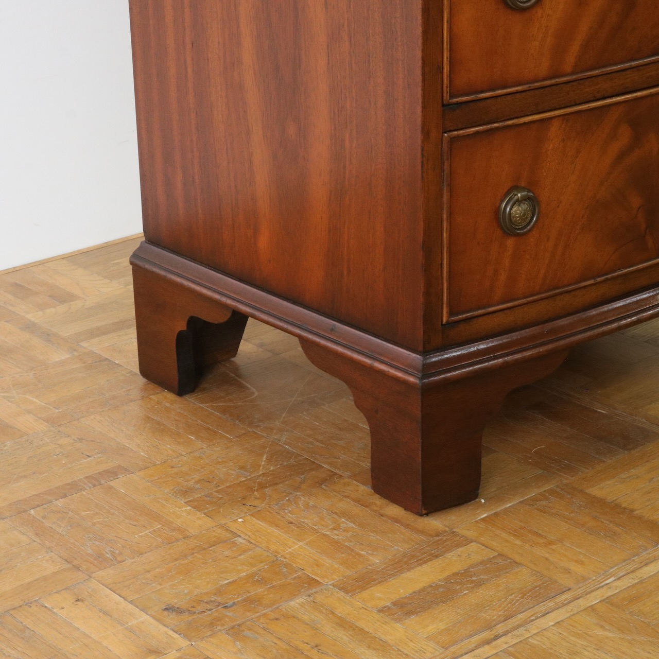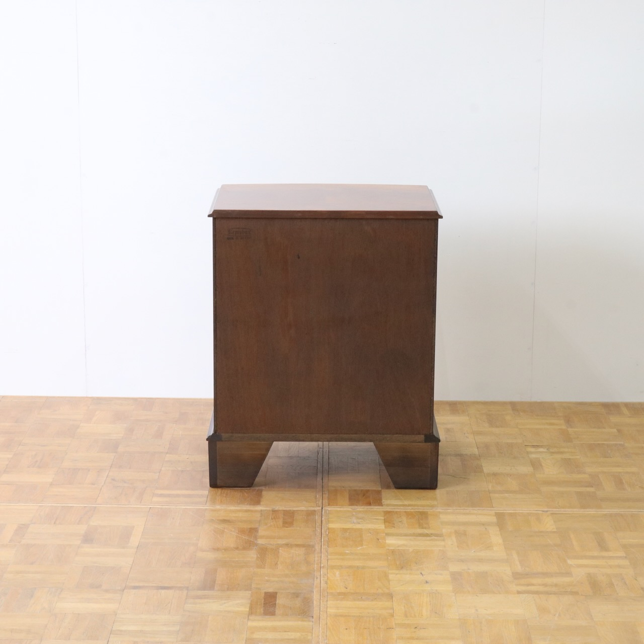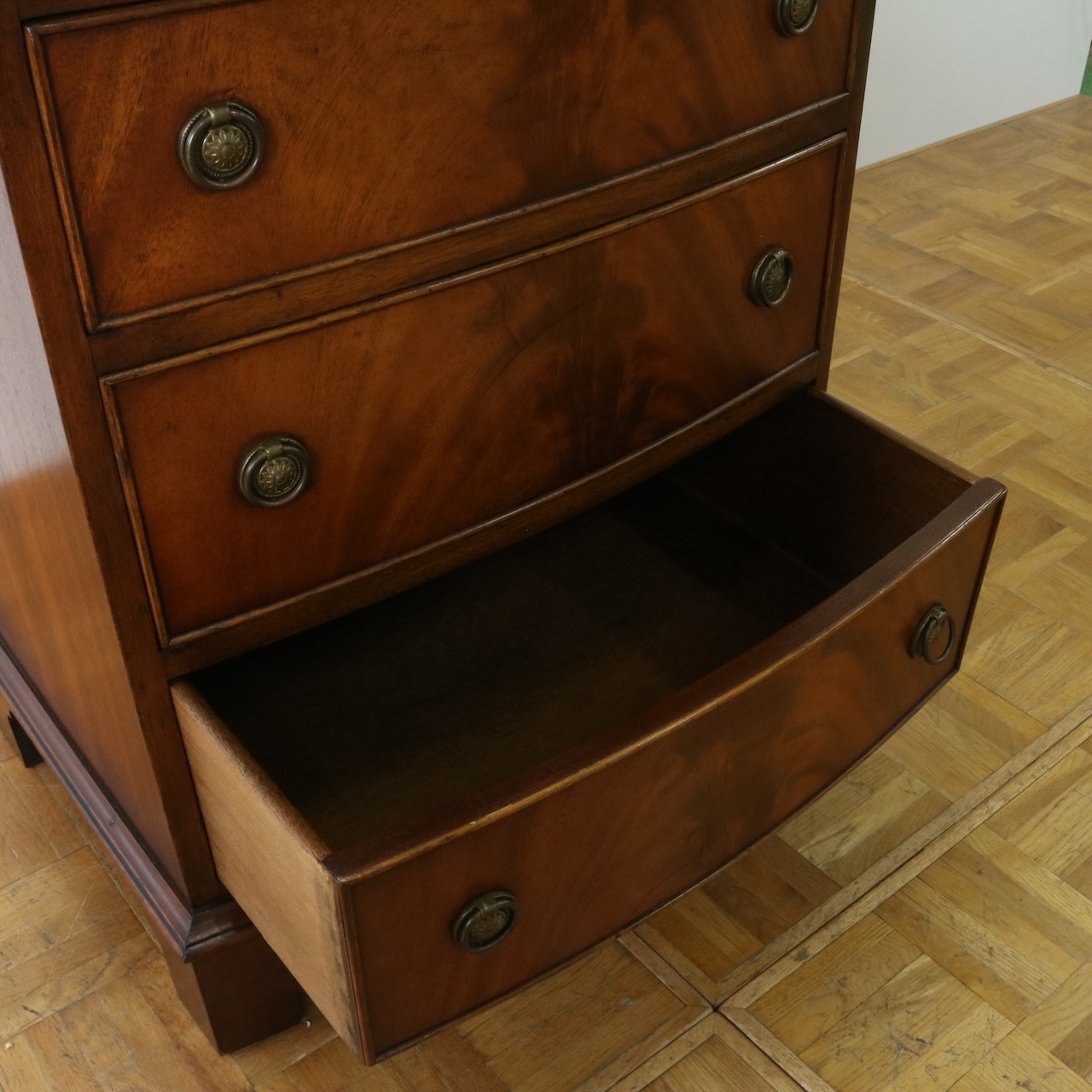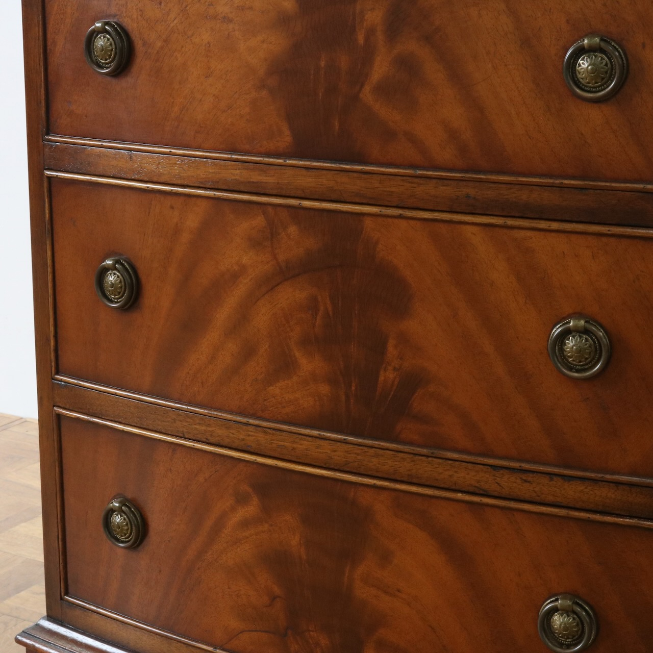 小ぶりなマホガニーのチェスト。緩やかに弧を描くトップや金具の装飾など、