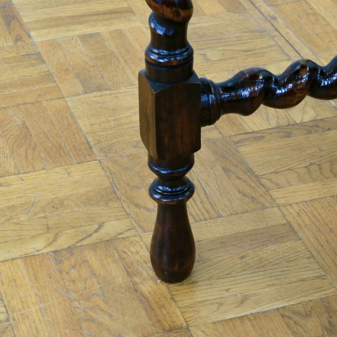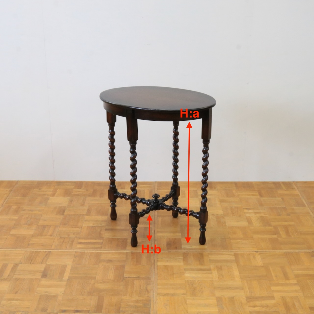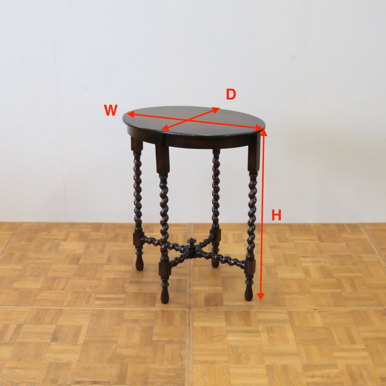 配送料の目安 ▶︎1930年代、オーク材のオケージョナルテーブル。バーリーシュガーツイストの脚周りが見事です。ストレッチャーにもツイストが取り入れられているのは珍しく、中心にはギボシのアクセント。手が込んだ造りはアンティークならでは。