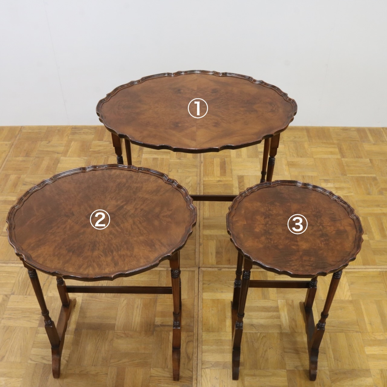 配送料の目安 ▶︎1930年代、ウォールナットのネストテーブル。
