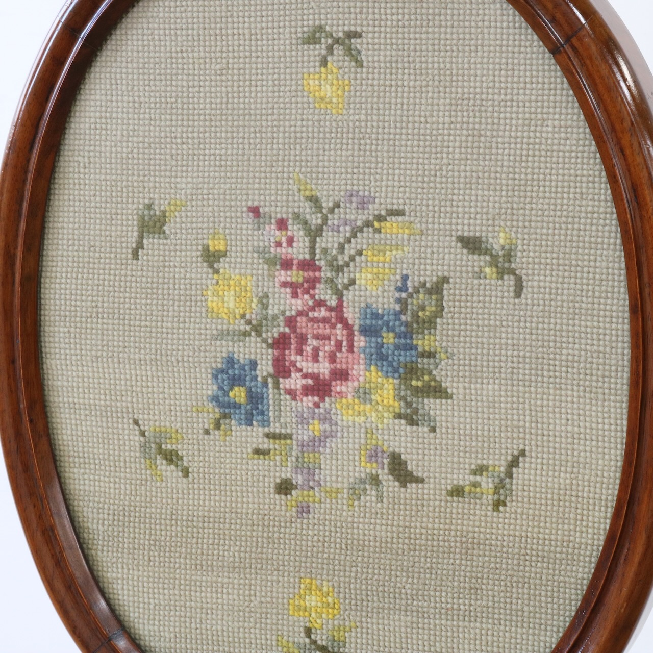 オーバル型のフレームに入ったお花の刺繍が可愛らしい一品です。