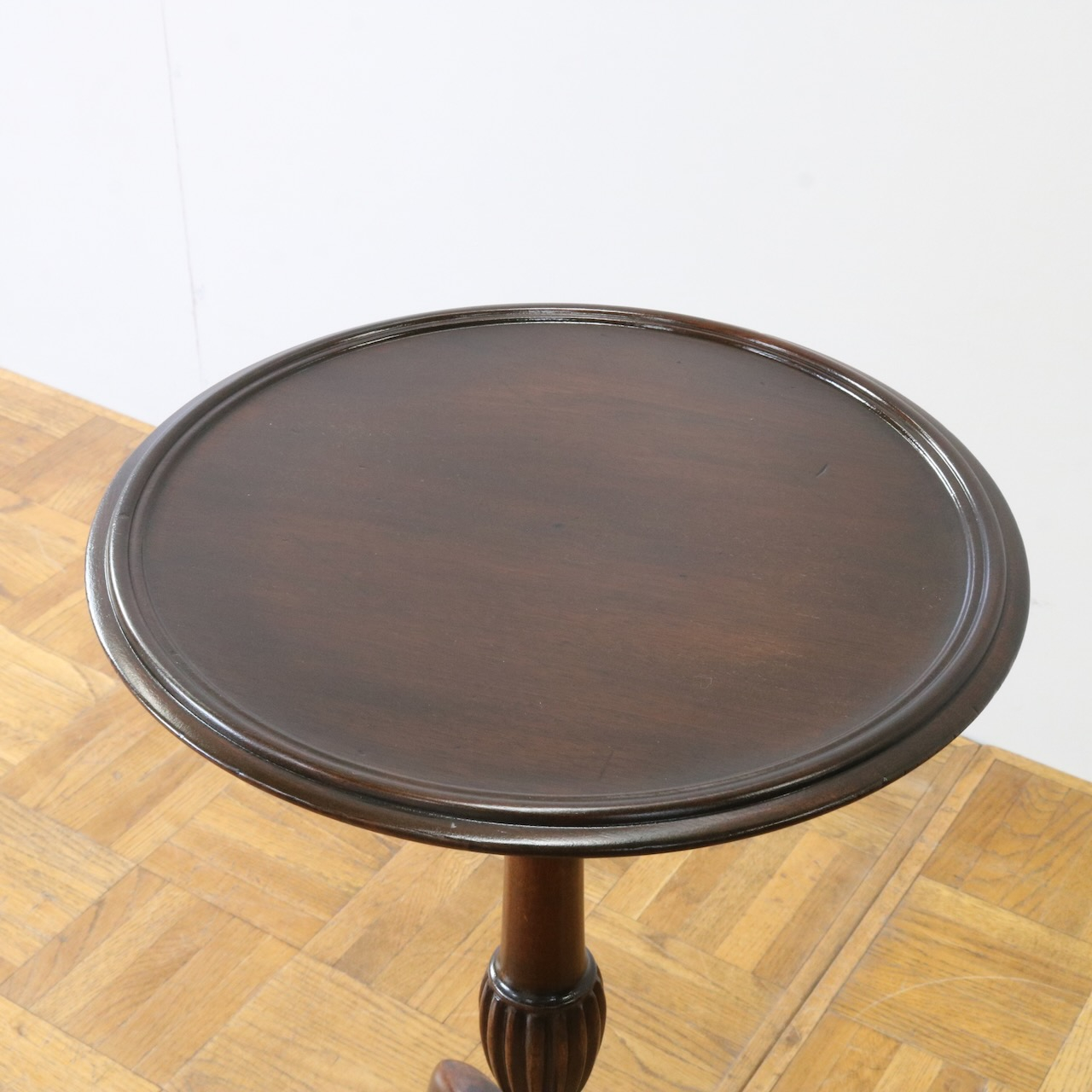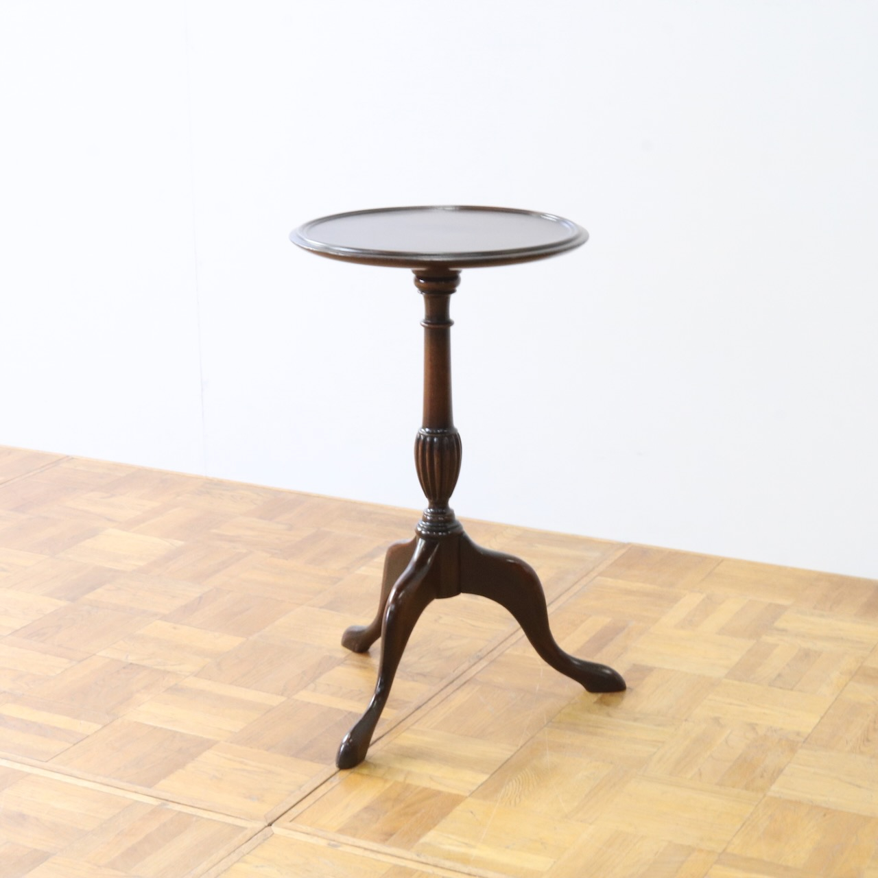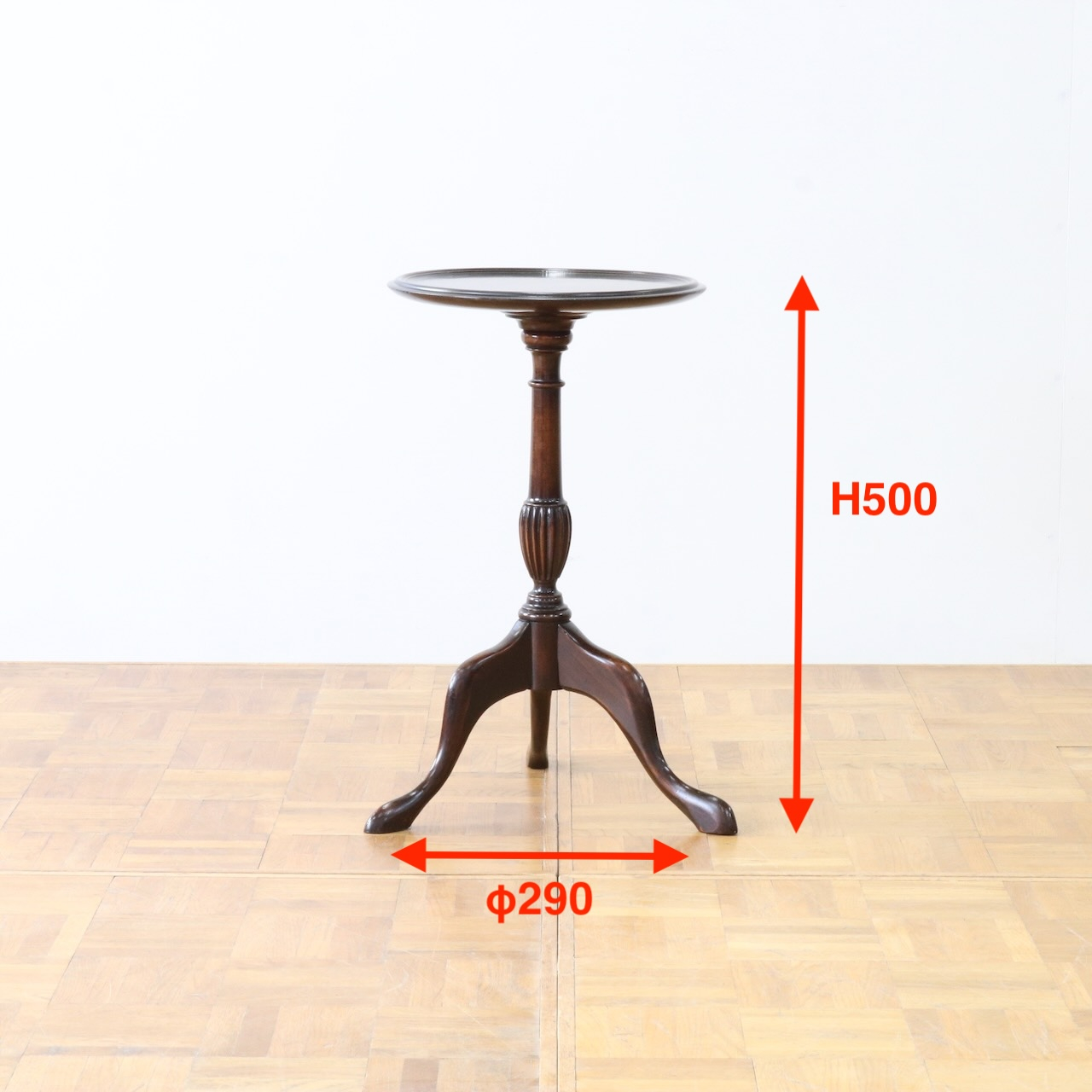 配送料の目安 ▶︎マホガニー材のワインテーブル。装飾を抑えたクラシックなデザインで、どんなインテリアにも合わせやすいのが嬉しいポイントです。小さく軽いので、様々な場所に移動させてお花を飾ったり、ティータイムを楽しんだり、使い方を考えるのも楽しいですね。