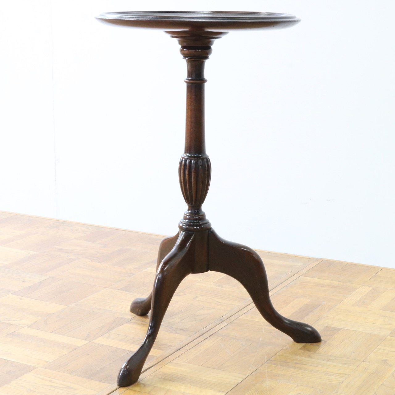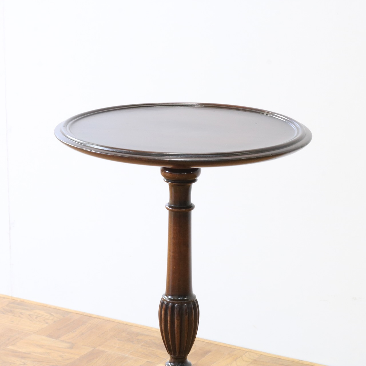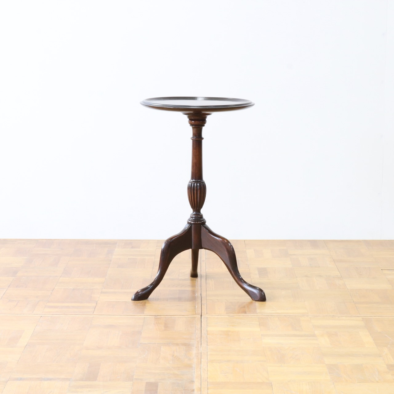 配送料の目安 ▶︎マホガニー材のワインテーブル。装飾を抑えたクラシックなデザインで、どんなインテリアにも合わせやすいのが嬉しいポイントです。小さく軽いので、様々な場所に移動させてお花を飾ったり、ティータイムを楽しんだり、使い方を考えるのも楽しいですね。