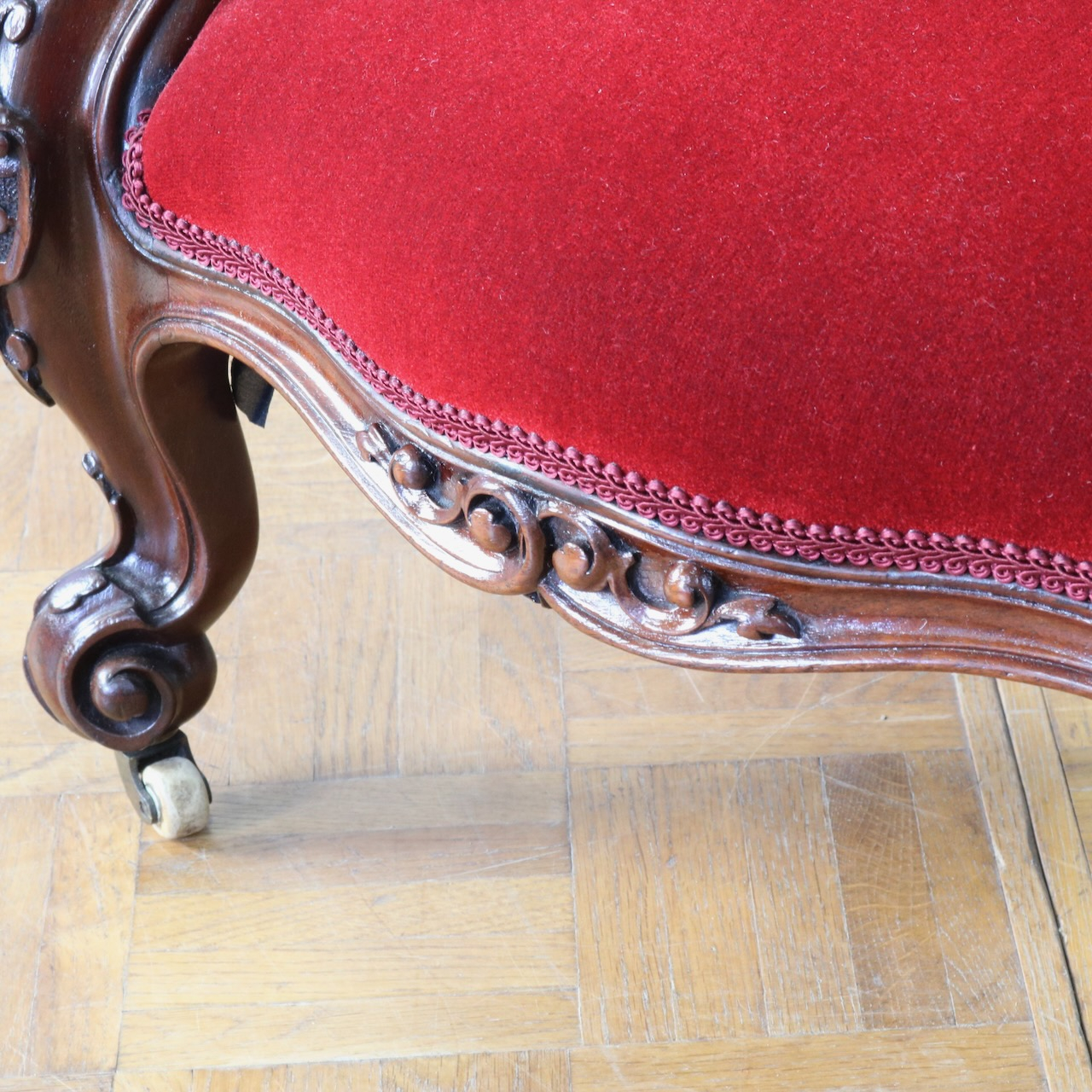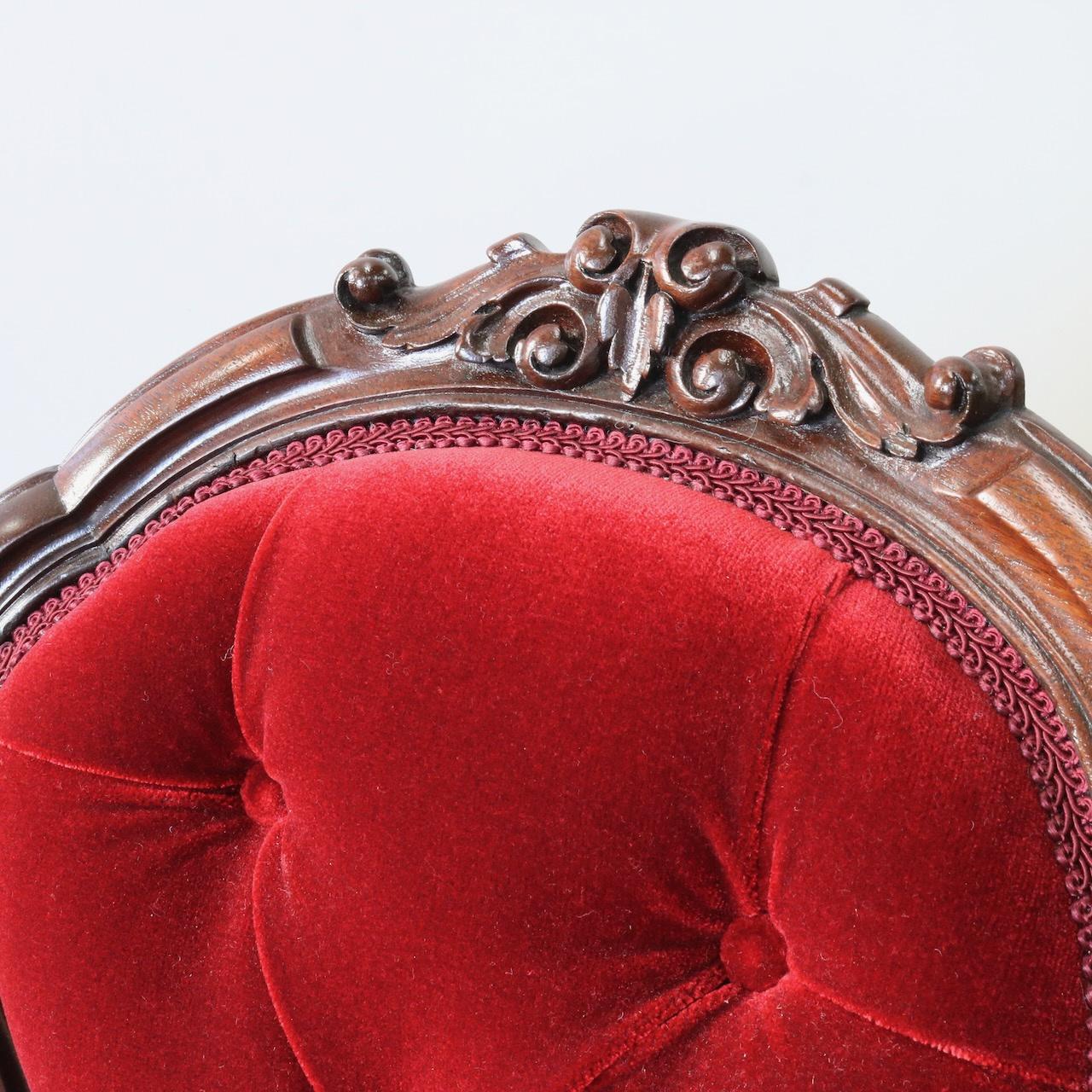 生地はクラシカルな赤色。深みのある、濃淡が鮮やかに映えるベロア生地です。