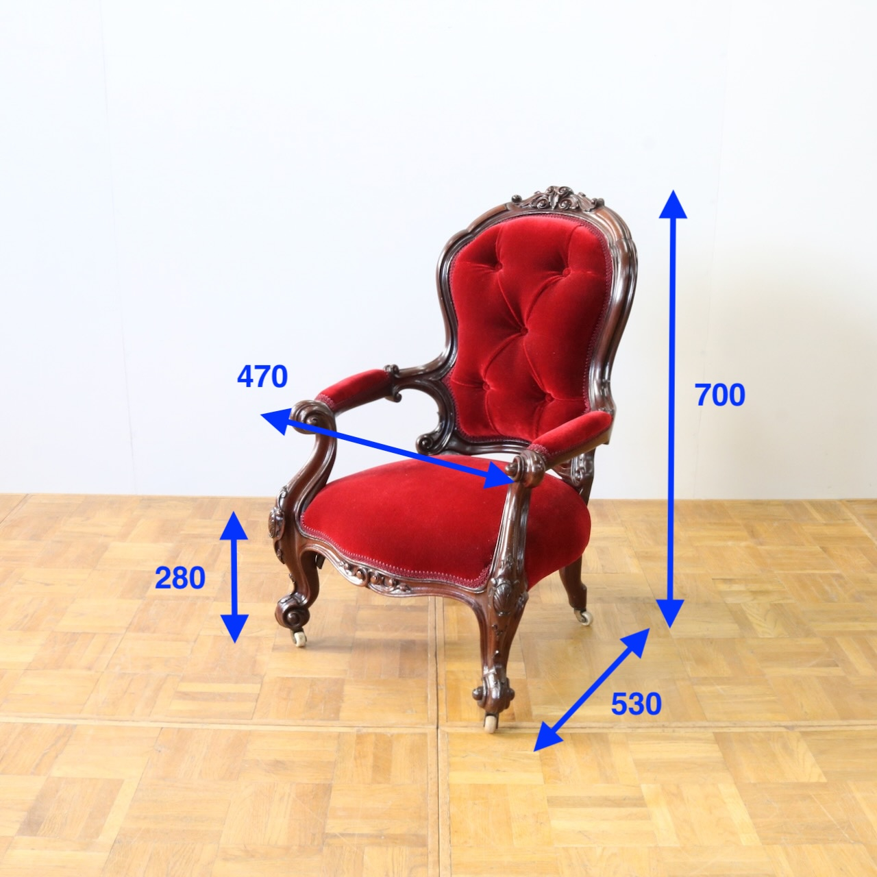 配送料の目安 ▶︎1890年代、マホガニーのイージーチェアーは、当時ディスプレイサンプルとして使用されていたもので、スモールサイズで製作されています。