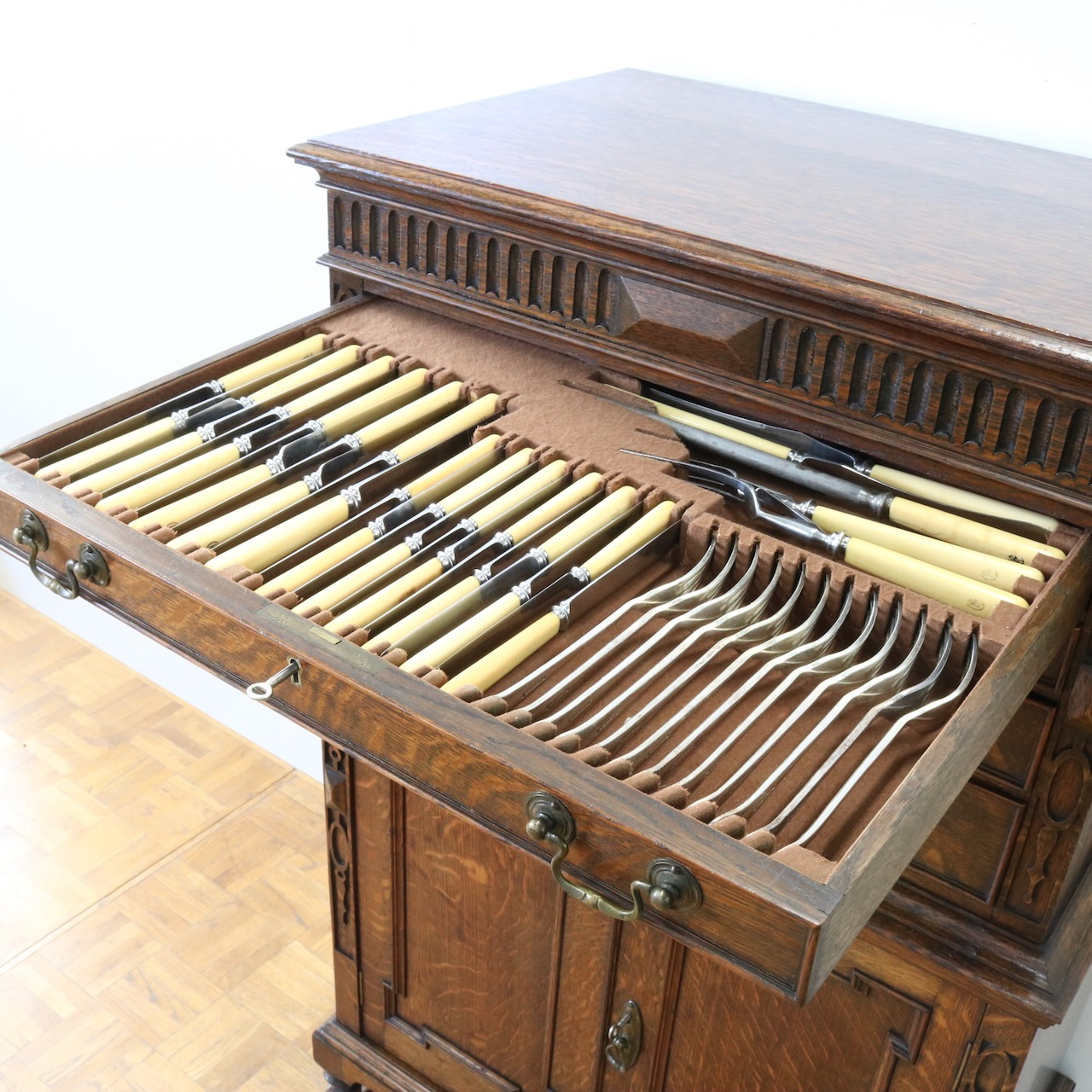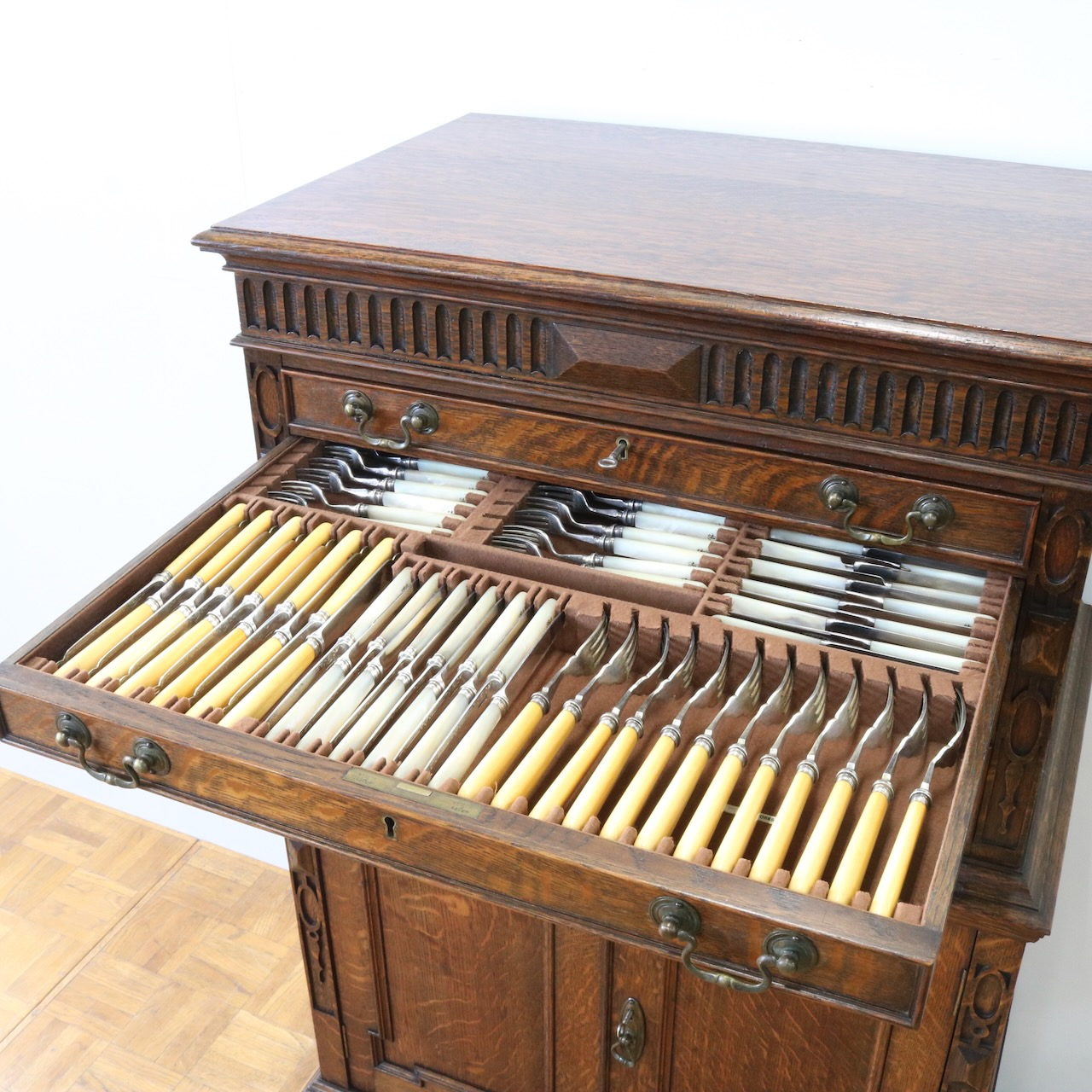 配送料の目安 ▶︎カトラリーを収納するために製作された、チェストになります。上部の引き出しには当時のカトラリーがビッシリと収納されています。