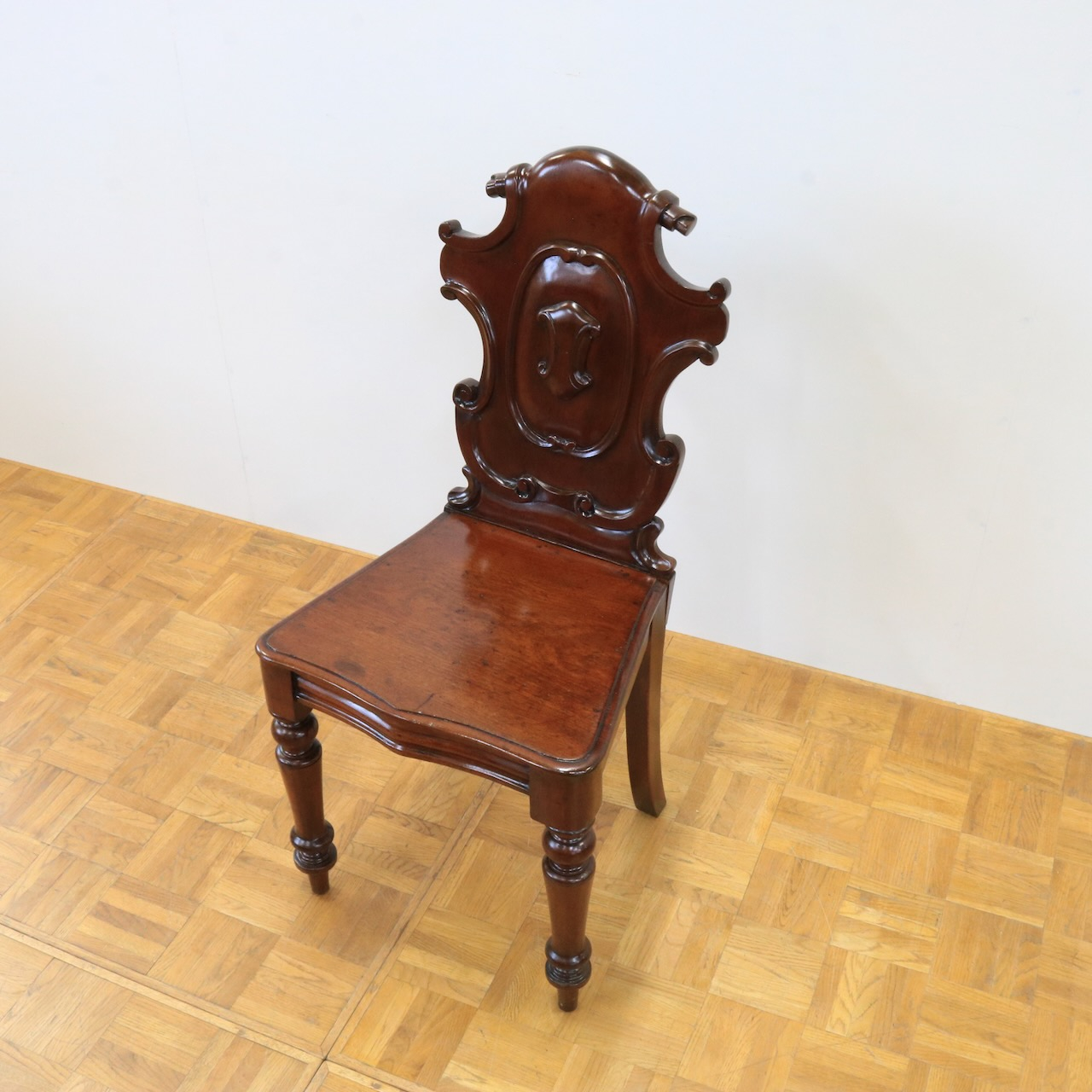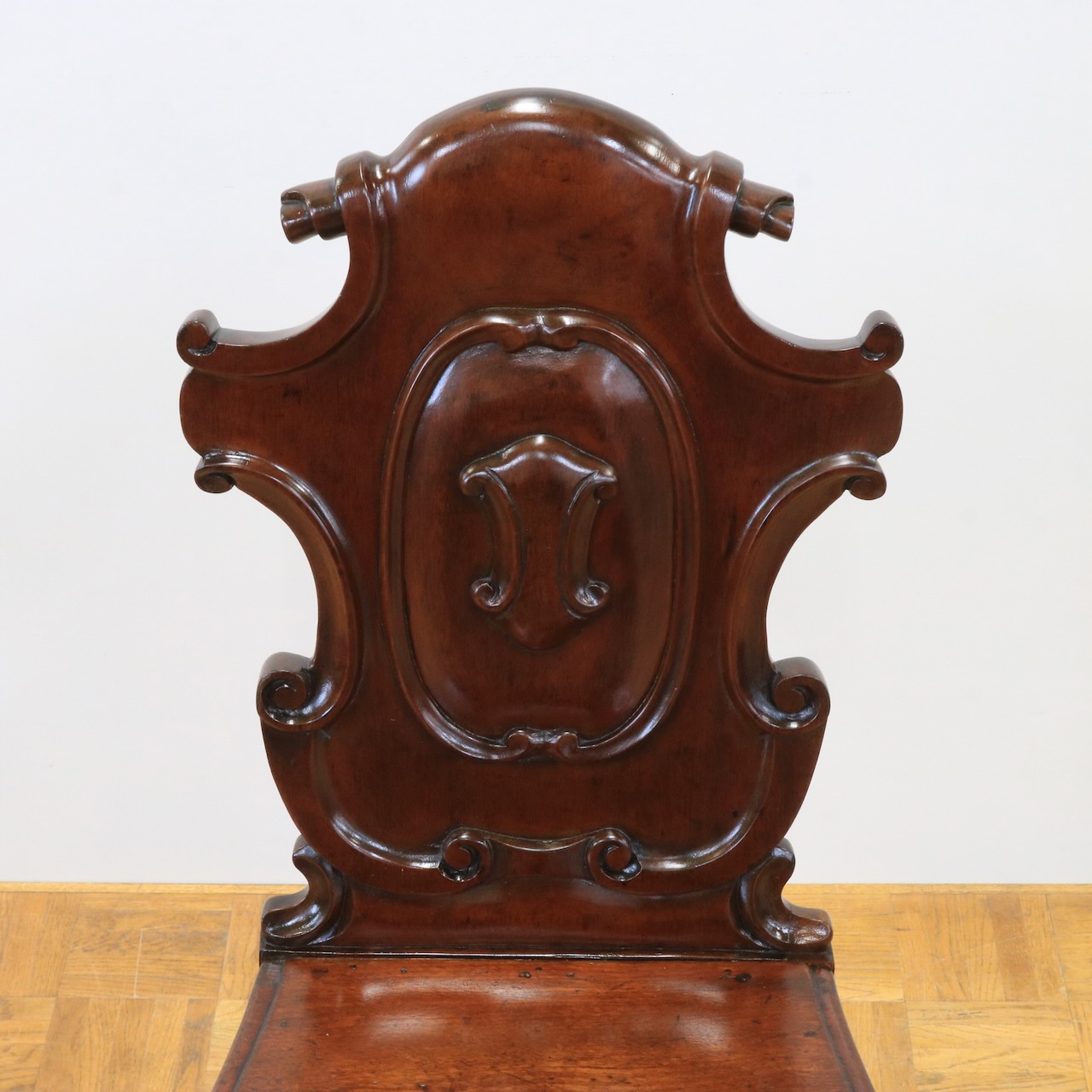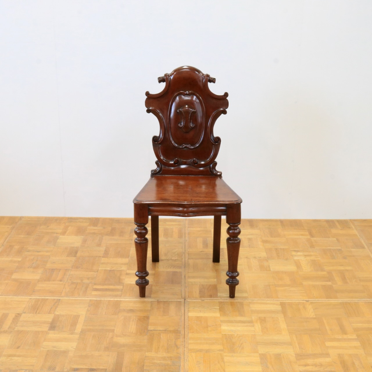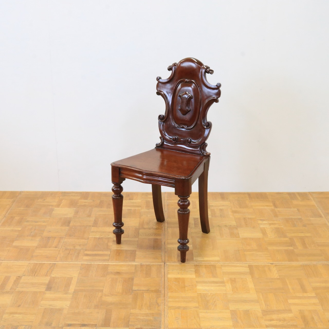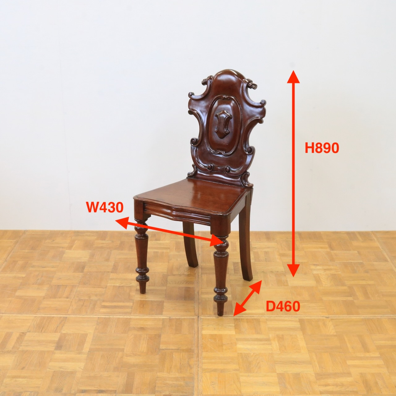 配送料の目安 ▶︎1890年代、ヴィクトリアンのホールチェアー。カルトゥーシュのデザインが背もたれに入ったこれぞヴィクトリアン!のホールチェアーです。玄関に置いたりベッドサイドでもテーブル兼用のチェアーとして重宝しそうです。