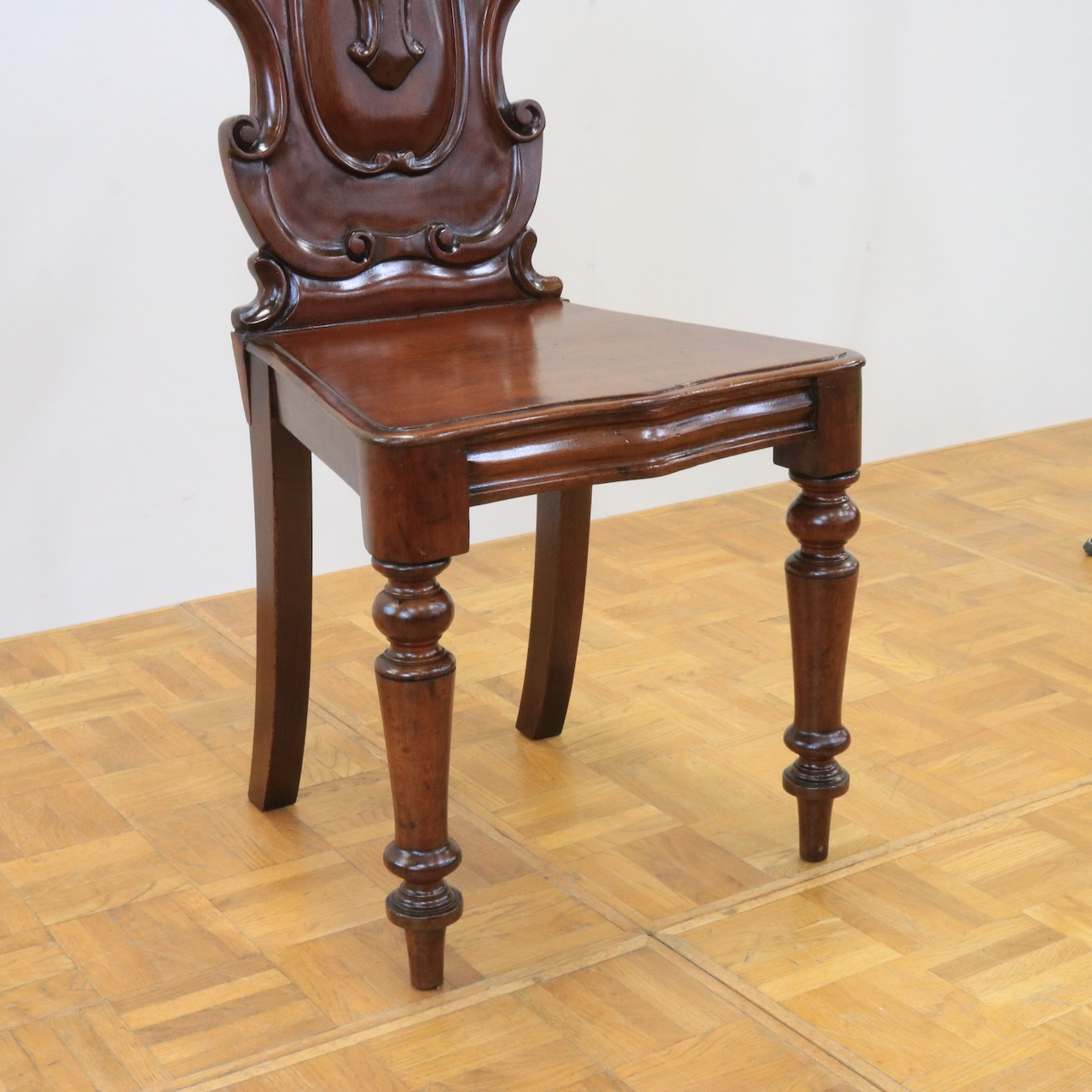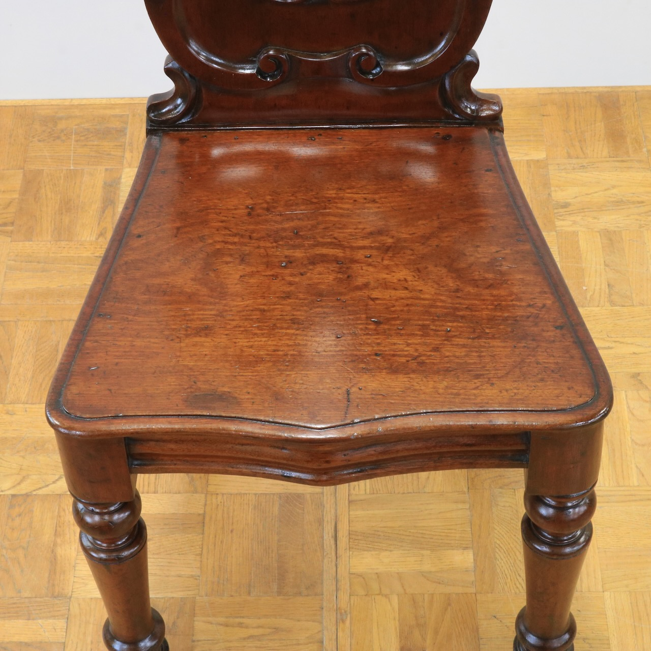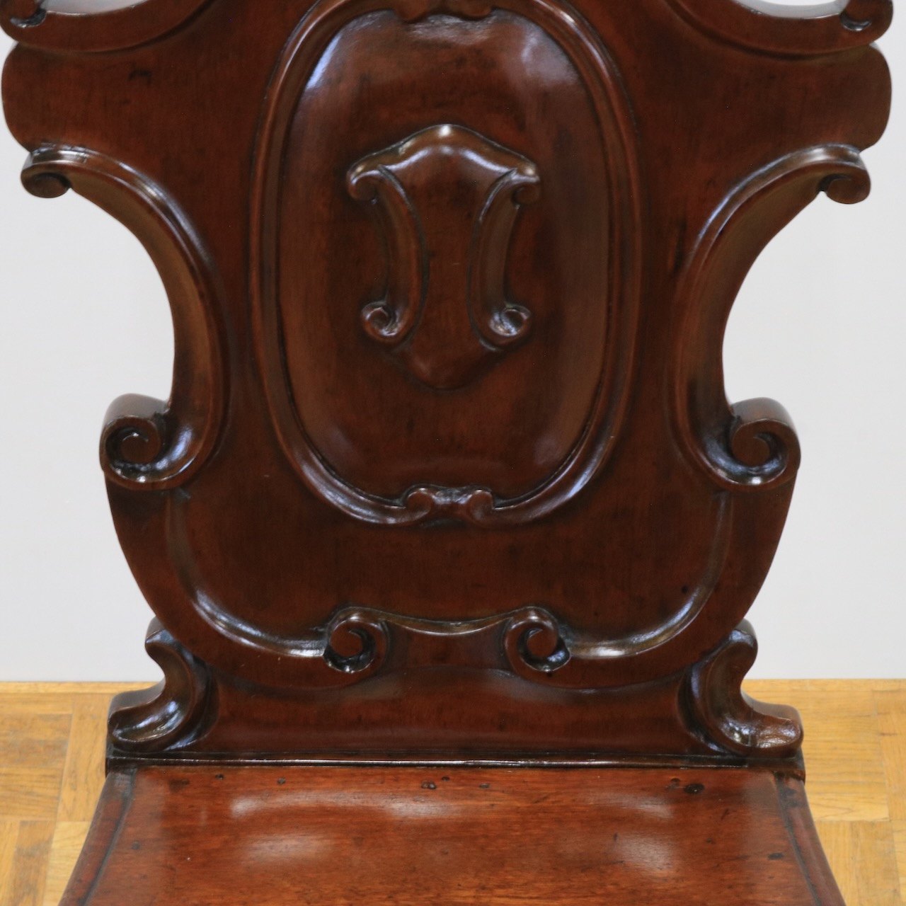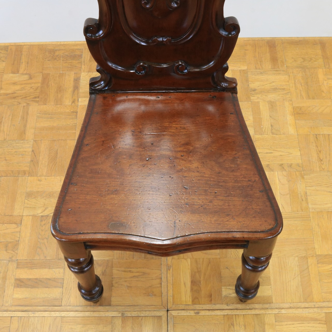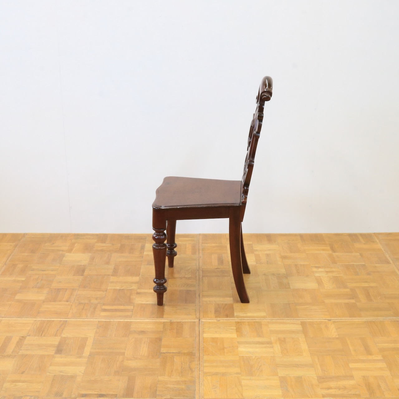 配送料の目安 ▶︎1890年代、ヴィクトリアンのホールチェアー。カルトゥーシュのデザインが背もたれに入ったこれぞヴィクトリアン!のホールチェアーです。玄関に置いたりベッドサイドでもテーブル兼用のチェアーとして重宝しそうです。