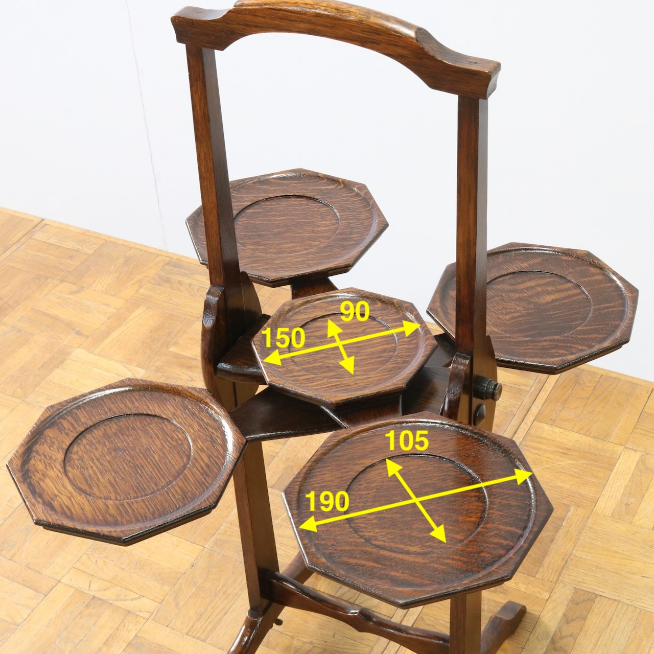 配送料の目安 ▶︎1930年代、オーク材のケーキスタンド。5枚の八角形の天板が開く珍しい仕様。アフタヌーンティーを演出する家具として、小物のディスプレイスタンドとしてなど様々に活躍するアイテムです。