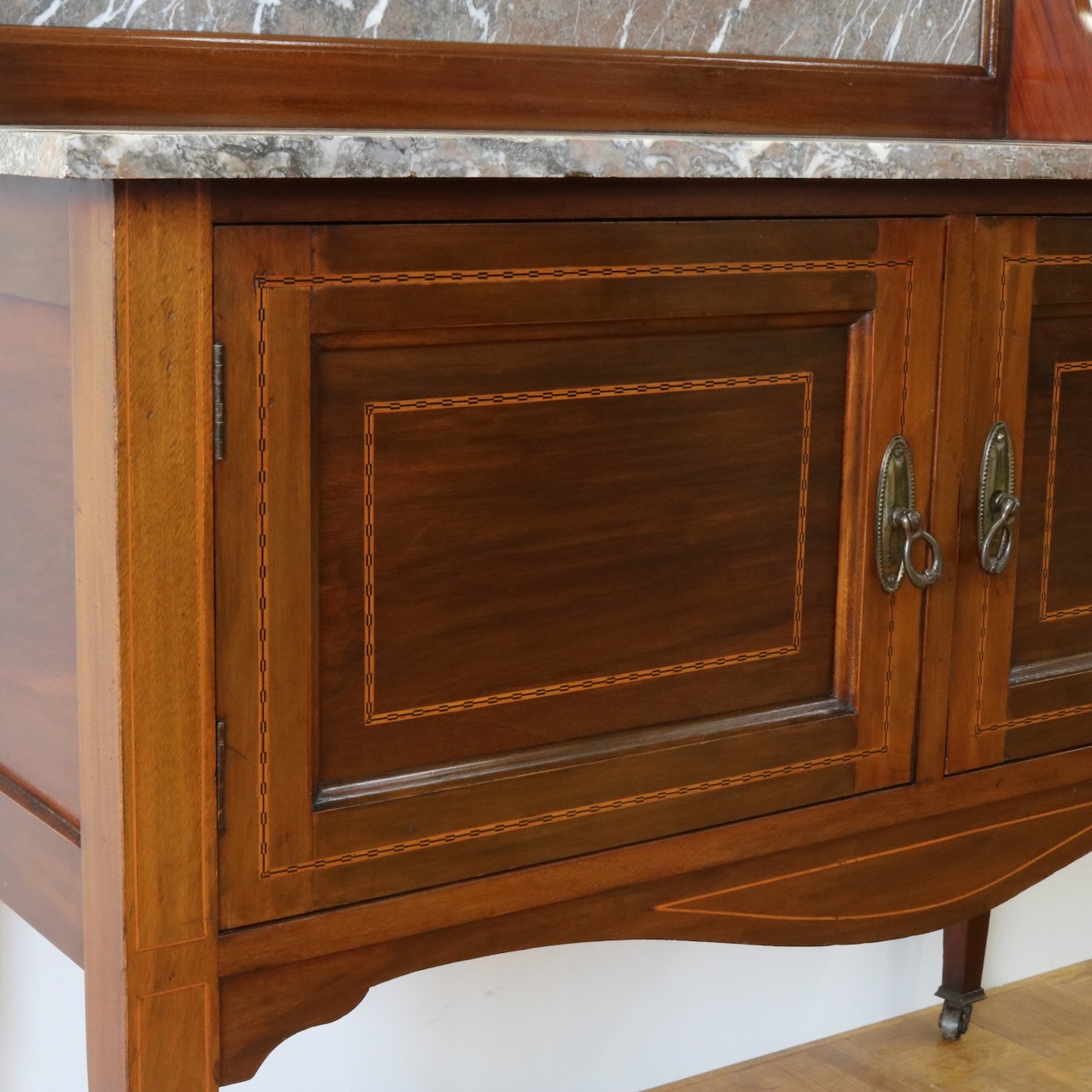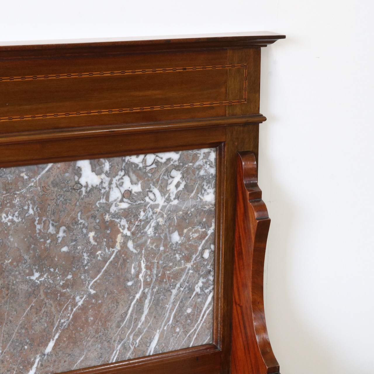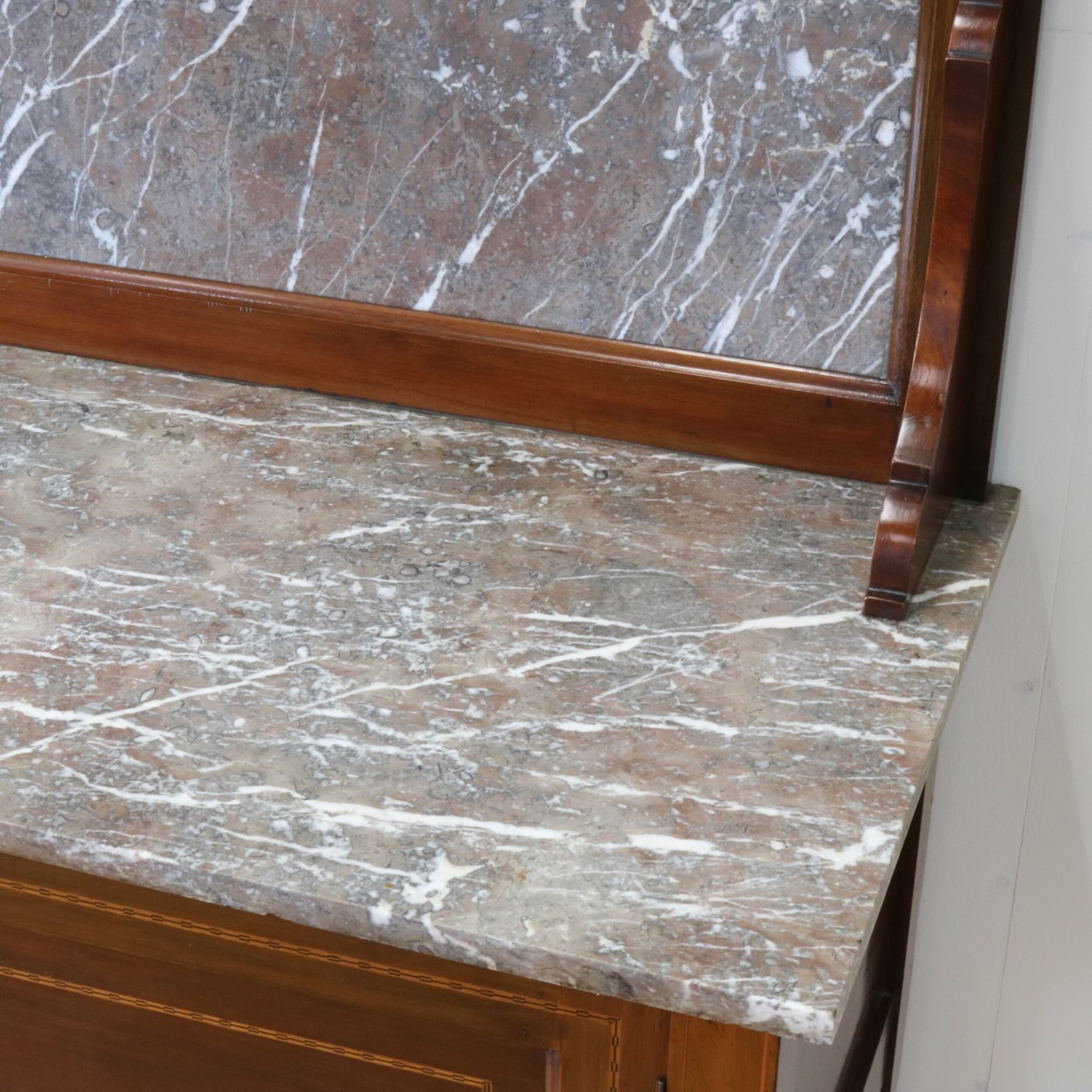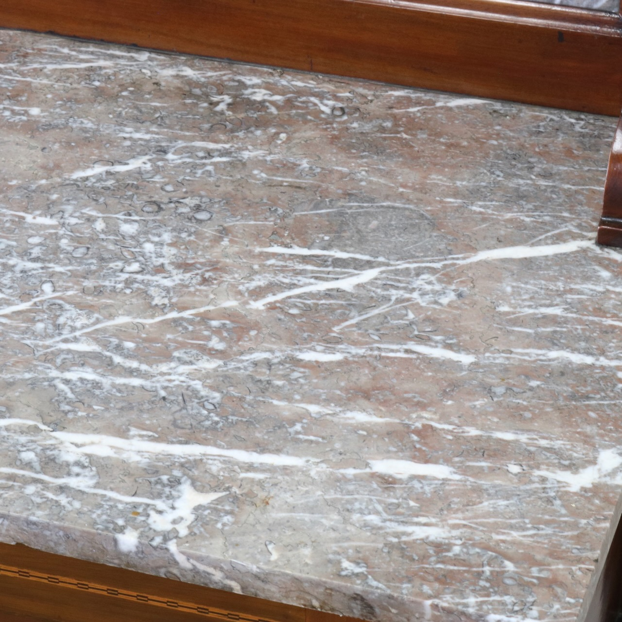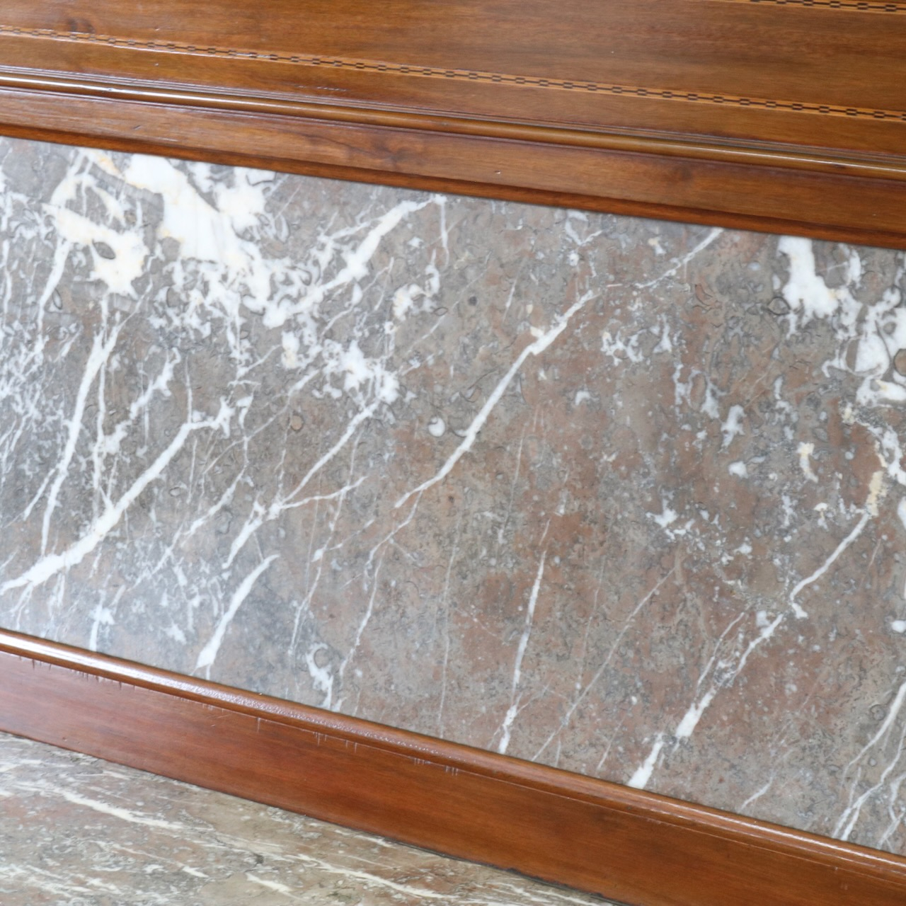 赤系の大理石の状態は良く、シンプルなインレイ細工が洗練された印象を与えます。
