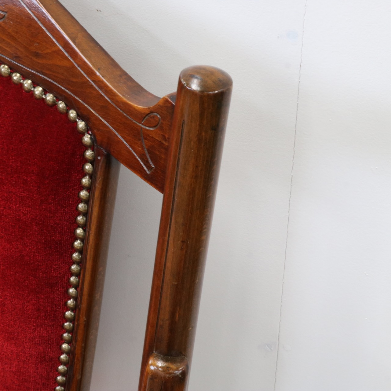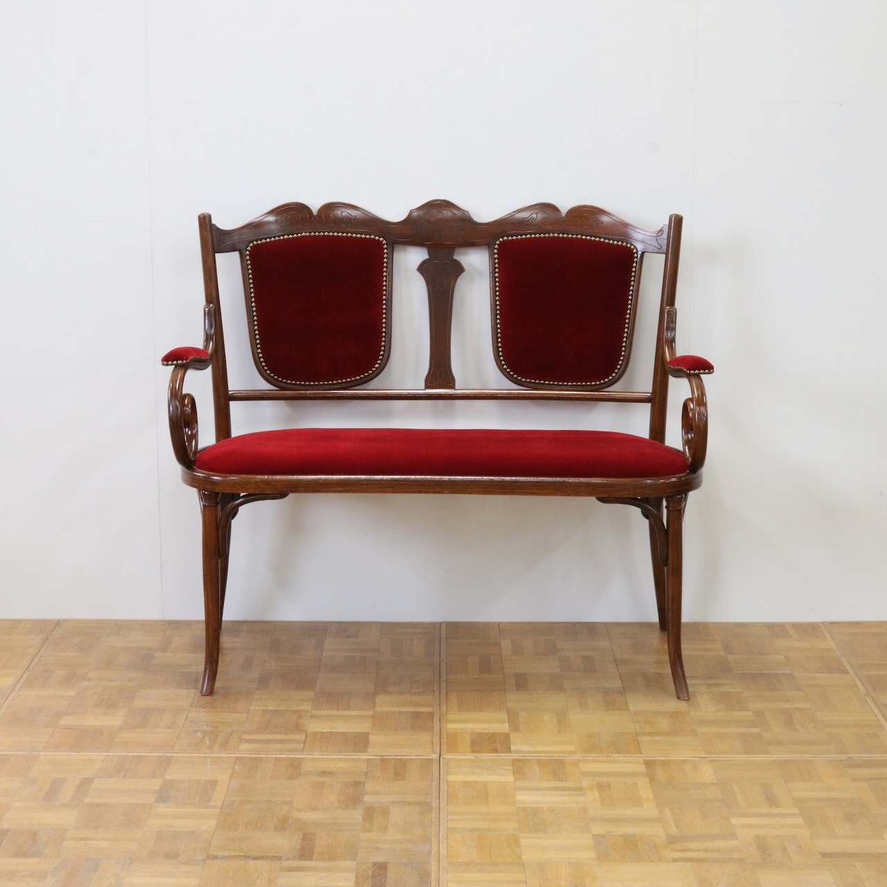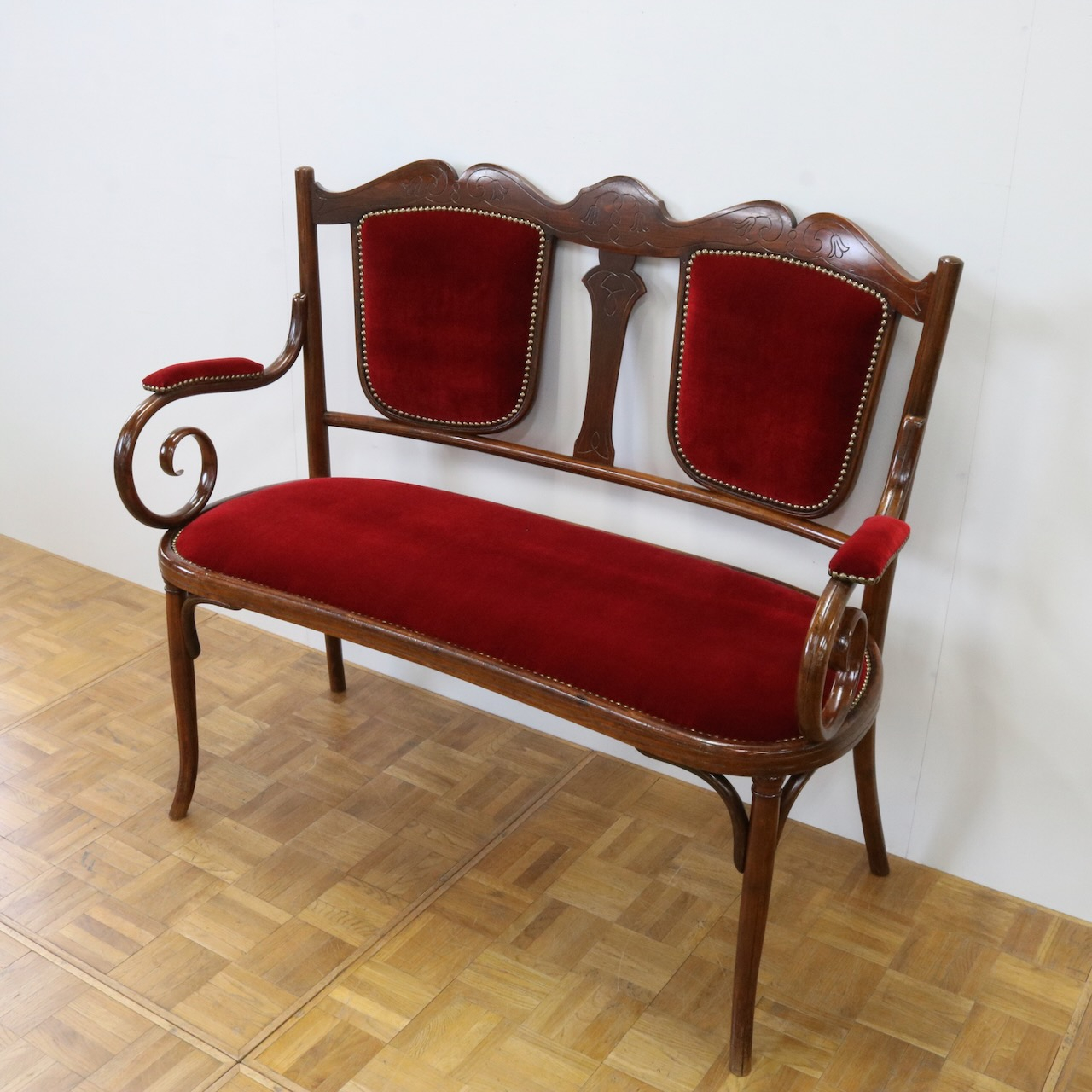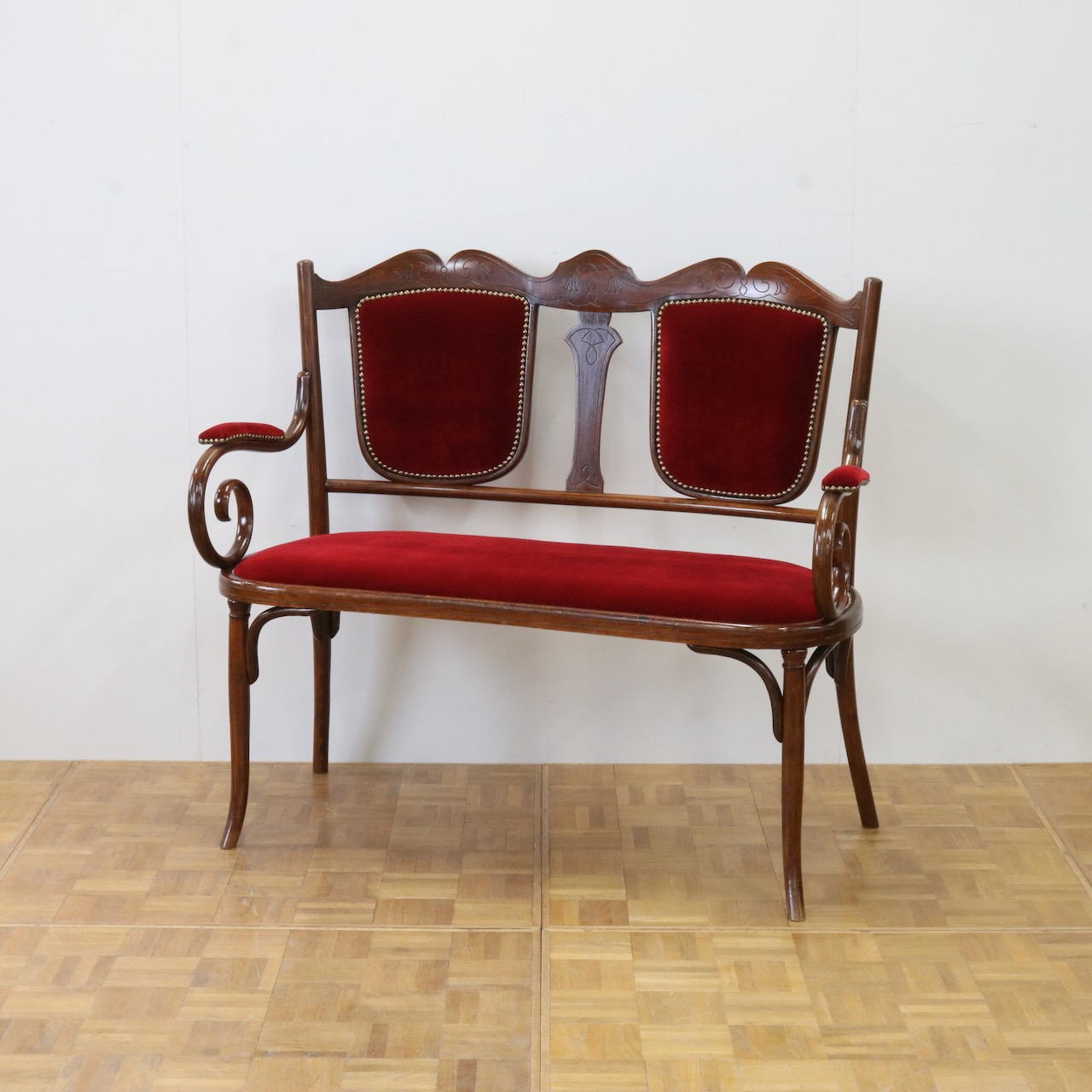 深い赤のベロア生地に鈍く輝く真鍮色の鋲がクラシカルな雰囲気をより高めてくれます。