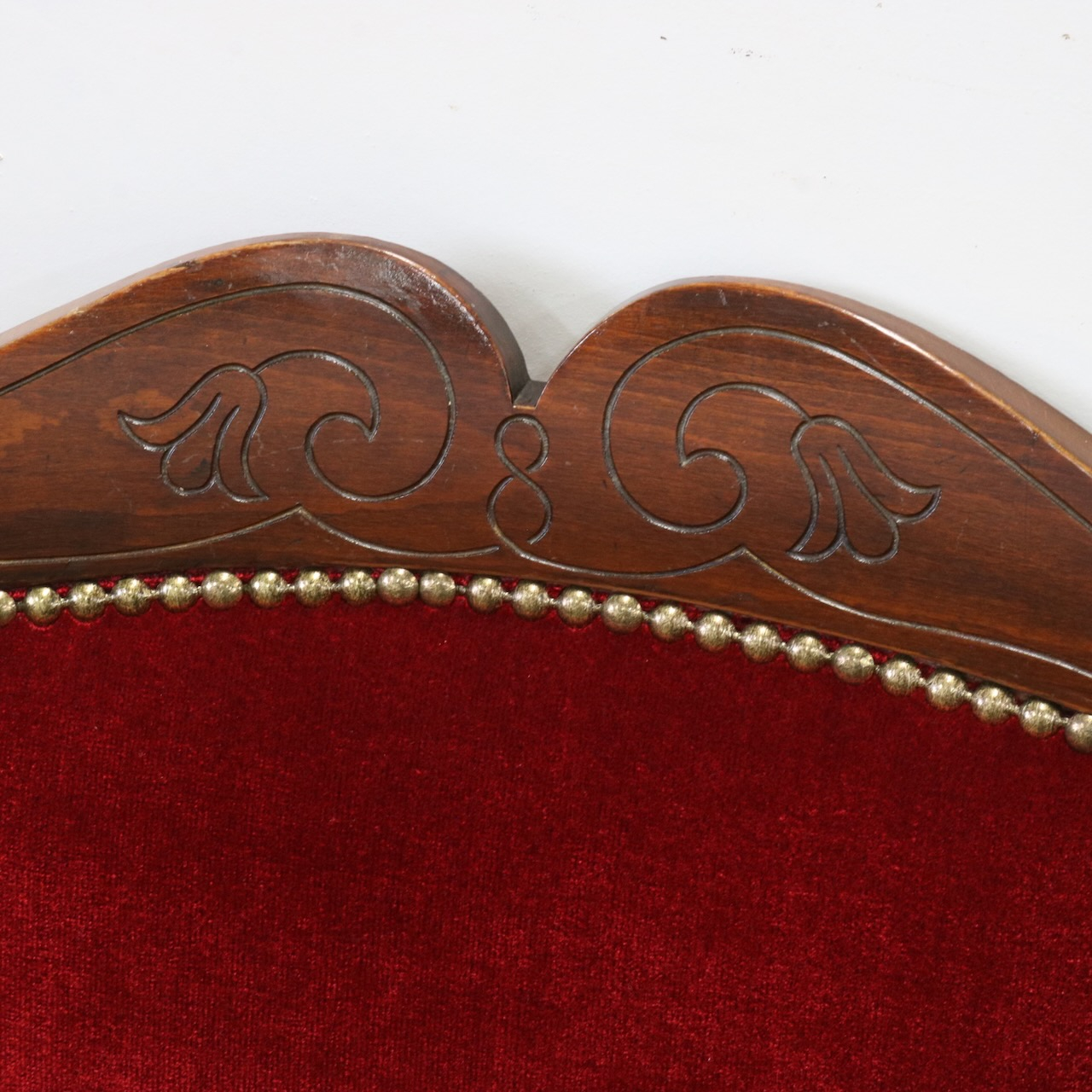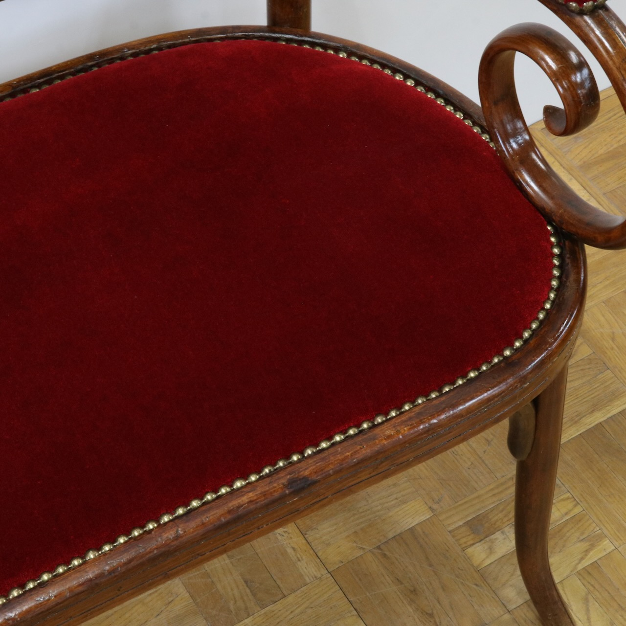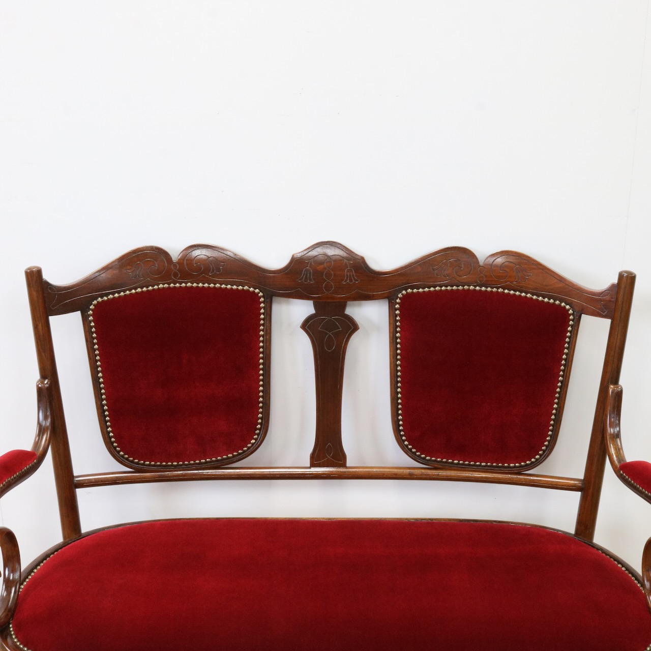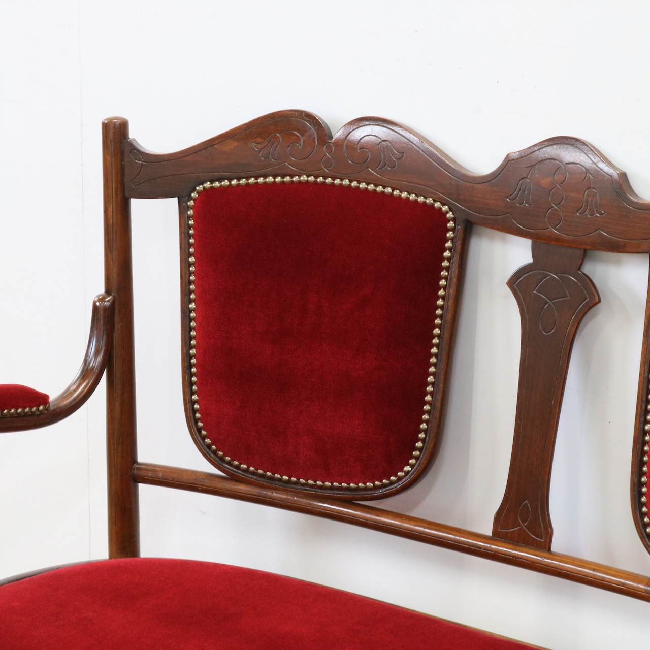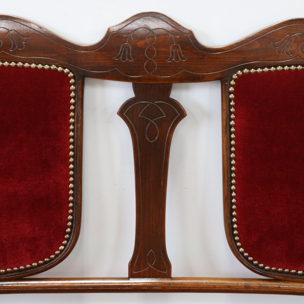 深い赤のベロア生地に鈍く輝く真鍮色の鋲がクラシカルな雰囲気をより高めてくれます。