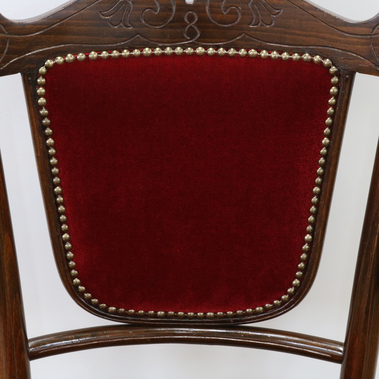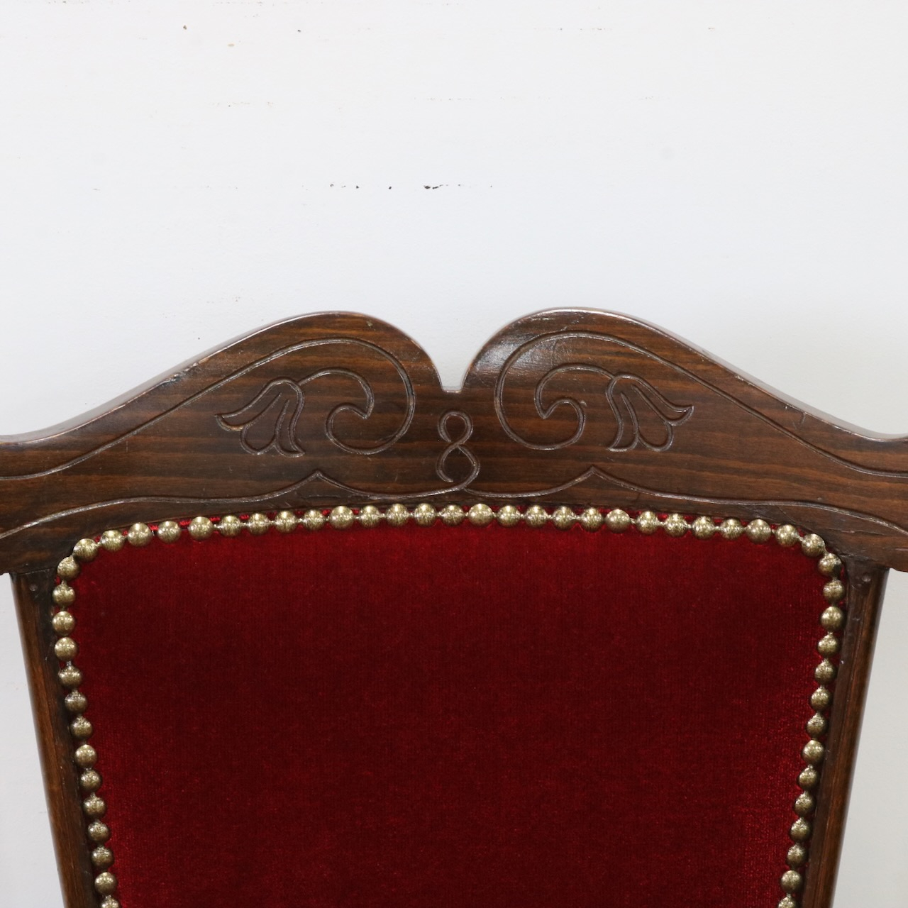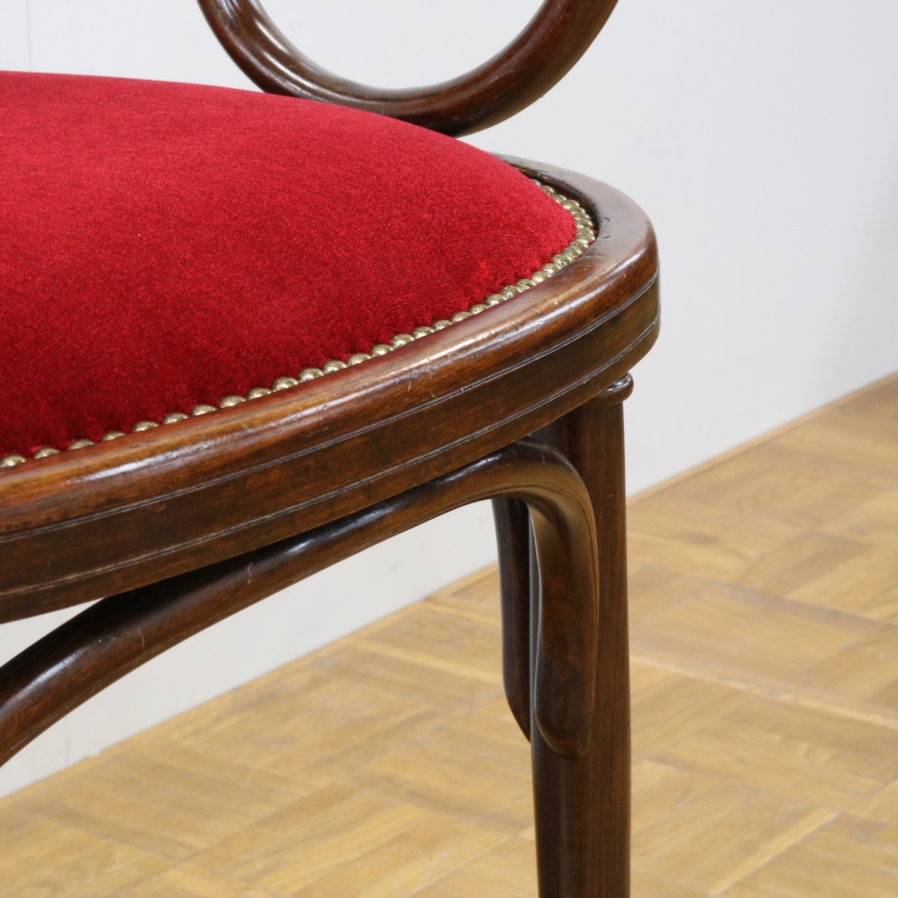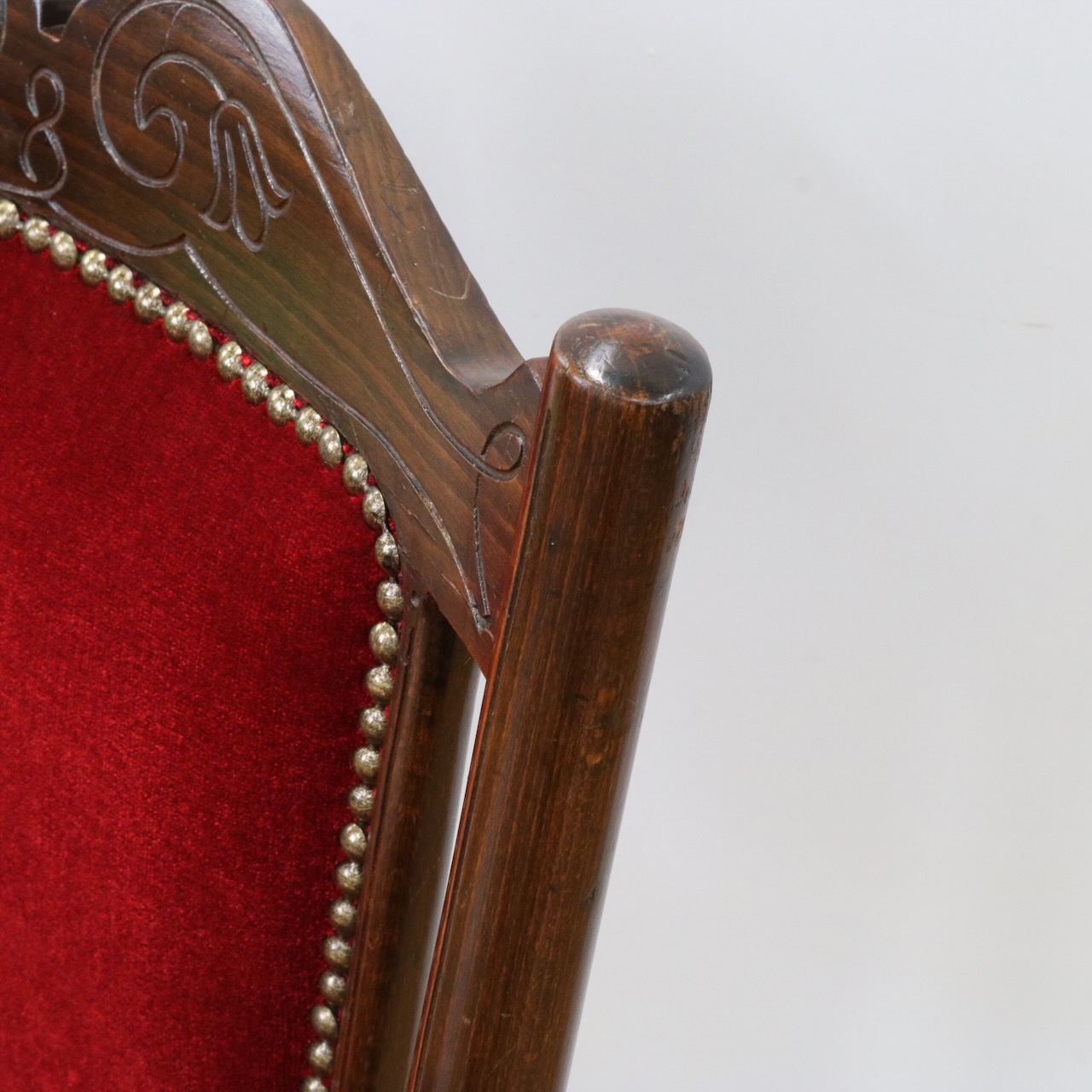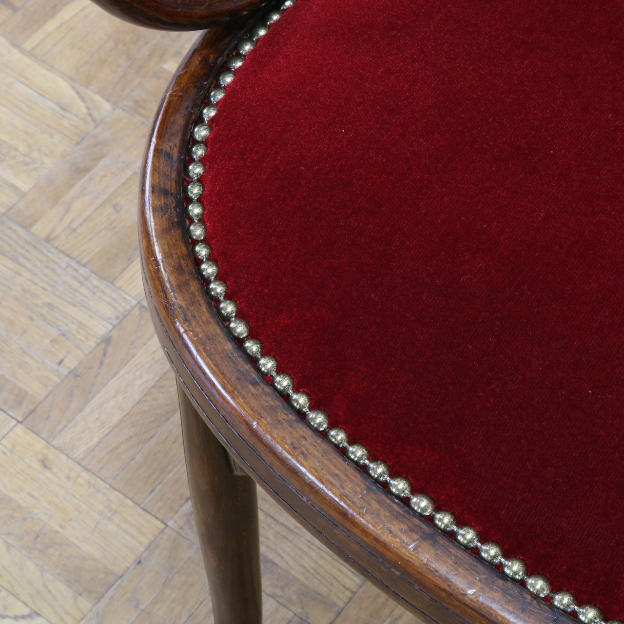 深い赤色のベロア生地を用い、鋲止めで仕上げているのも相まってクラシカルな佇まいです。