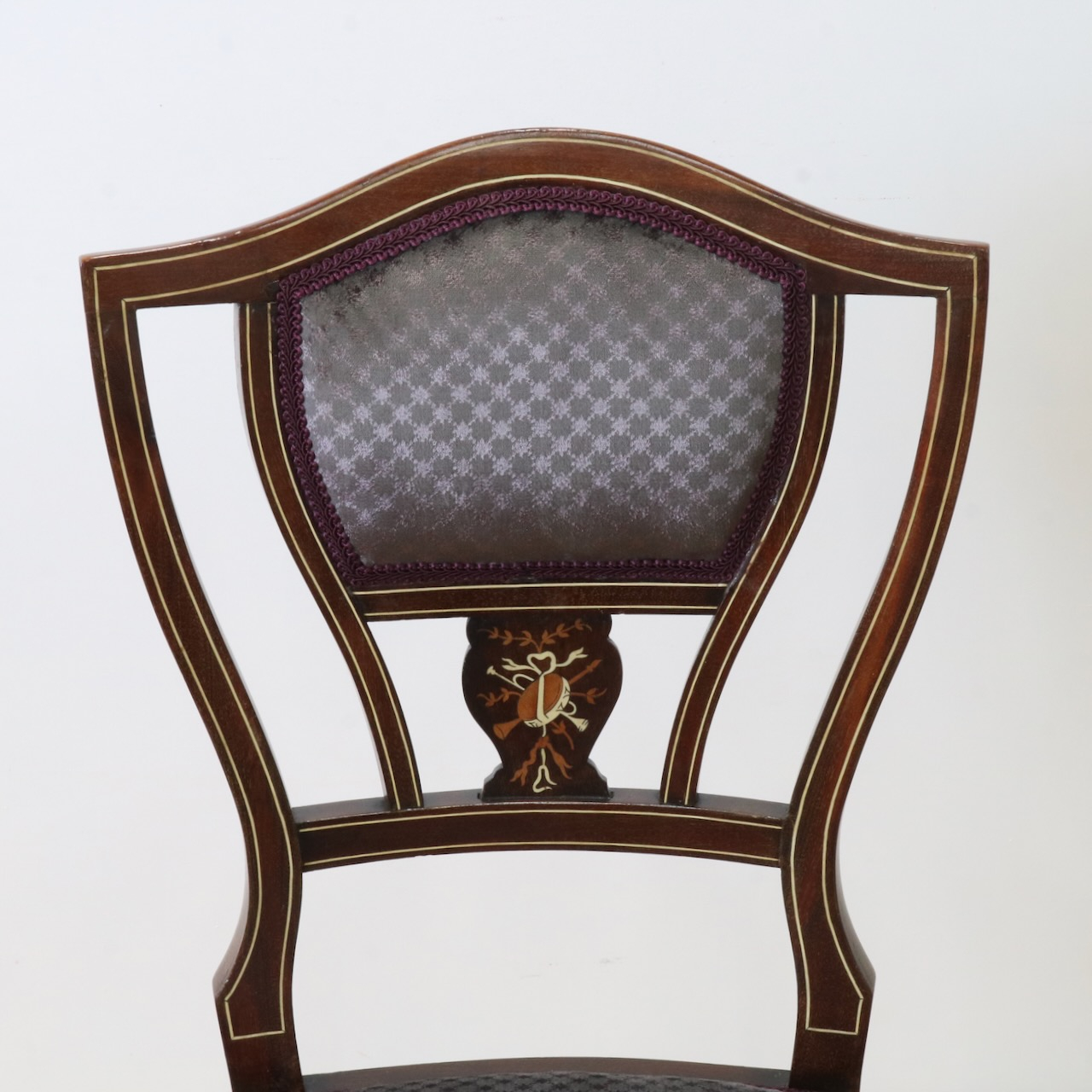 背もたれから足に至るまで、木部にはインレイが施されております。