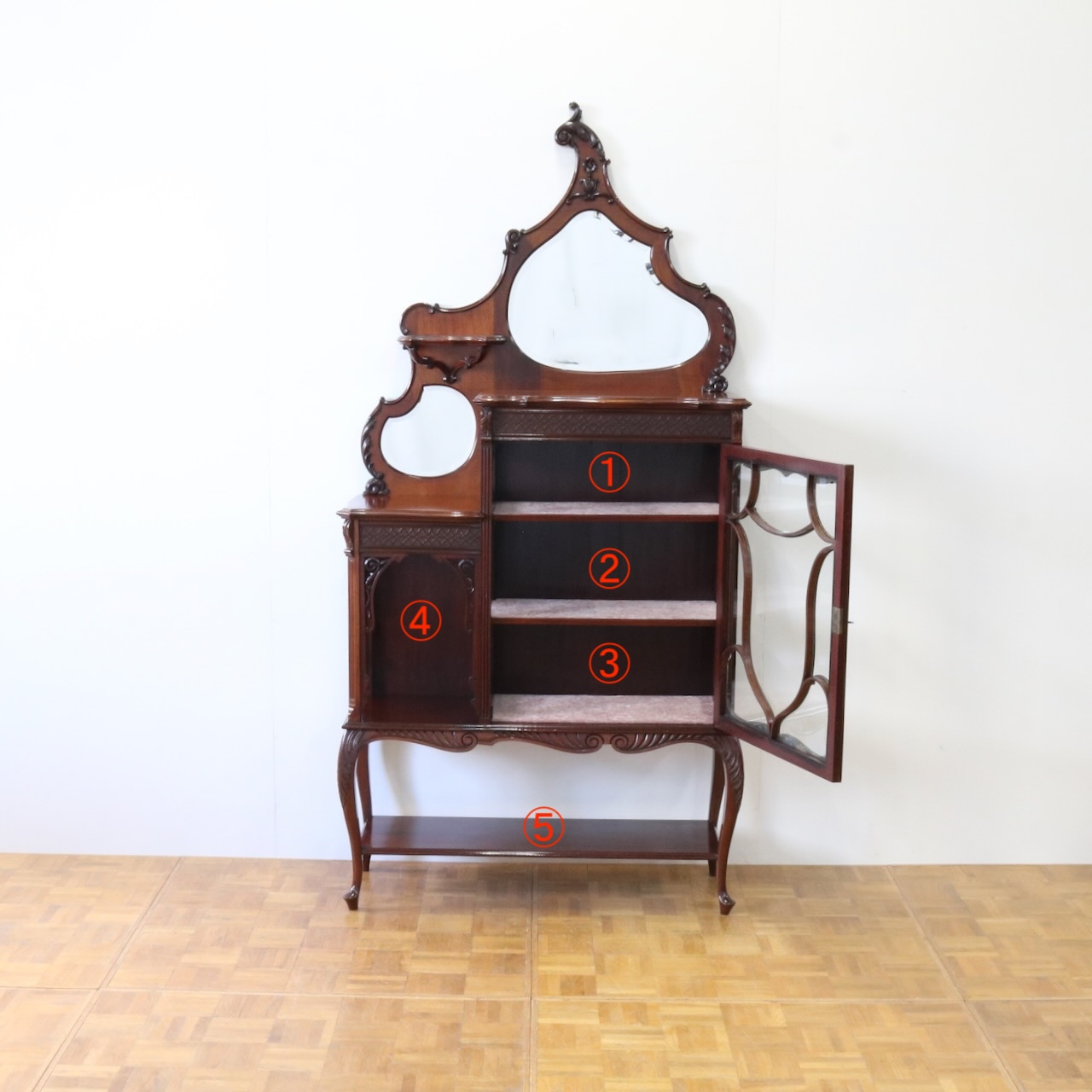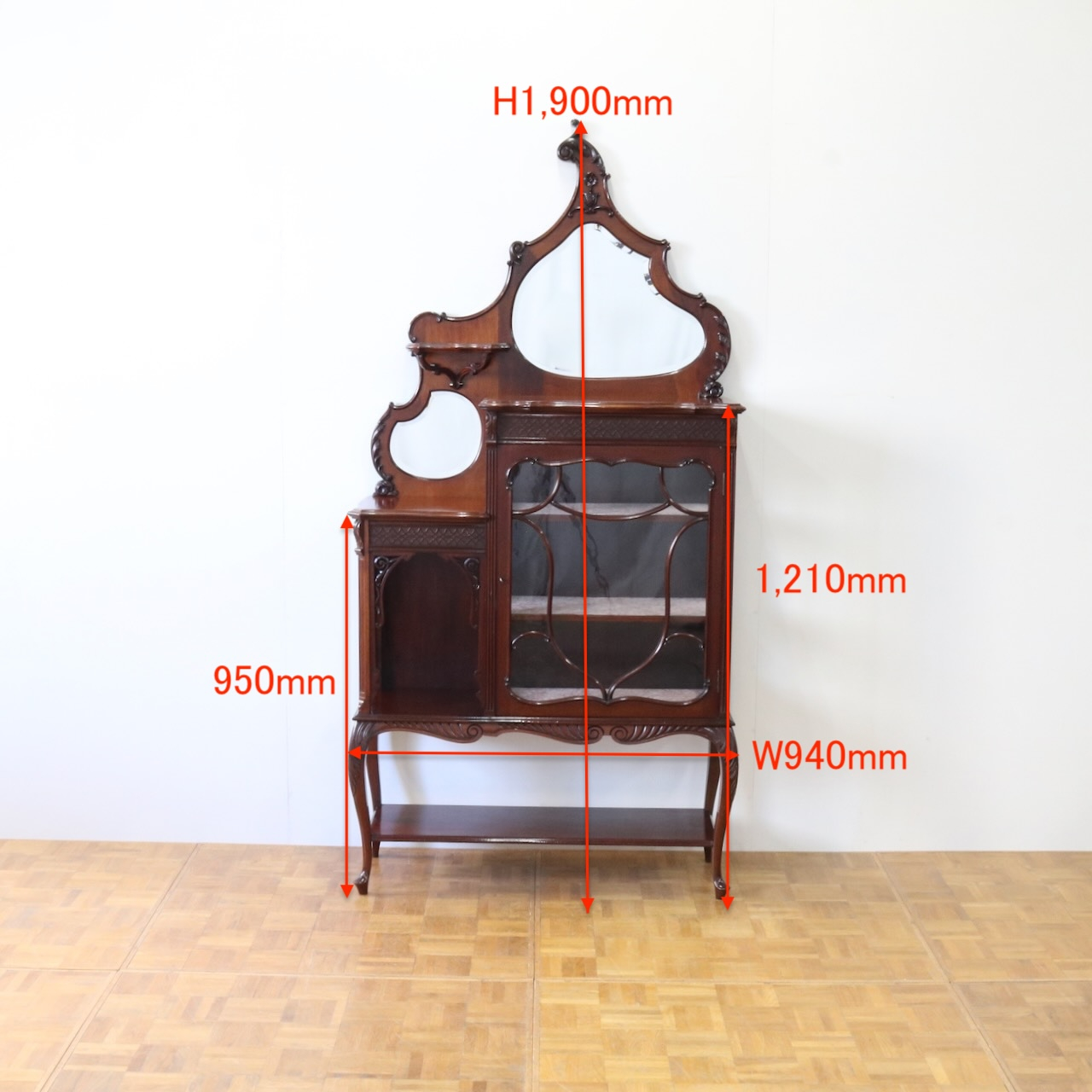 配送料の目安 ▶︎1910年代、マホガニーのグラスキャビネット。