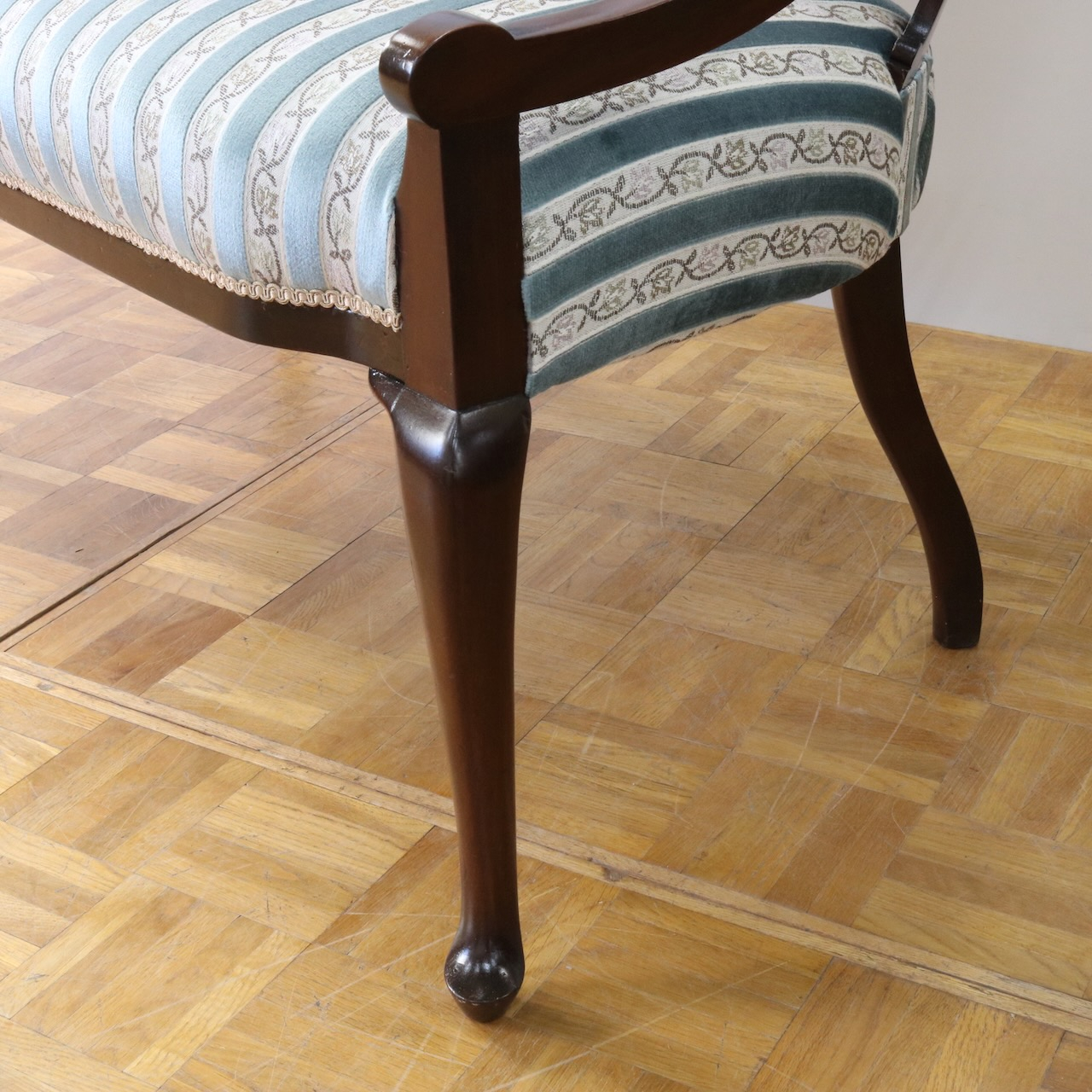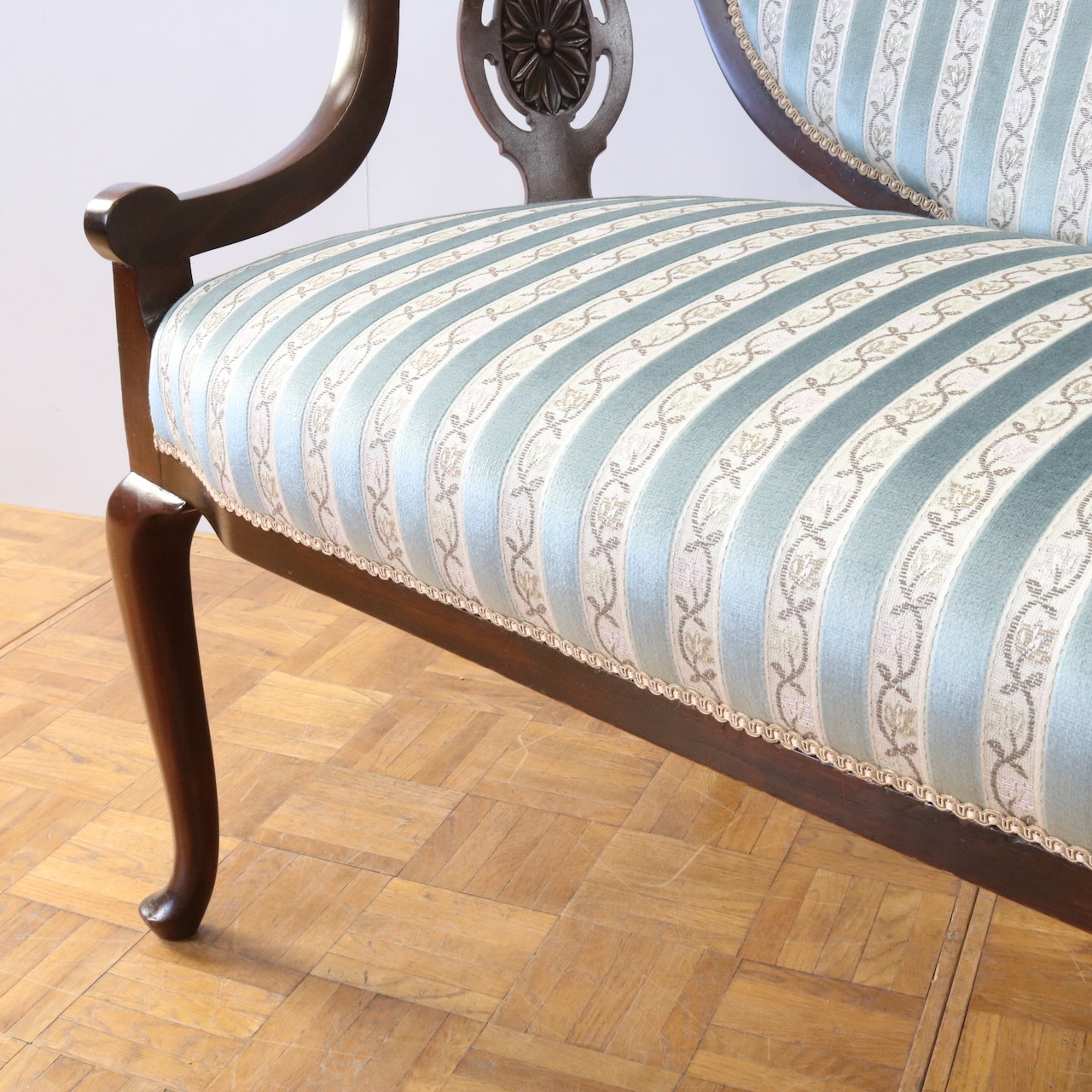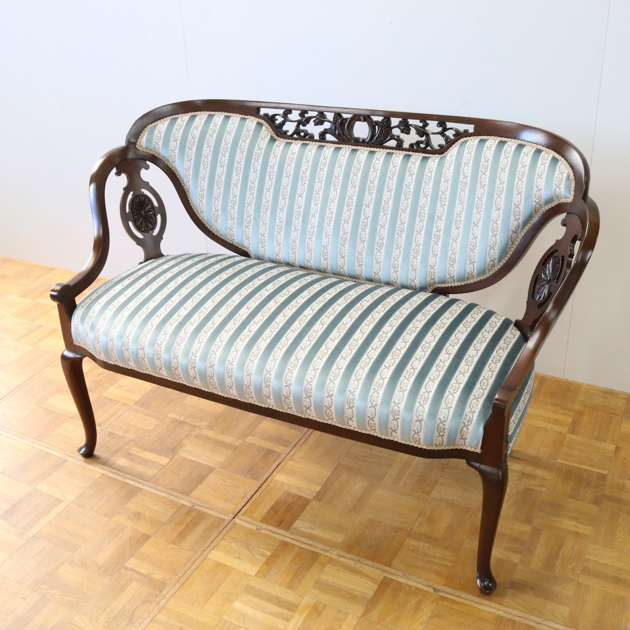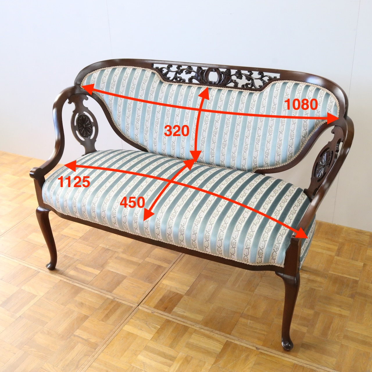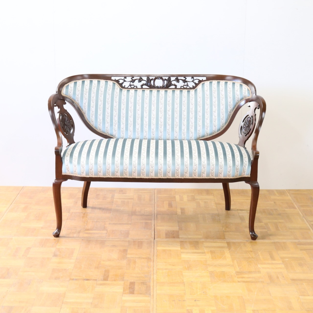 配送料の目安 ▶︎1910年代、マホガニー材のフレームで製作されたセティー。サイズも小振りでお部屋のアクセントになる二人掛けラブソファーです。