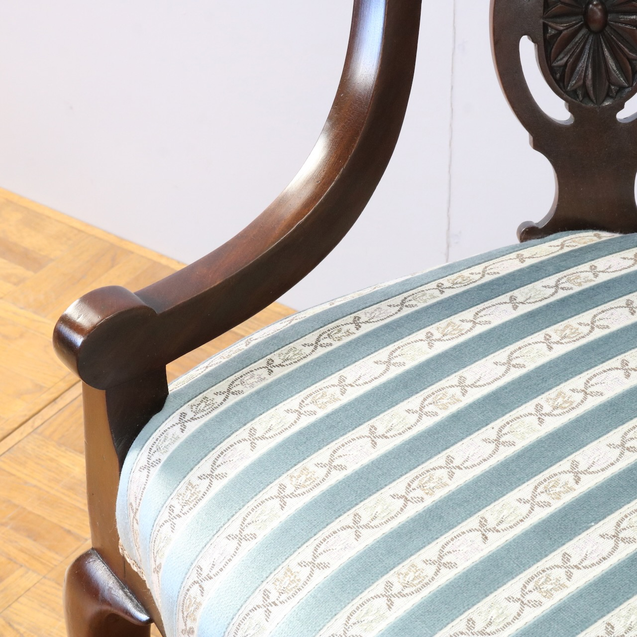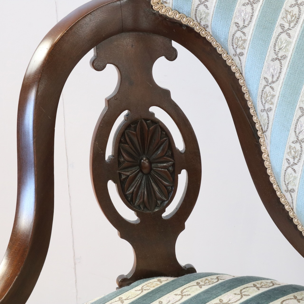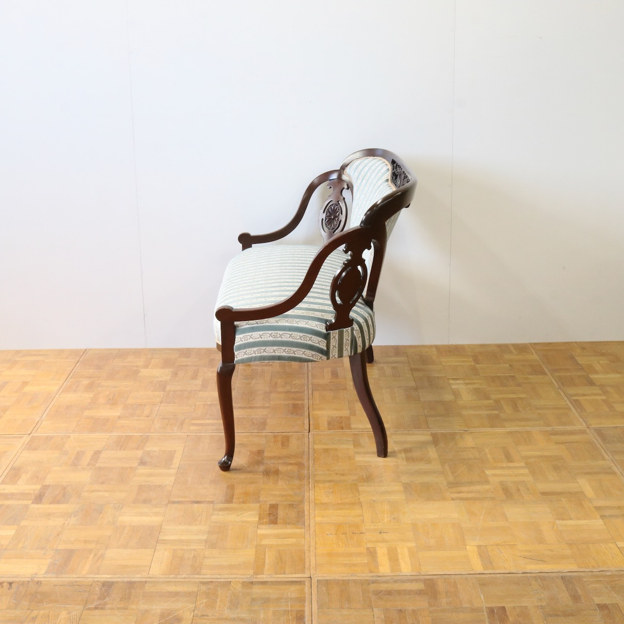背もたれの透かしやアームにかけての滑らかなラインが優美な一品。
