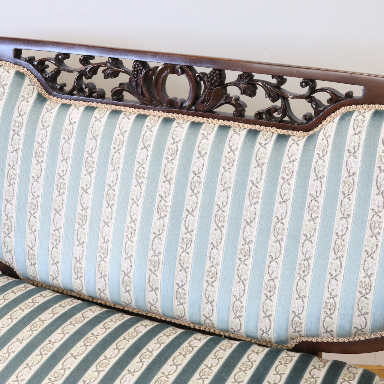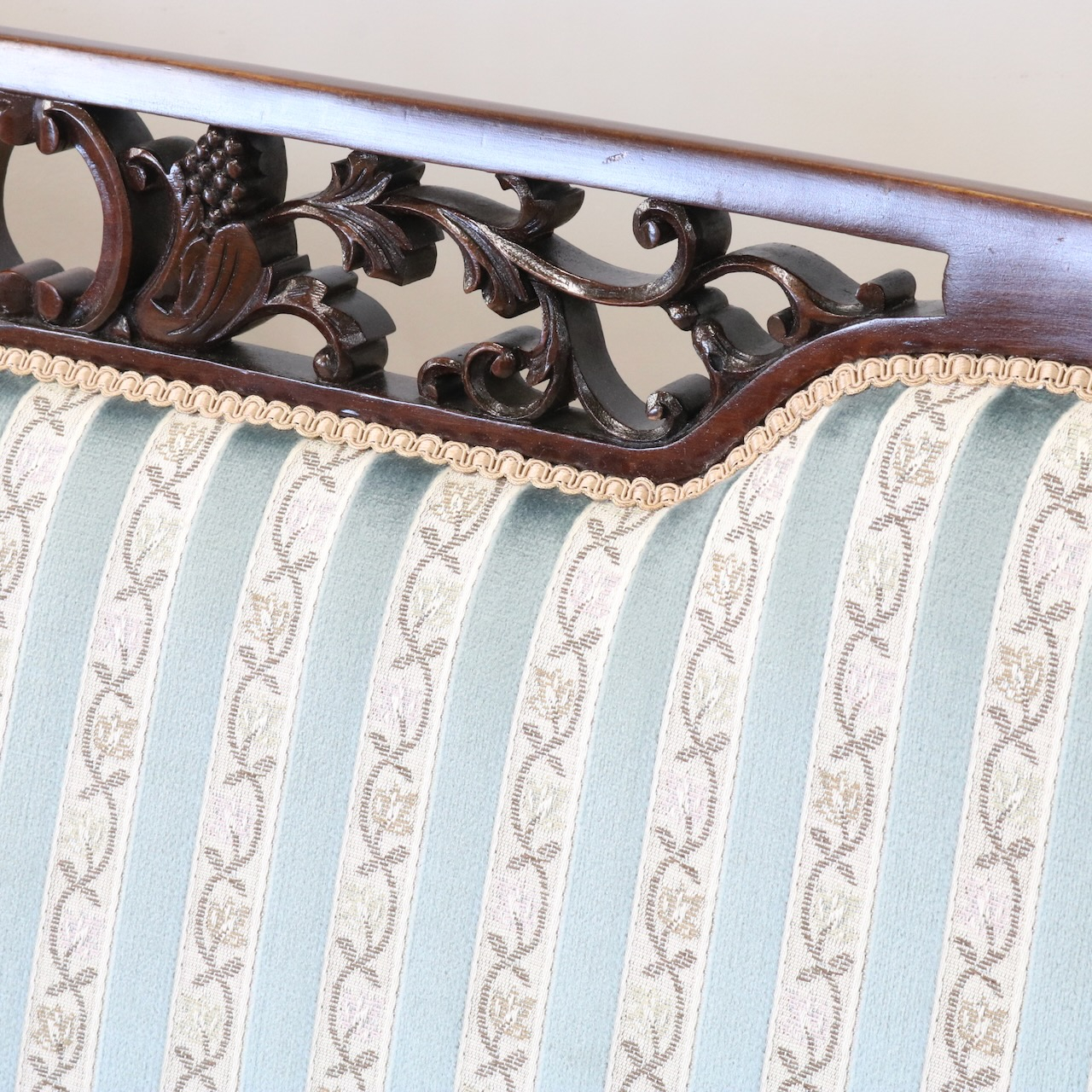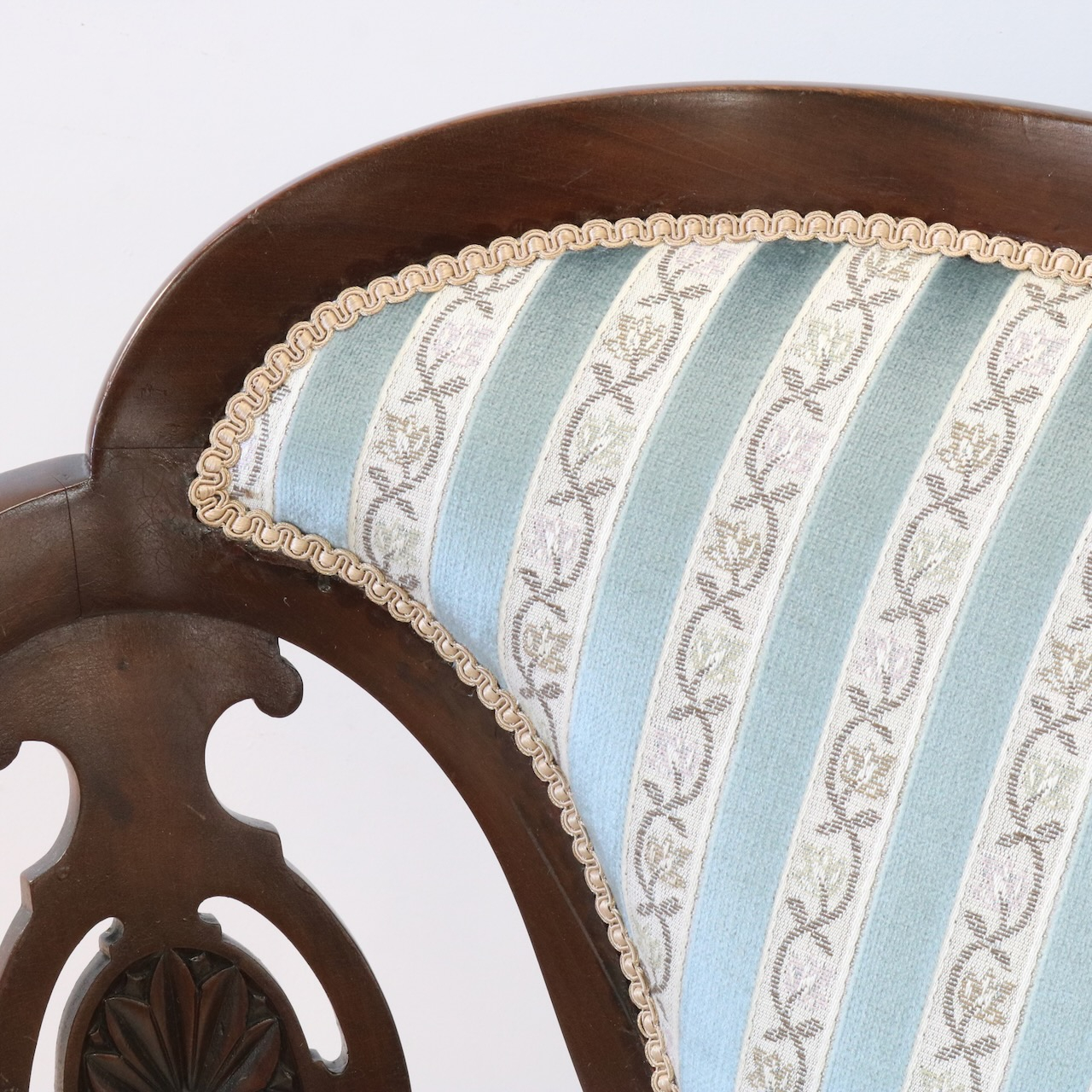 背もたれの透かしやアームにかけての滑らかなラインが優美な一品。
