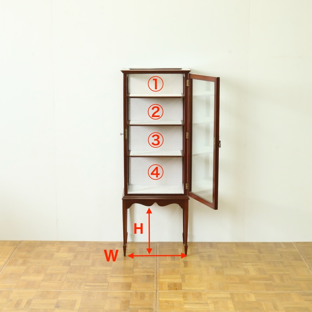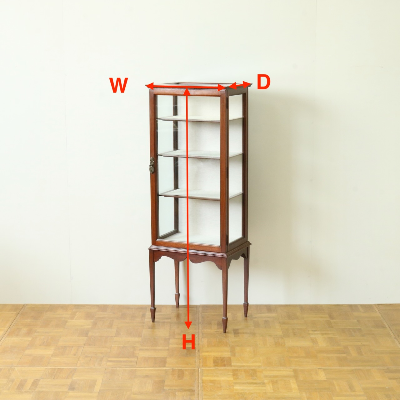 配送料の目安 ▶︎1920年代、マホガニー材のグラスキャビネット。直線的で繊細なフォルムが可愛らしい印象で、小さなお人形や食器などをたくさん並べて飾りたくなるキャビネットです。横幅41cmと細身なので、ちょっとしたスペースを活用するのにもおすすめです。