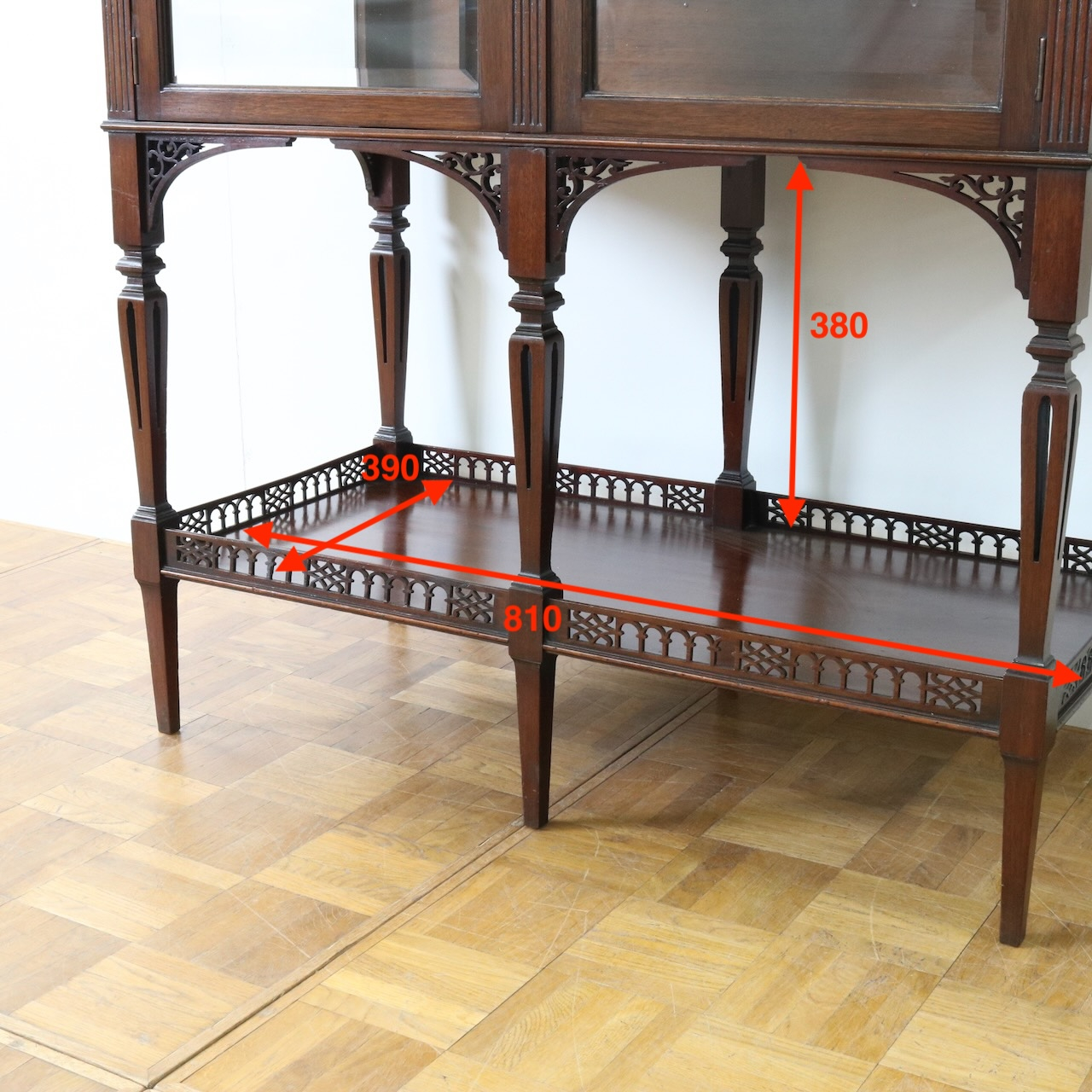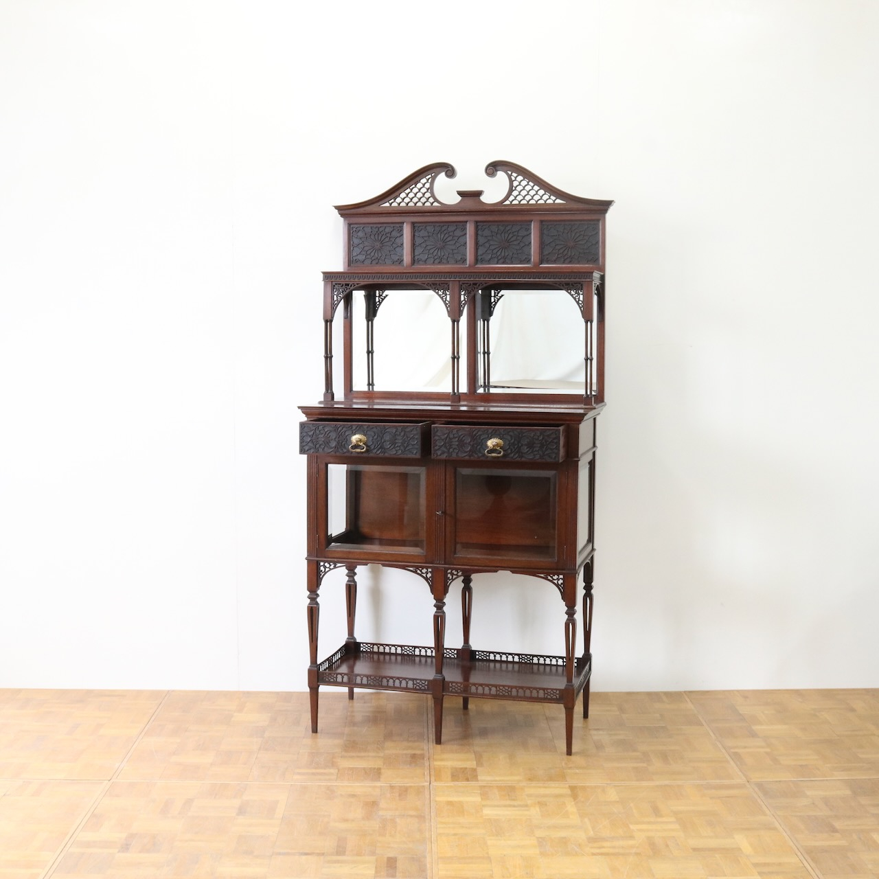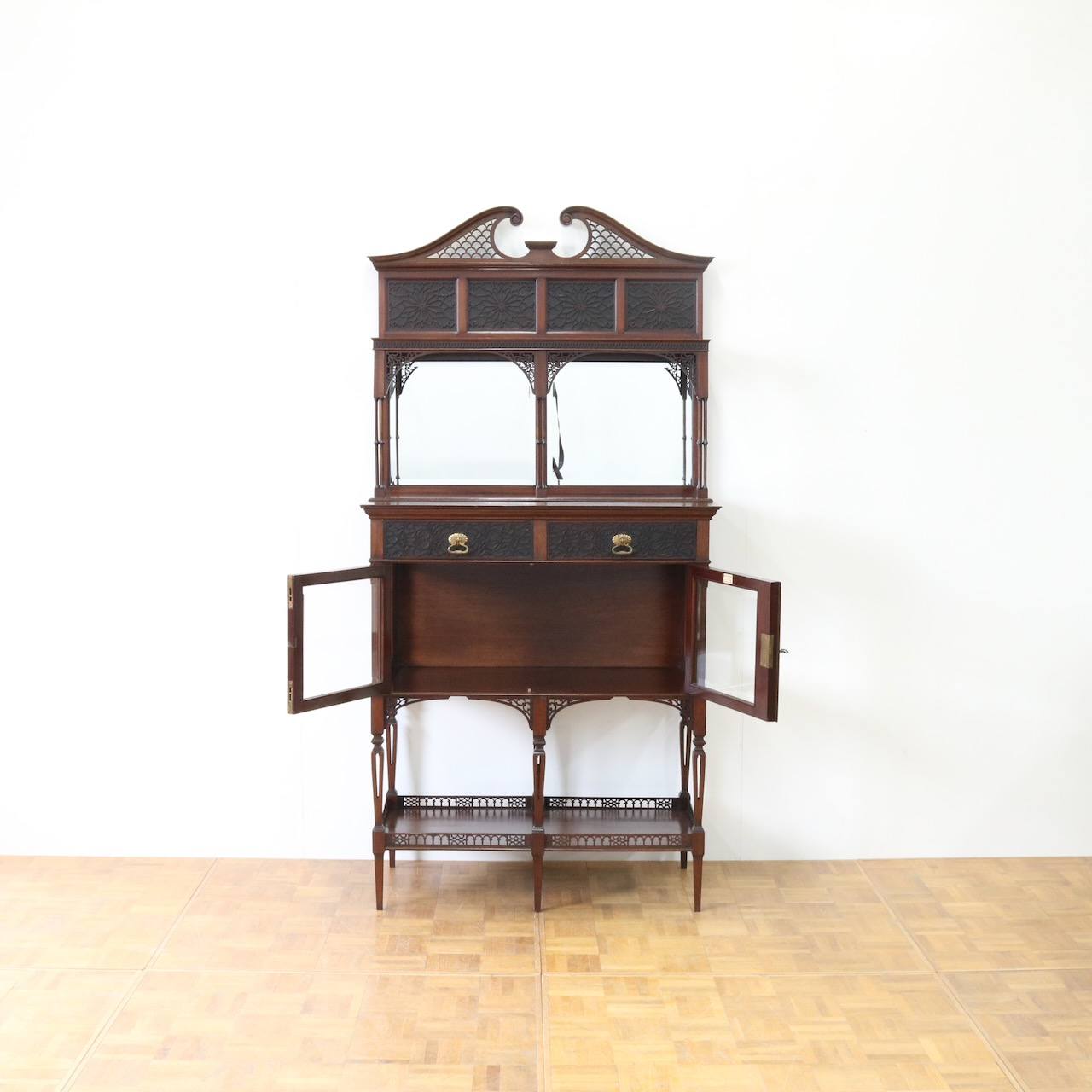 キャビネット全体を彩るフレットワークや華奢な足先など、