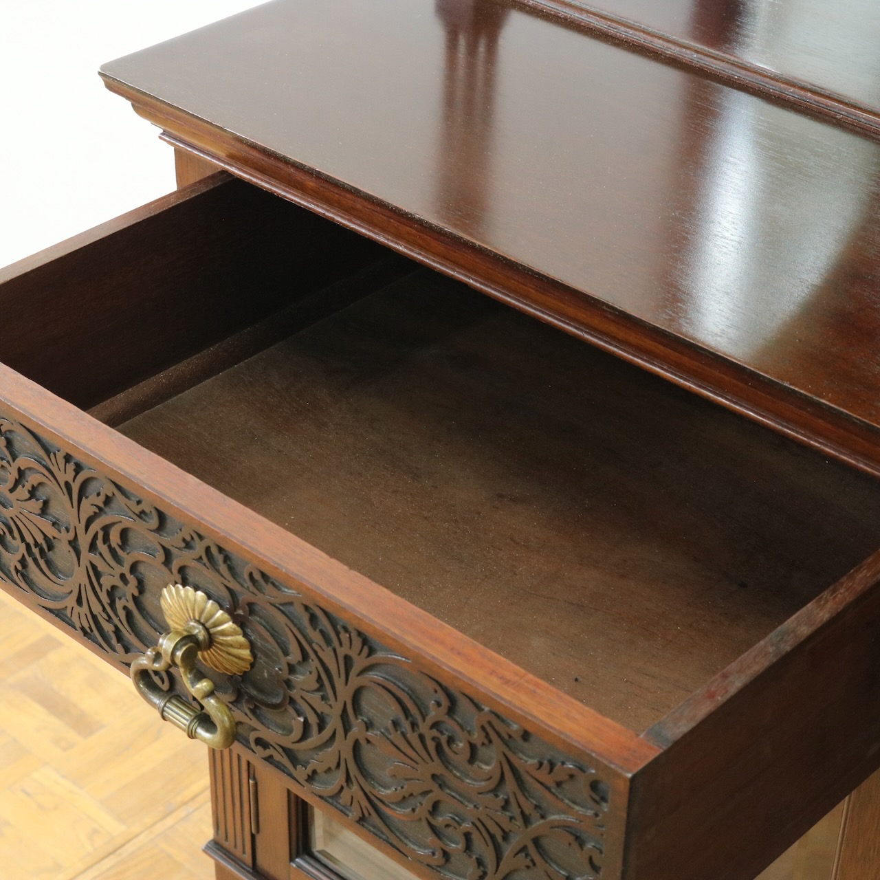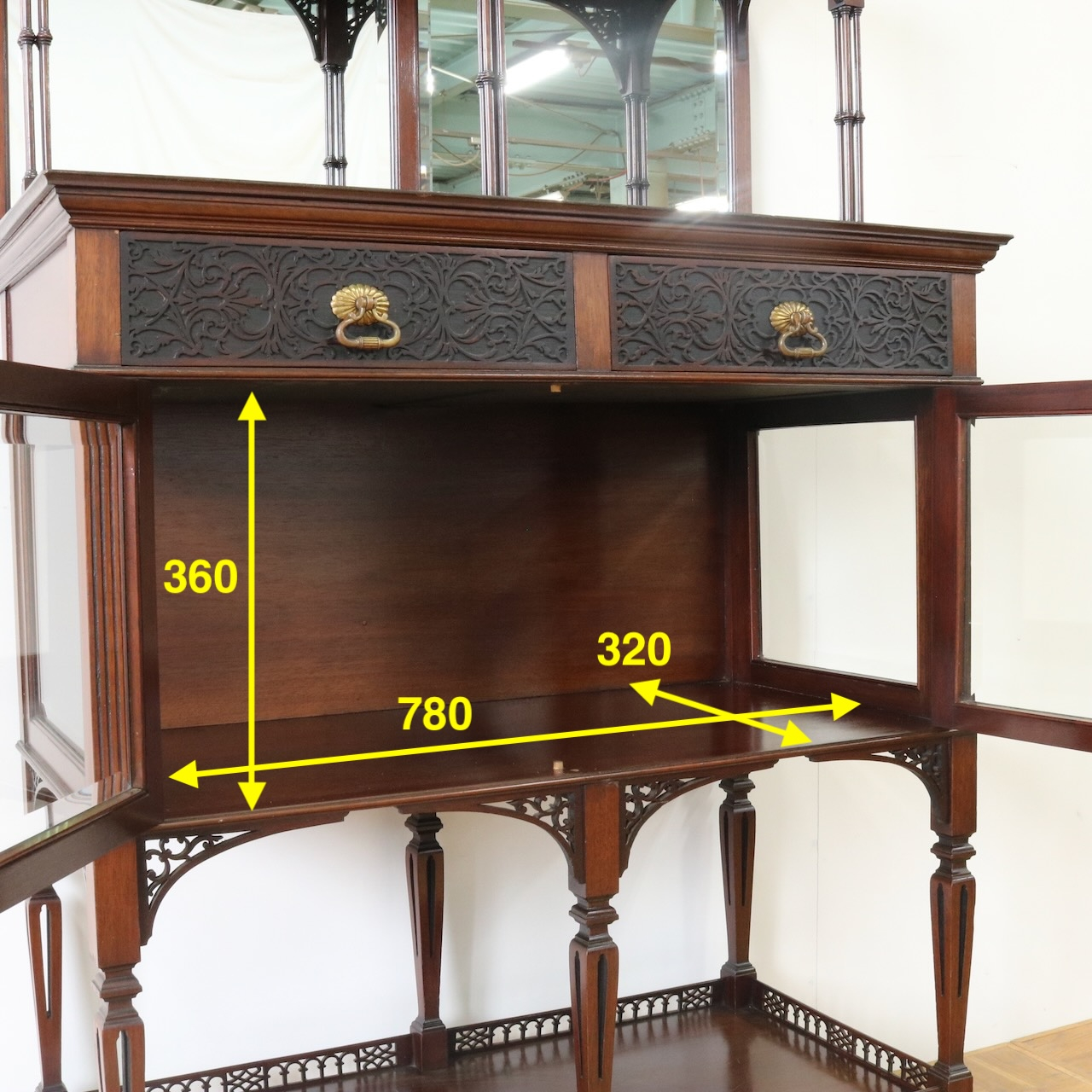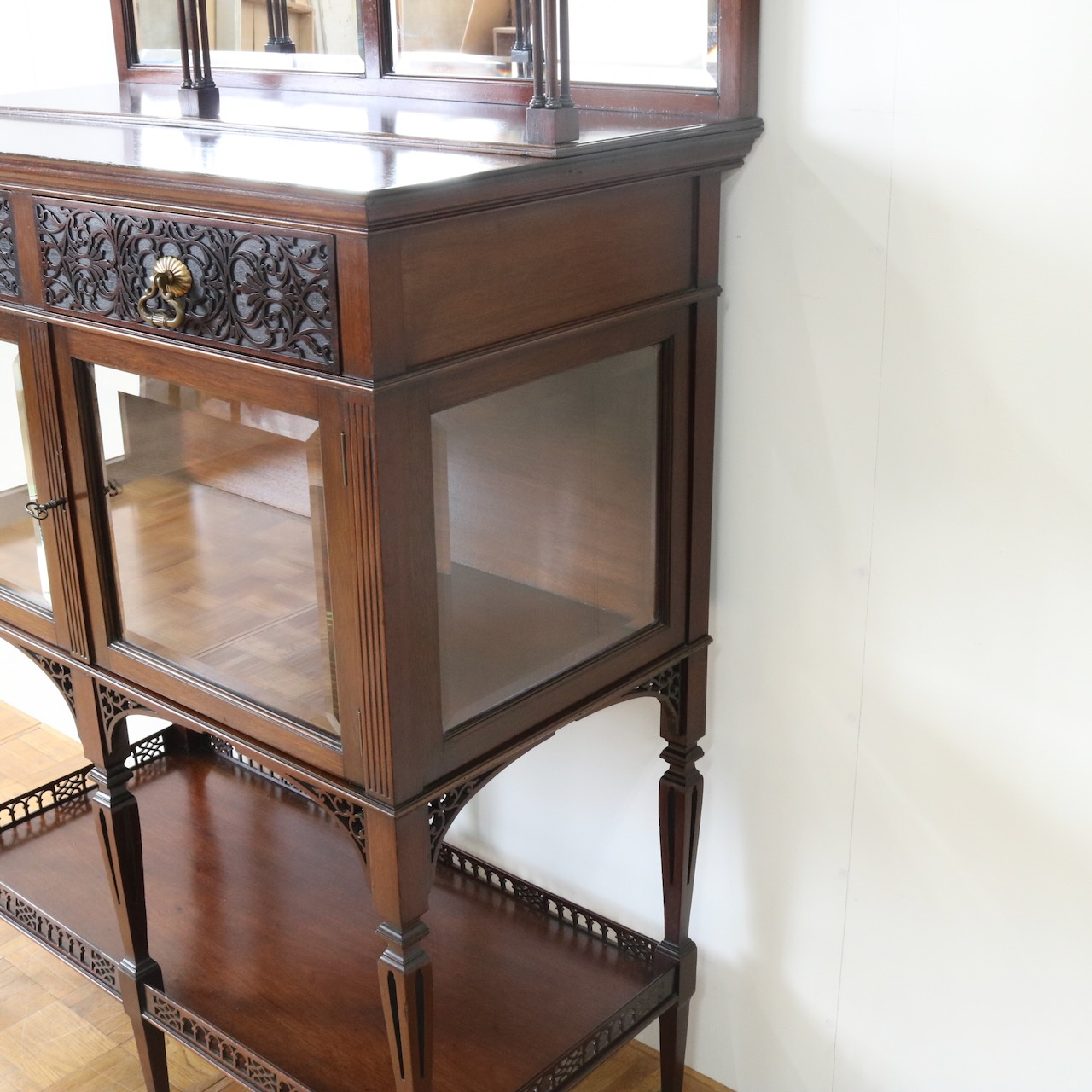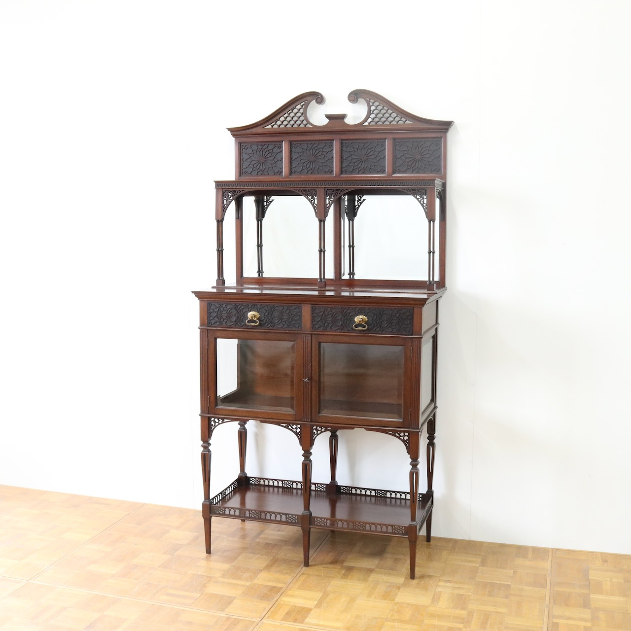 キャビネット全体を彩るフレットワークや華奢な足先など、
