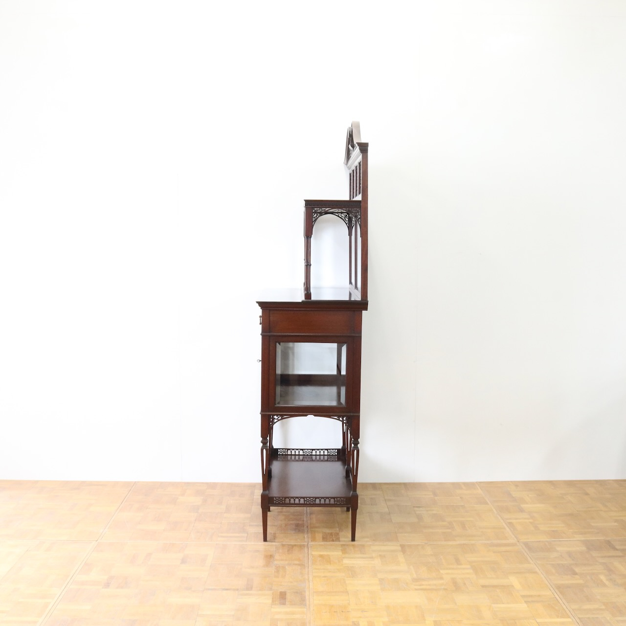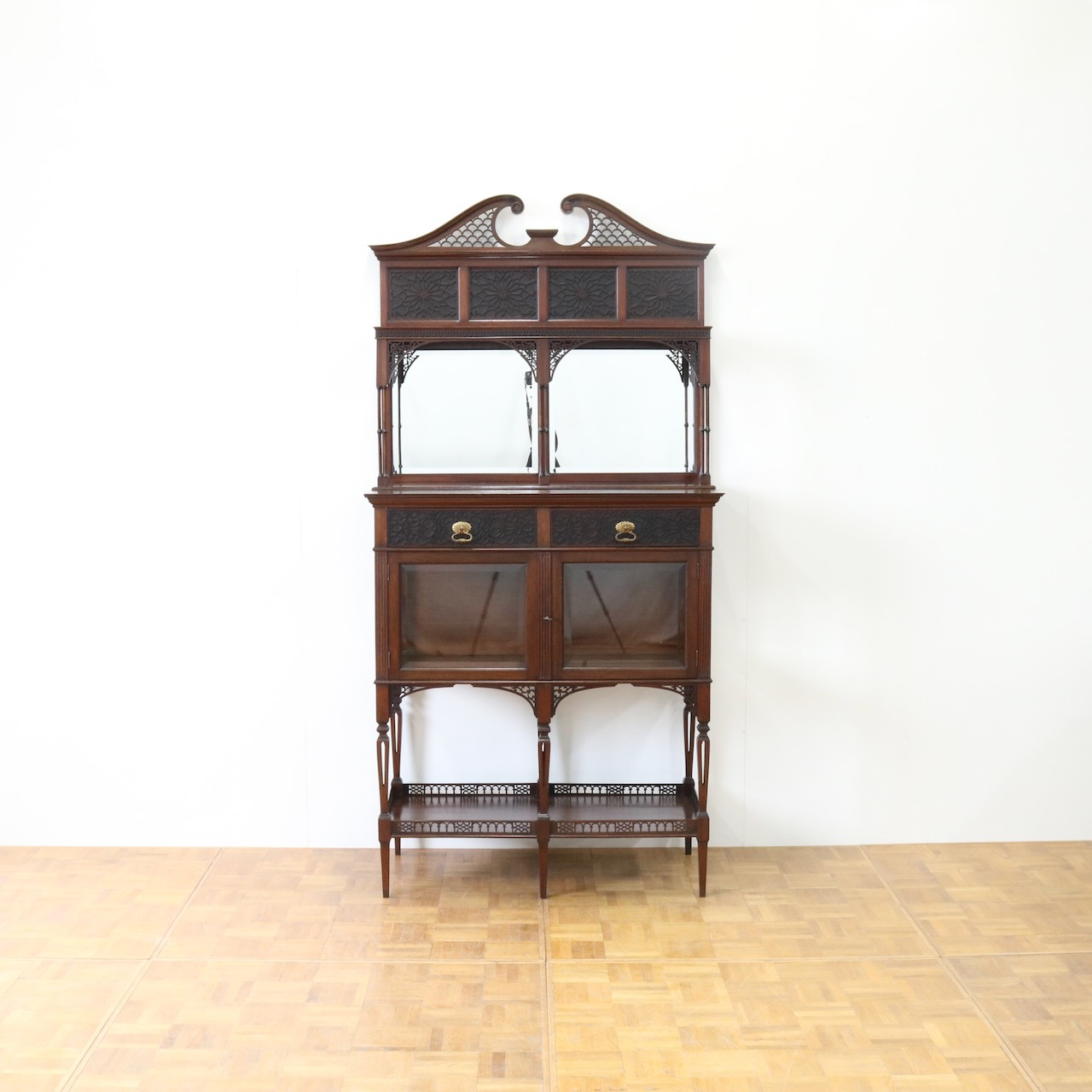 配送料の目安 ▶︎1920年代、マホガニーのグラスキャビネット。幅が約90cmと使い易いサイズ感の上質なキャビネットです。